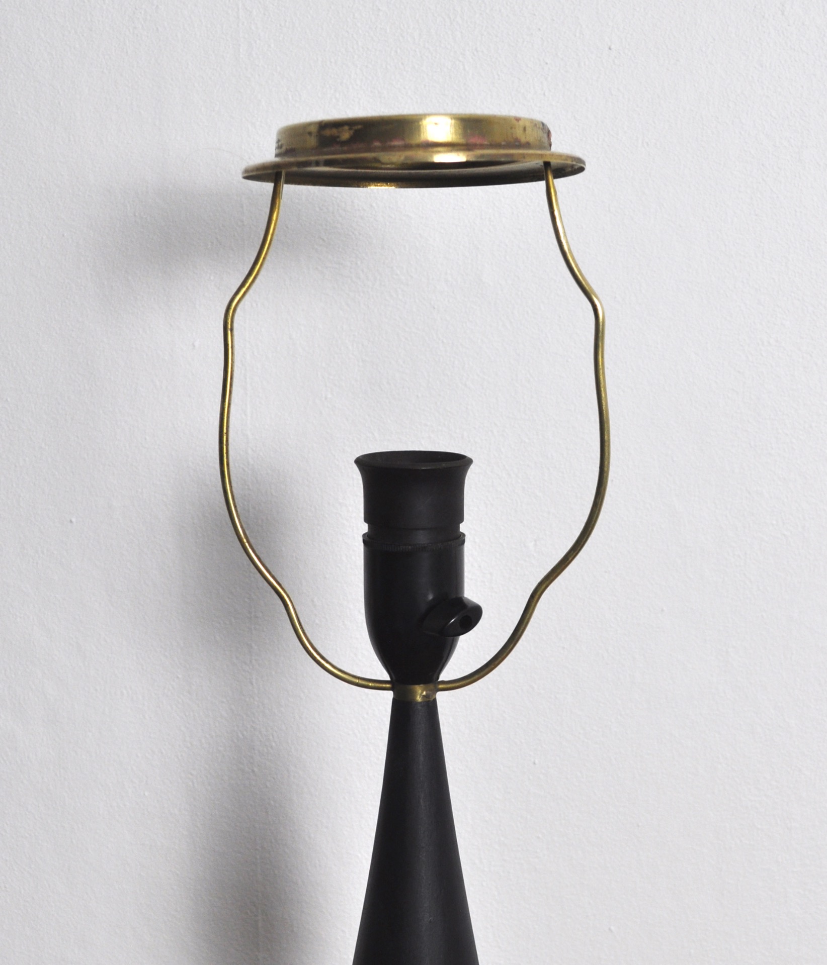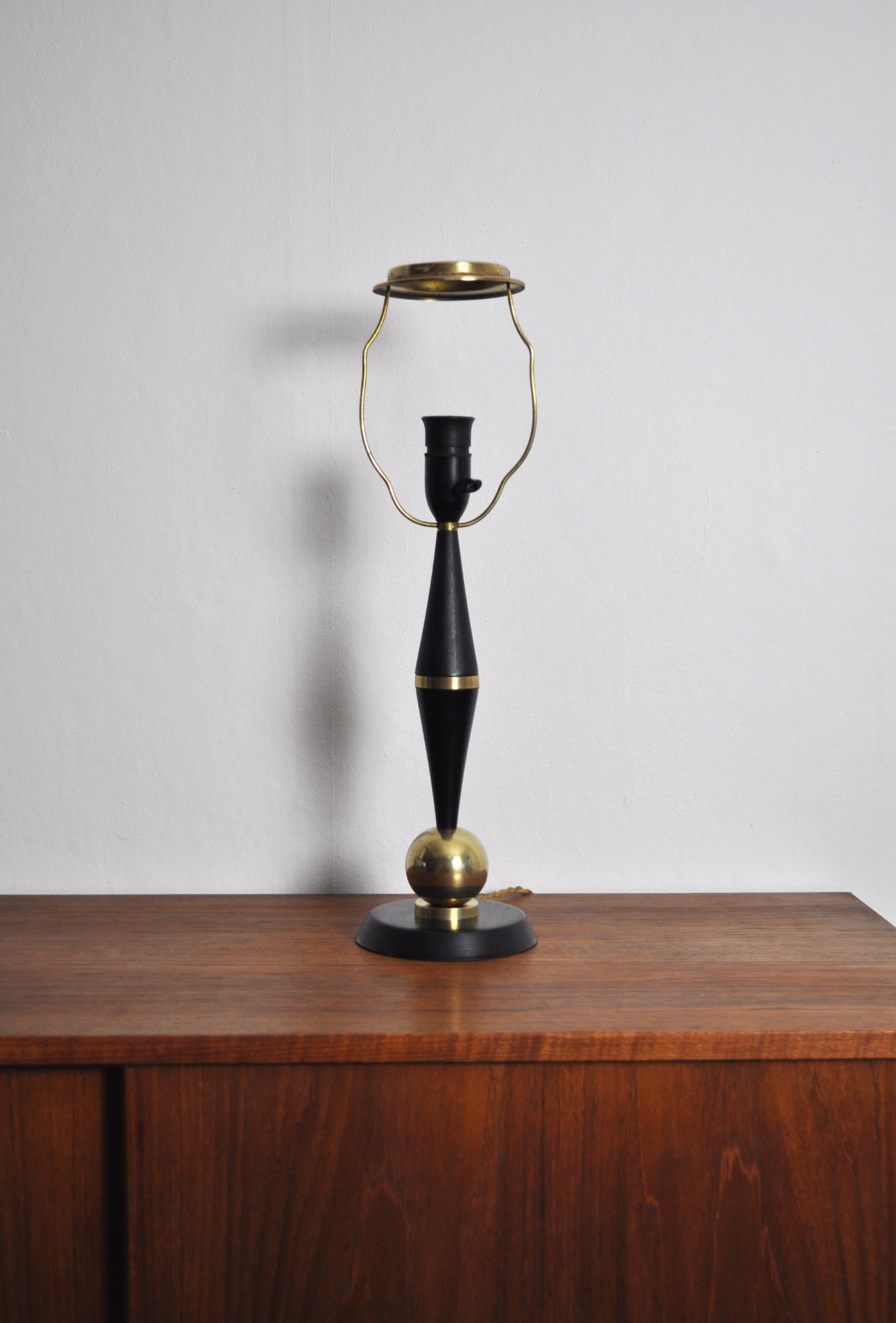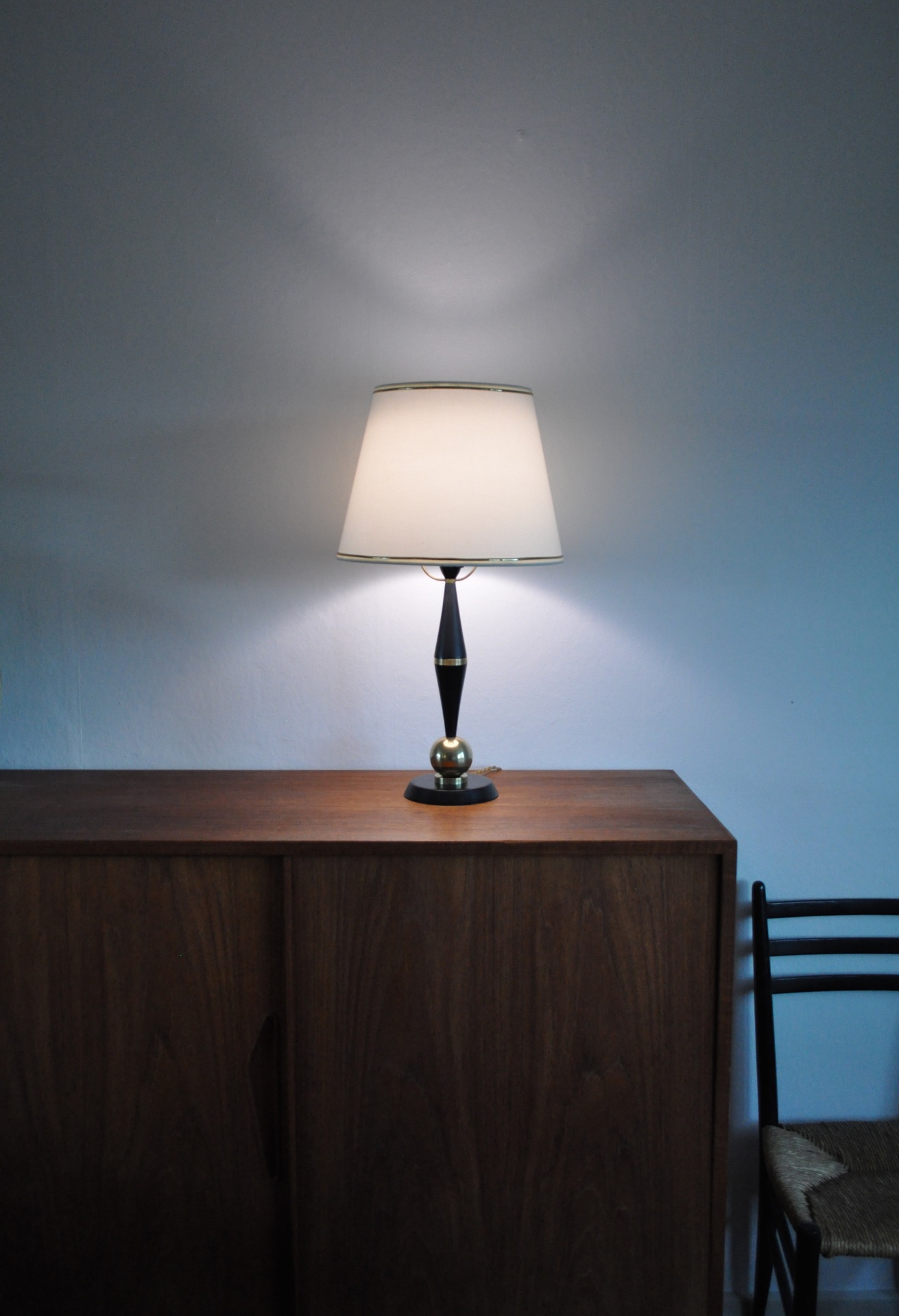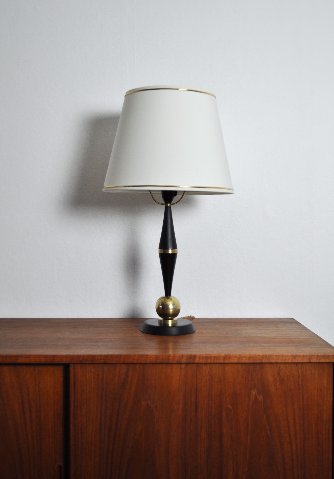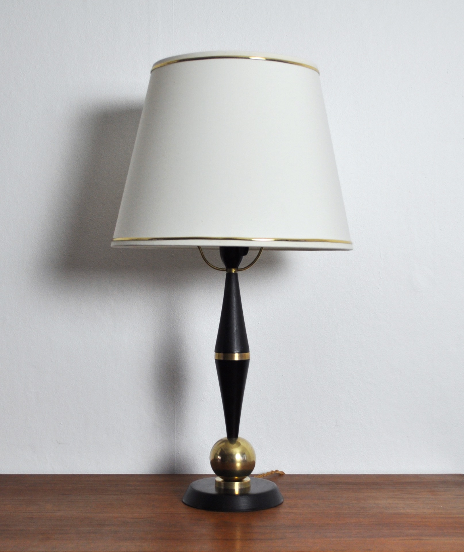 ART DECO BRASS AND BLACK PAINTED WOOD TABLE LAMP, 1930s
