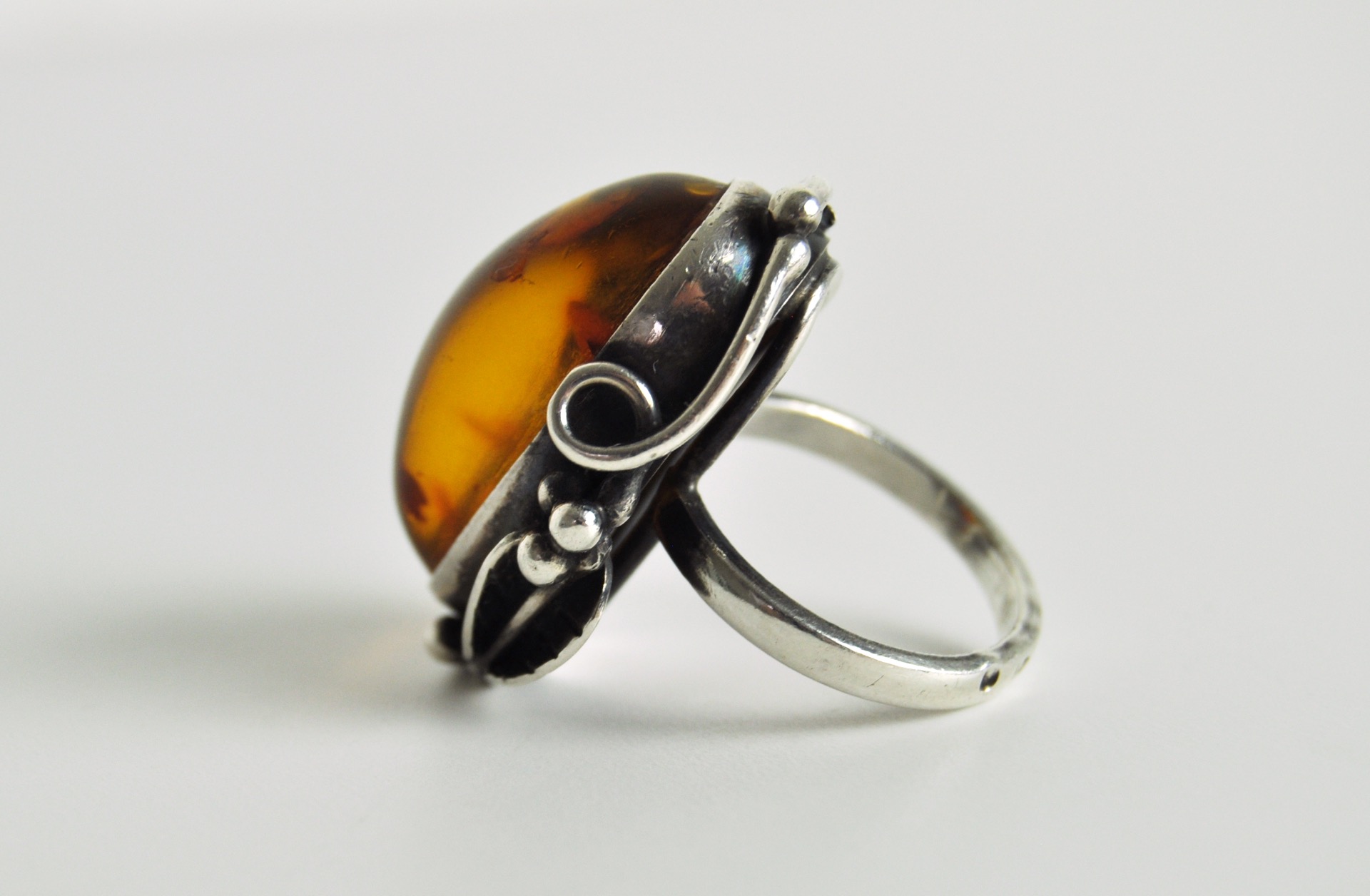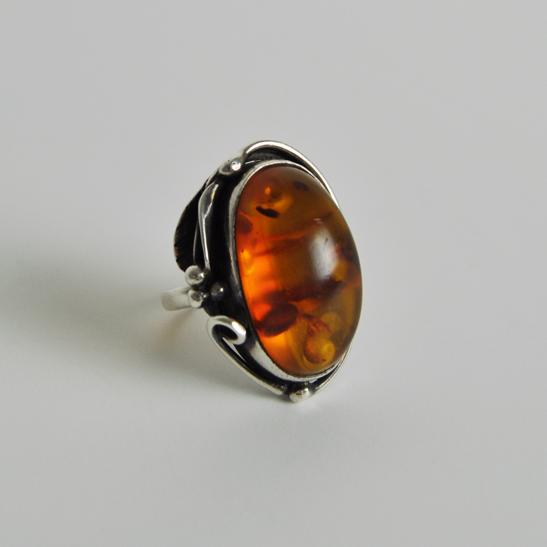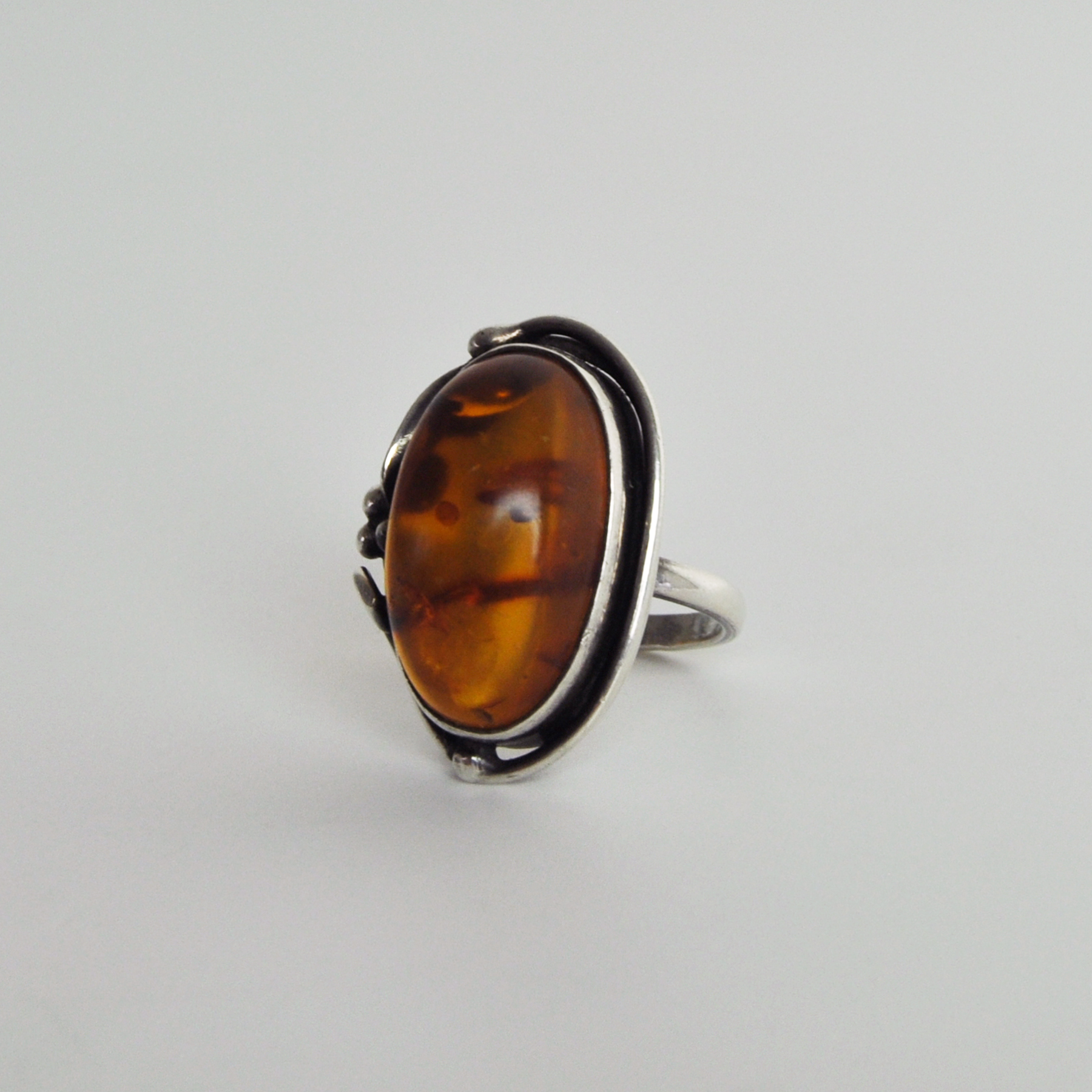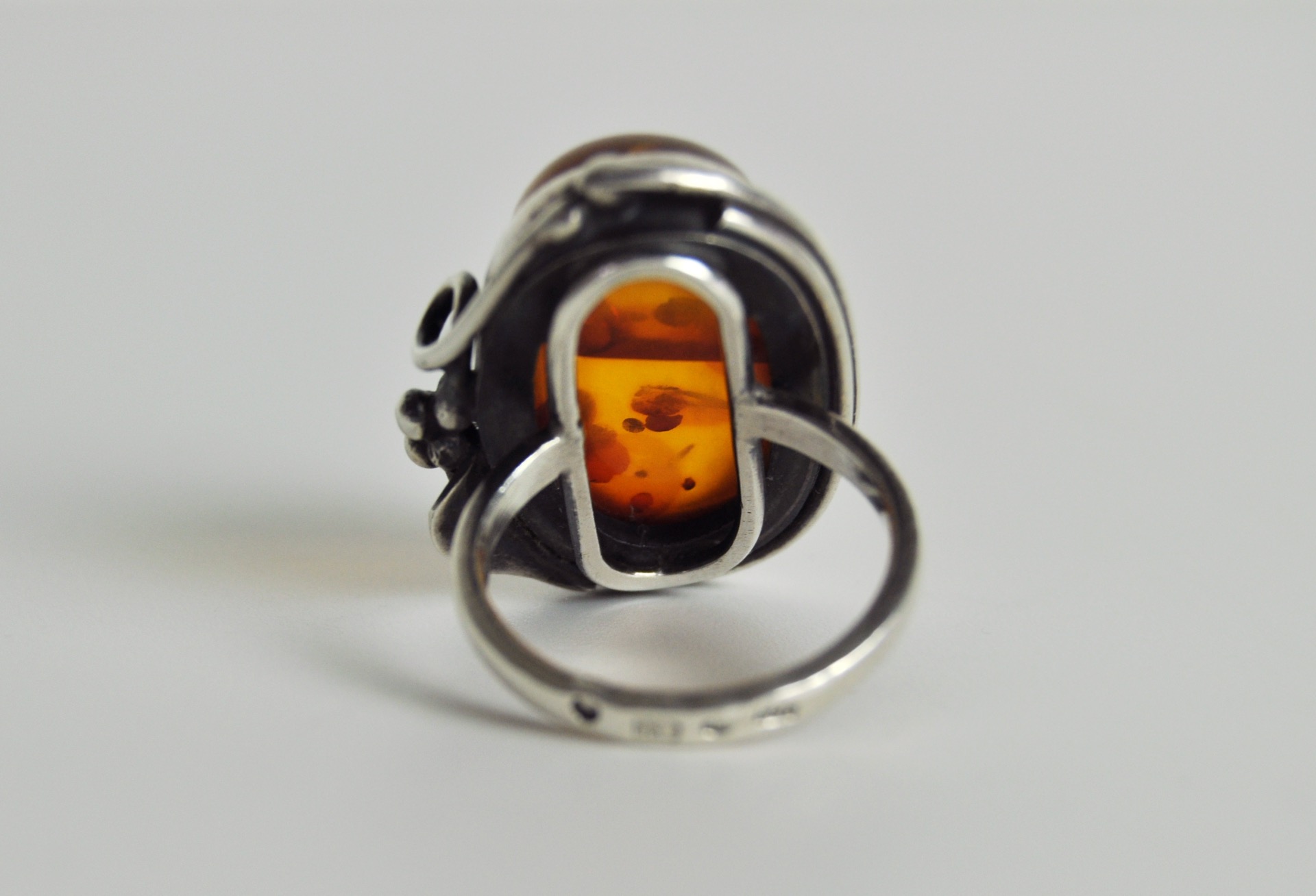 ART NOUVEAU AMBER STERLING SILVER STATEMENT RING