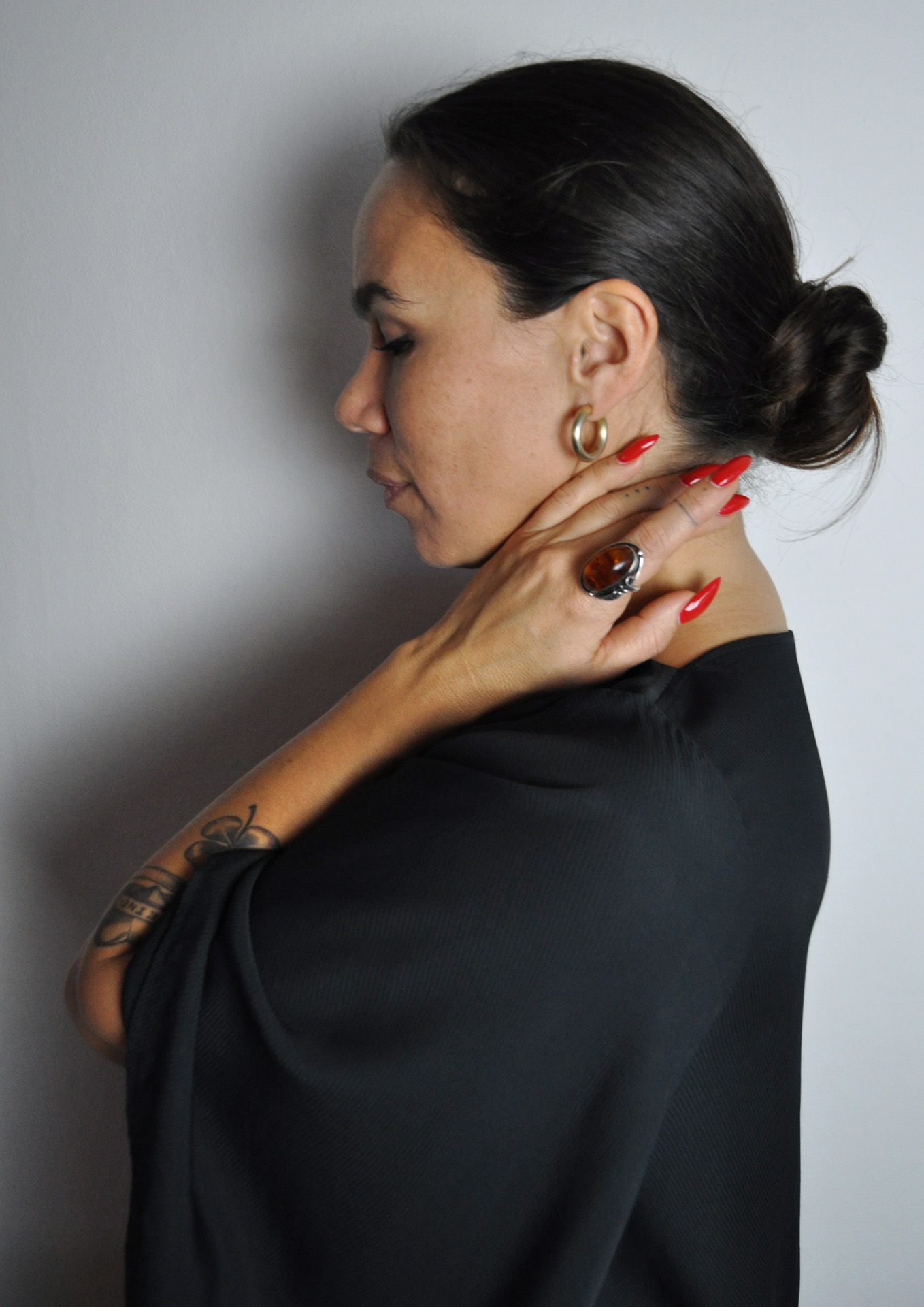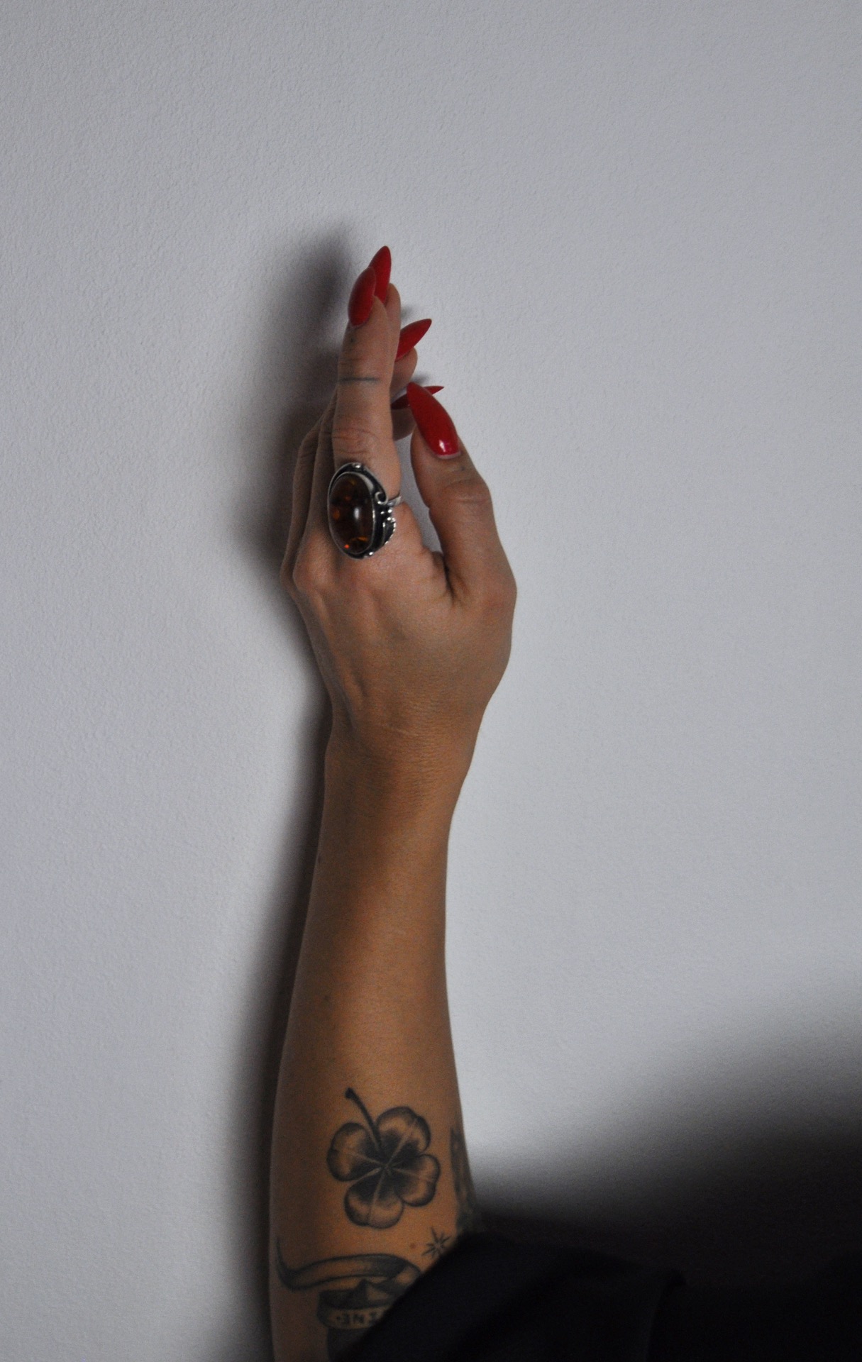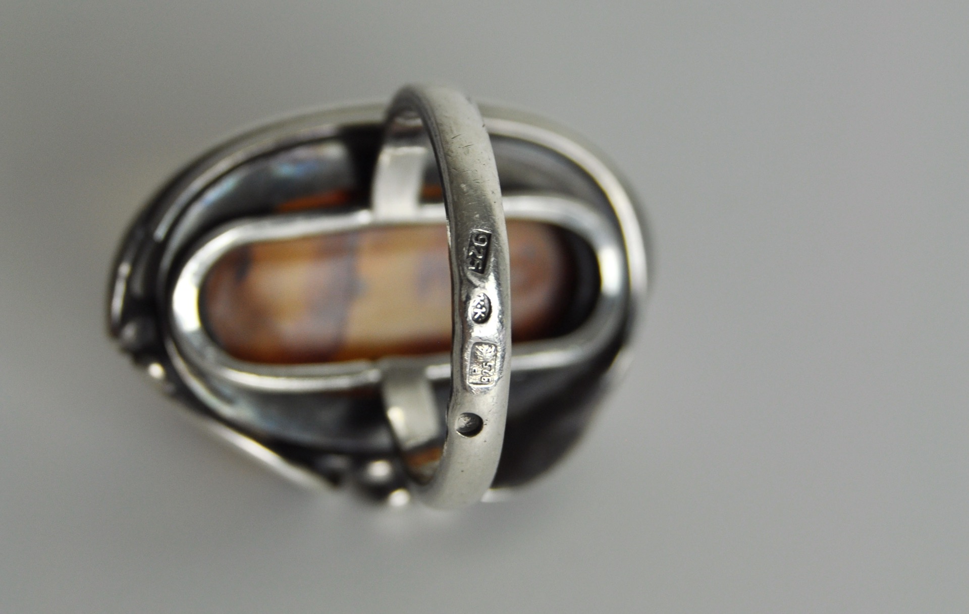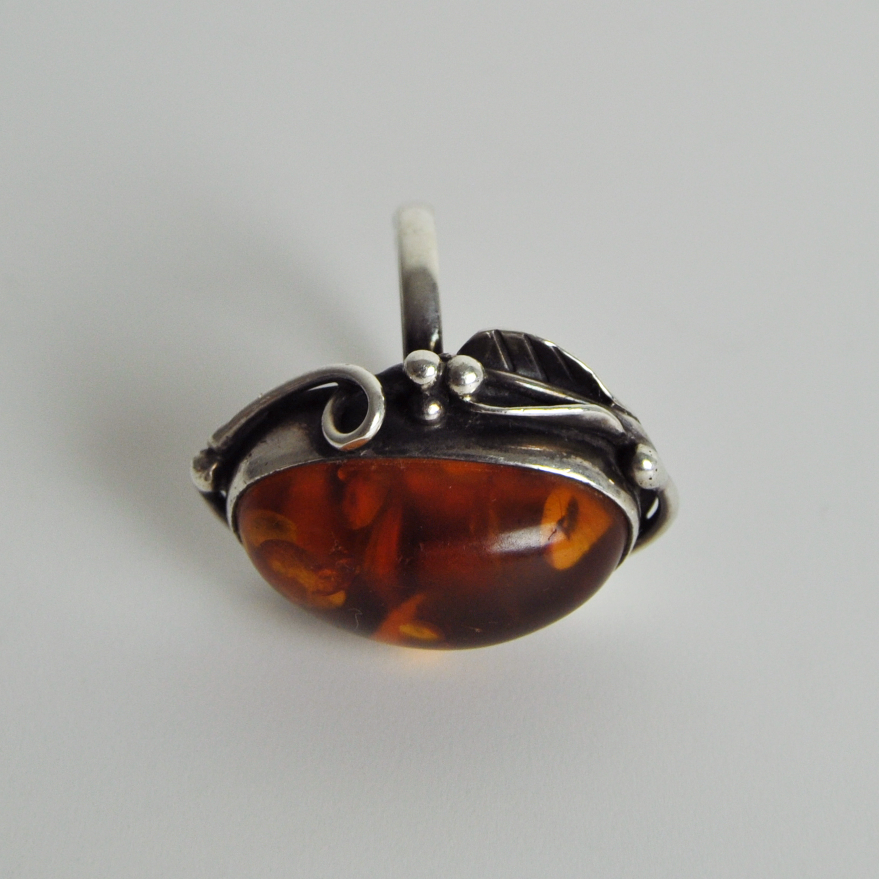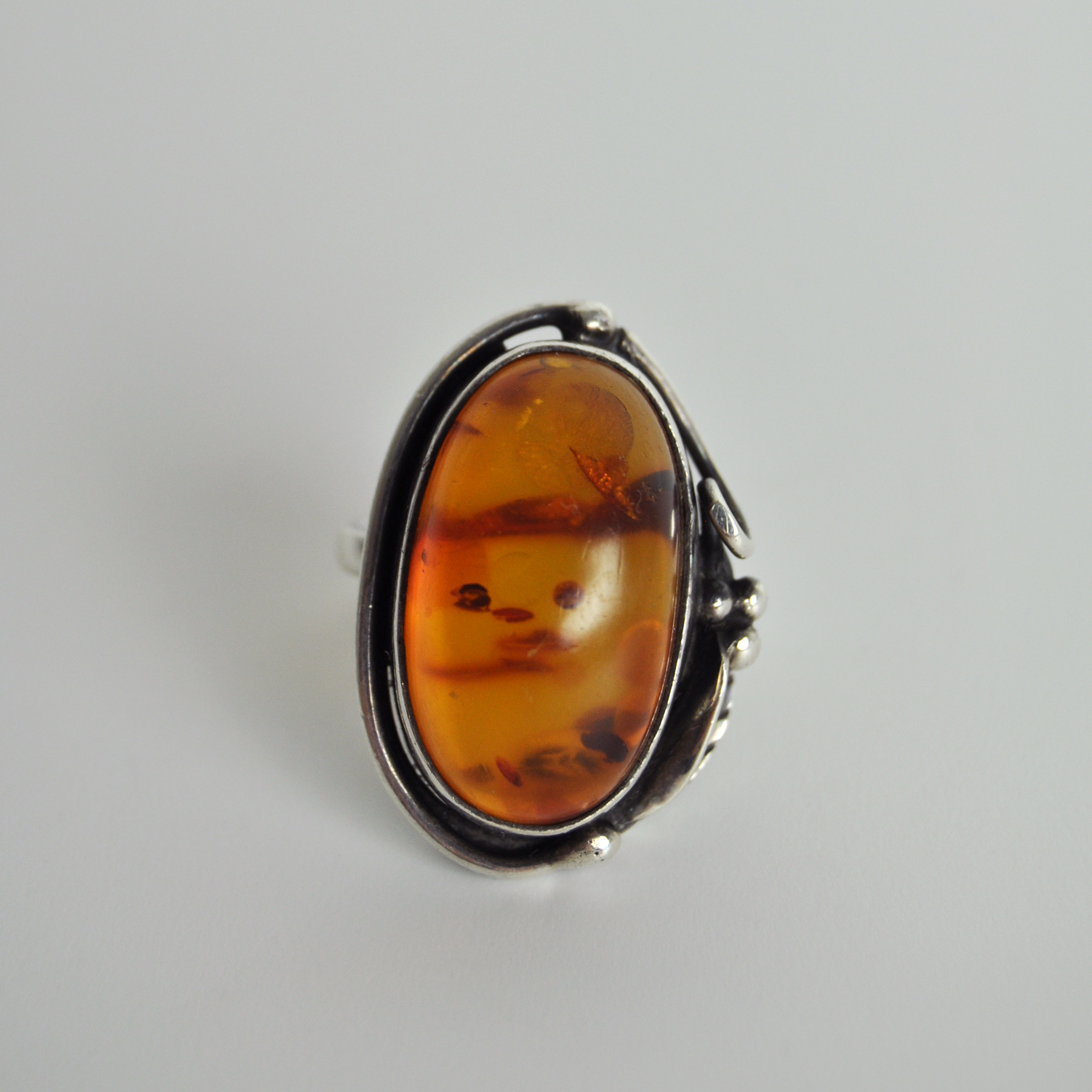 ART NOUVEAU AMBER STERLING SILVER STATEMENT RING