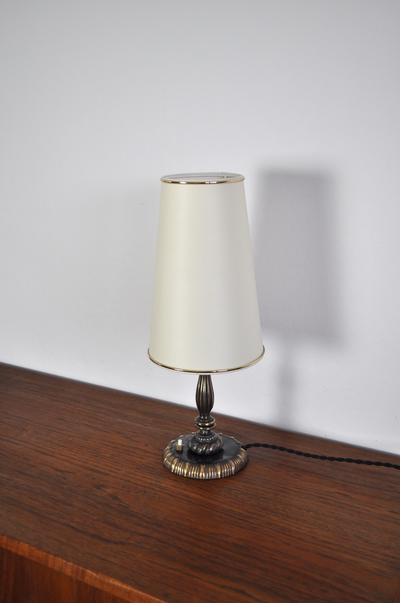 Light source: E27 Edison screw fitting. Height with shade 43 cm, without 25 cm. Base diameter 13 cm. Shade 11.5 x 26 x 17.5 cm.