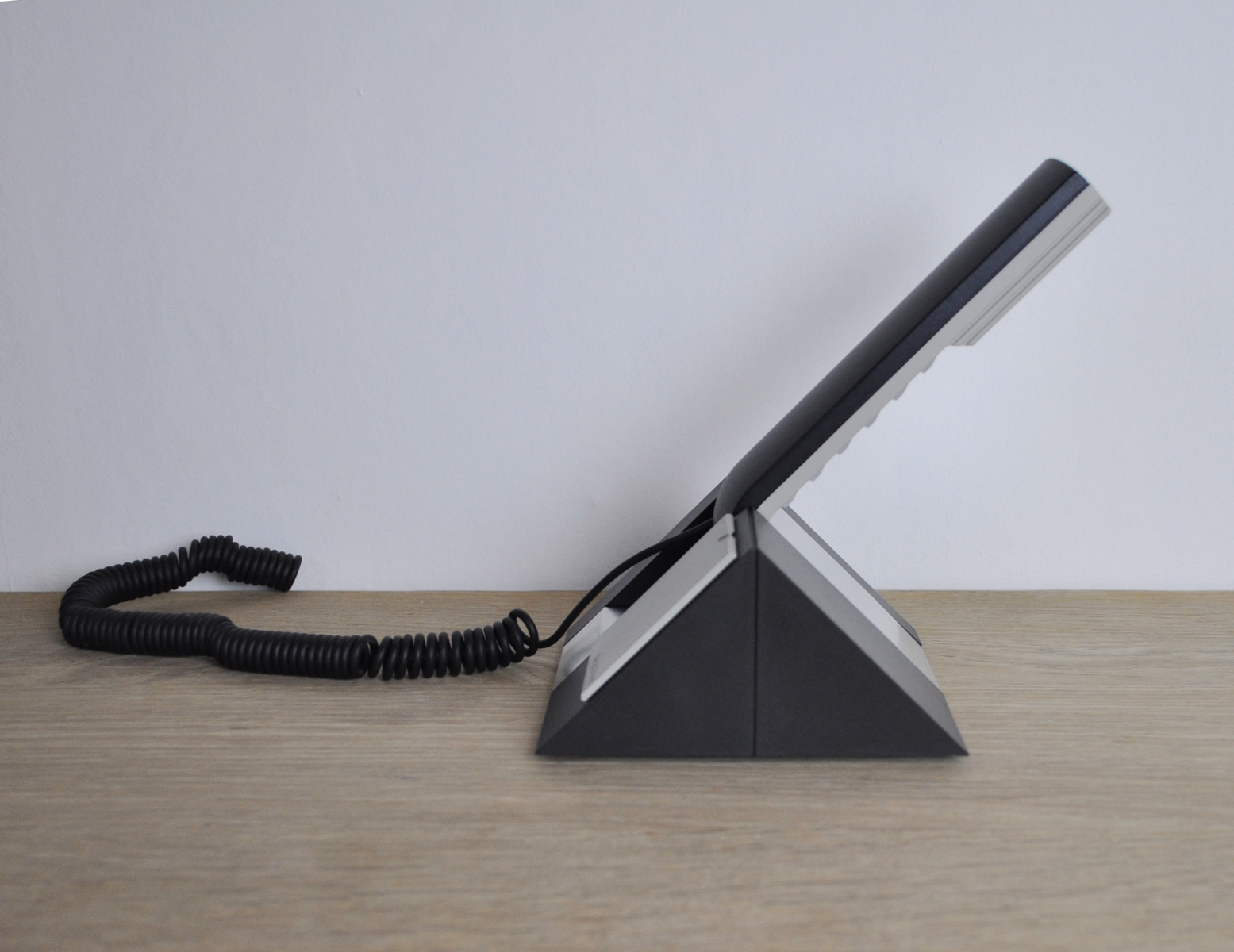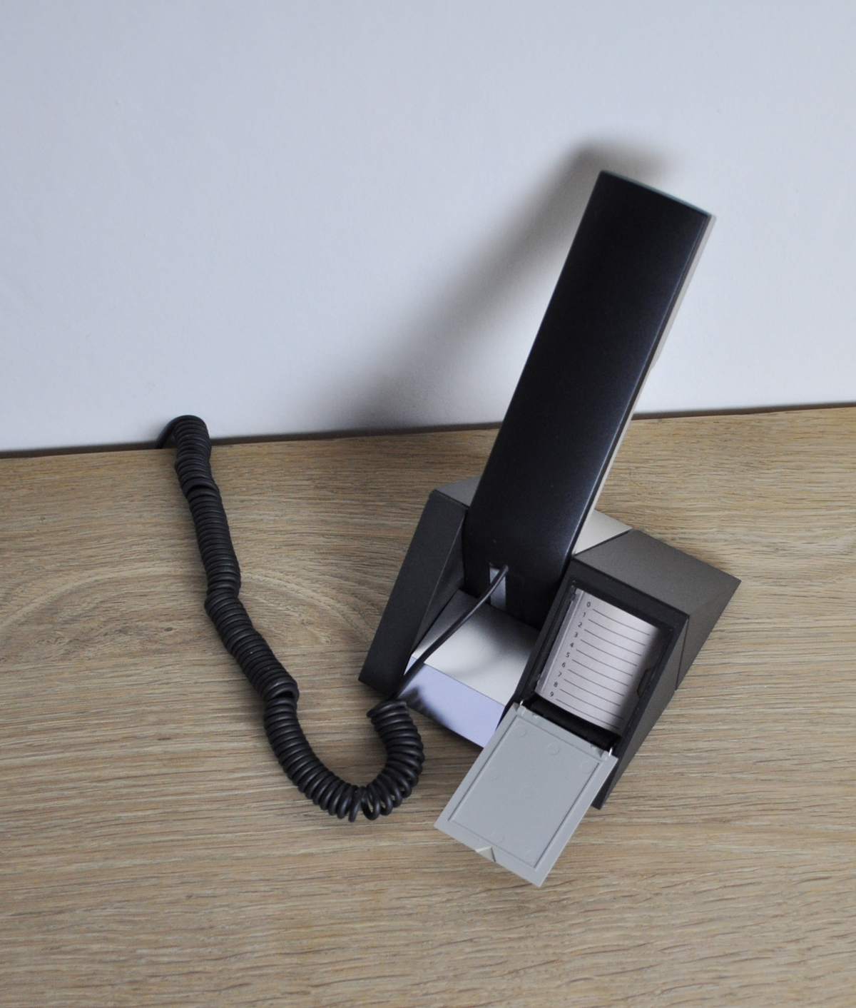 BeoCom 1401 with table holder is an easy-to-use telephone with simple functionality. Everything is integrated in the handset.