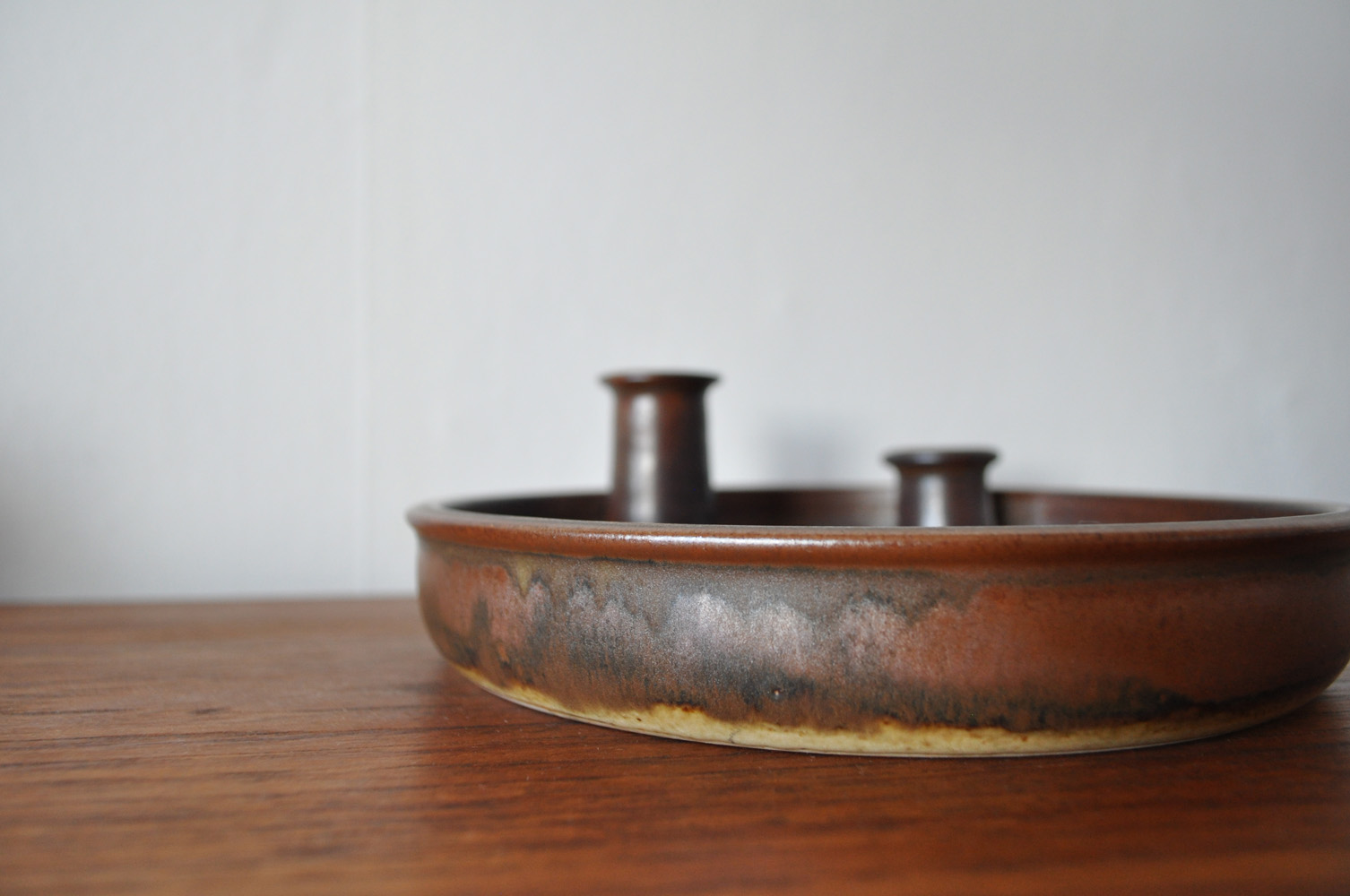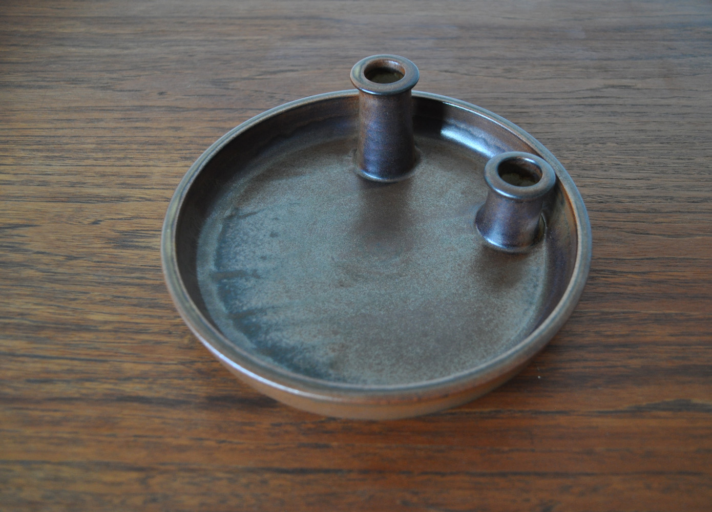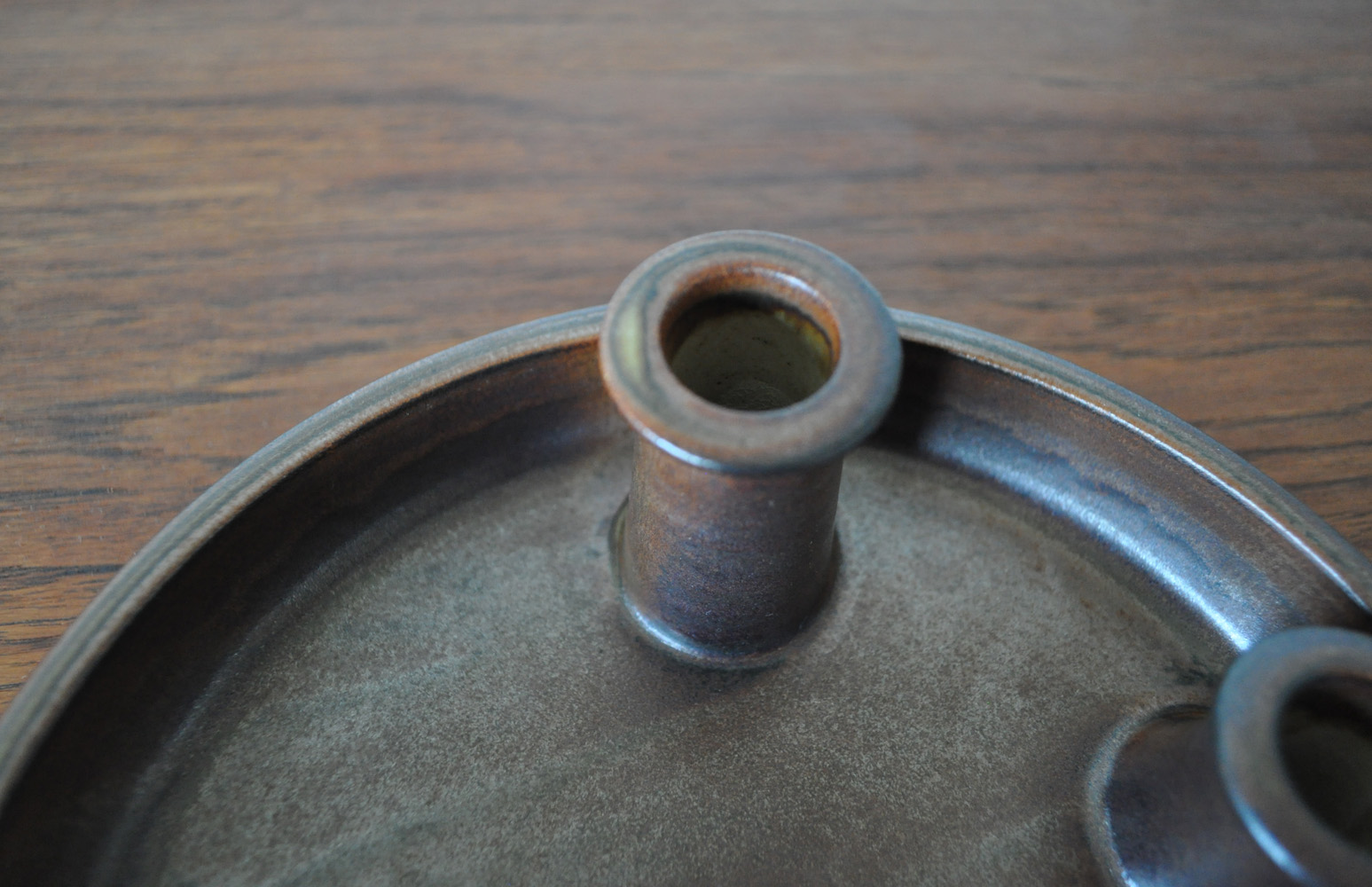 CANDLE HOLDER MADE OF STONEWARE WITH A HAREFUR GLAZE