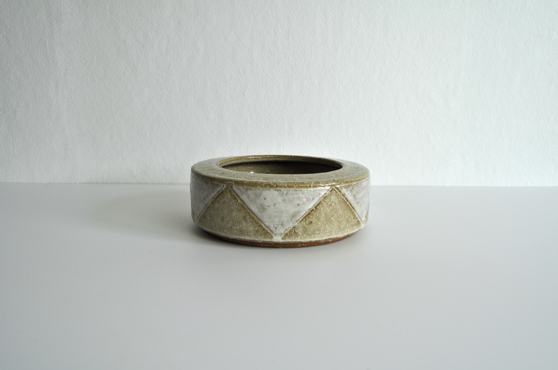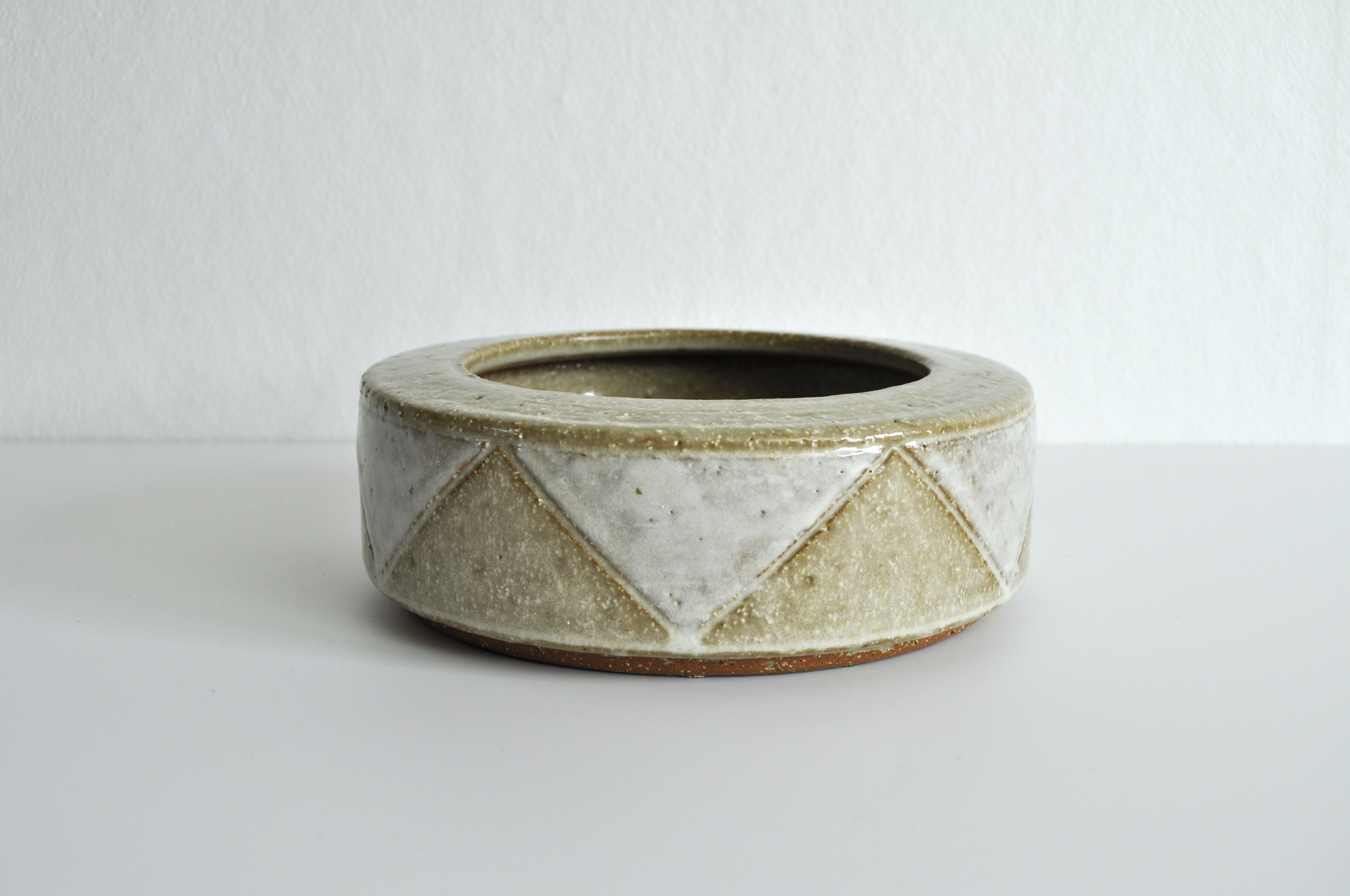 DANISH CERAMIC BOWL IN WHITE AND BEIGE-BROWN EARTH TONES BY PALSHUS, DENMARK 1960S