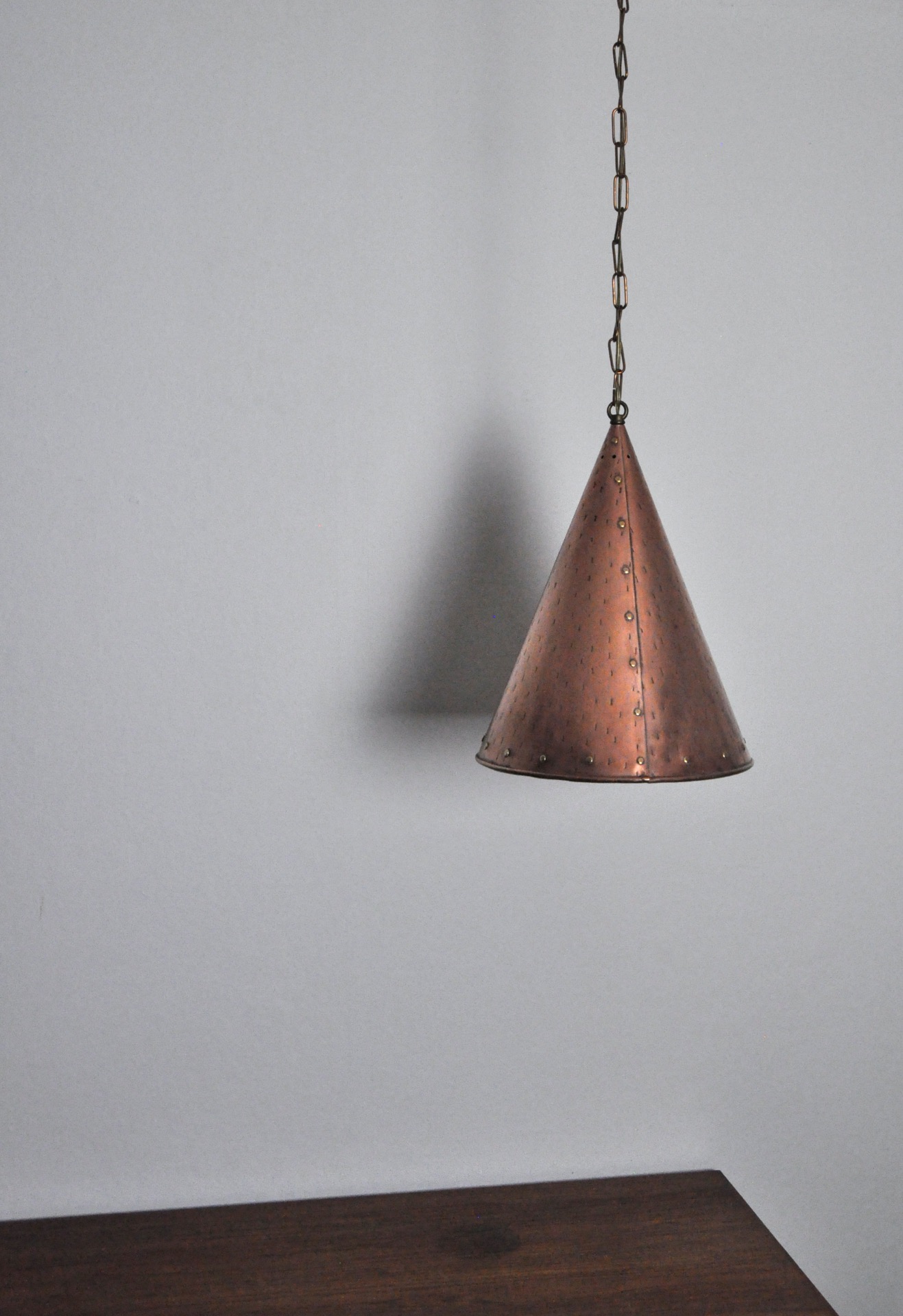 CONE SHAPED HANDMADE COPPER PENDANT FROM DENMARK, 1970s