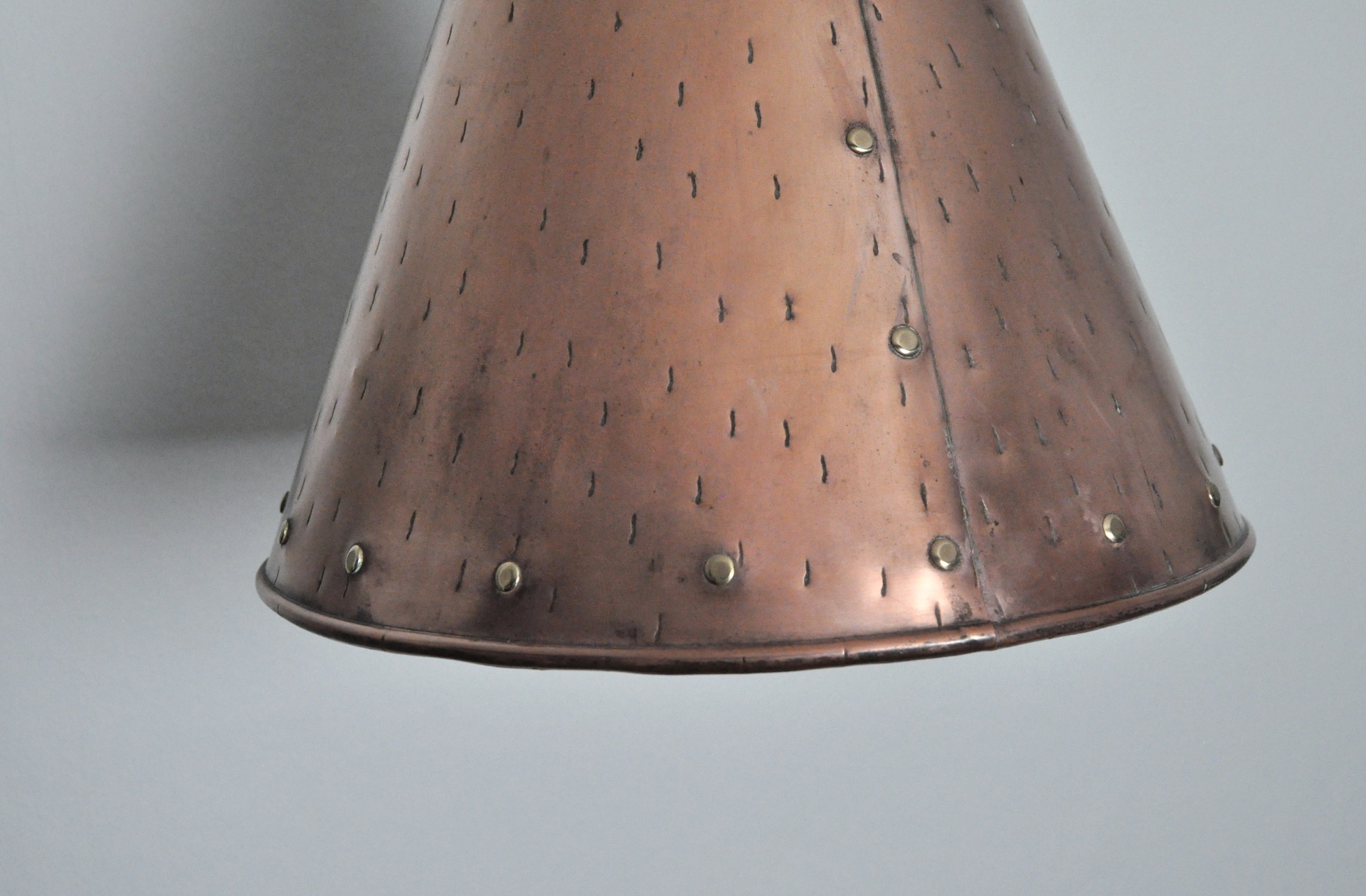 Handcrafted Danish cone shaped copper pendent lamp by Th. Valentiner.