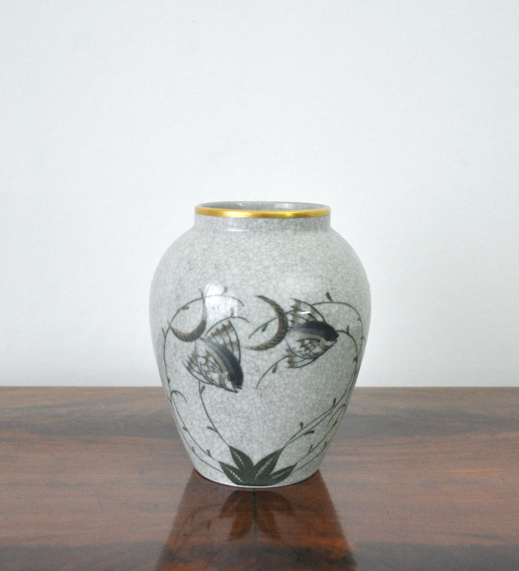 CRAQUELE GLAZE PORCELAIN VASE, LYNGBY PORCELAIN, 1930-40S