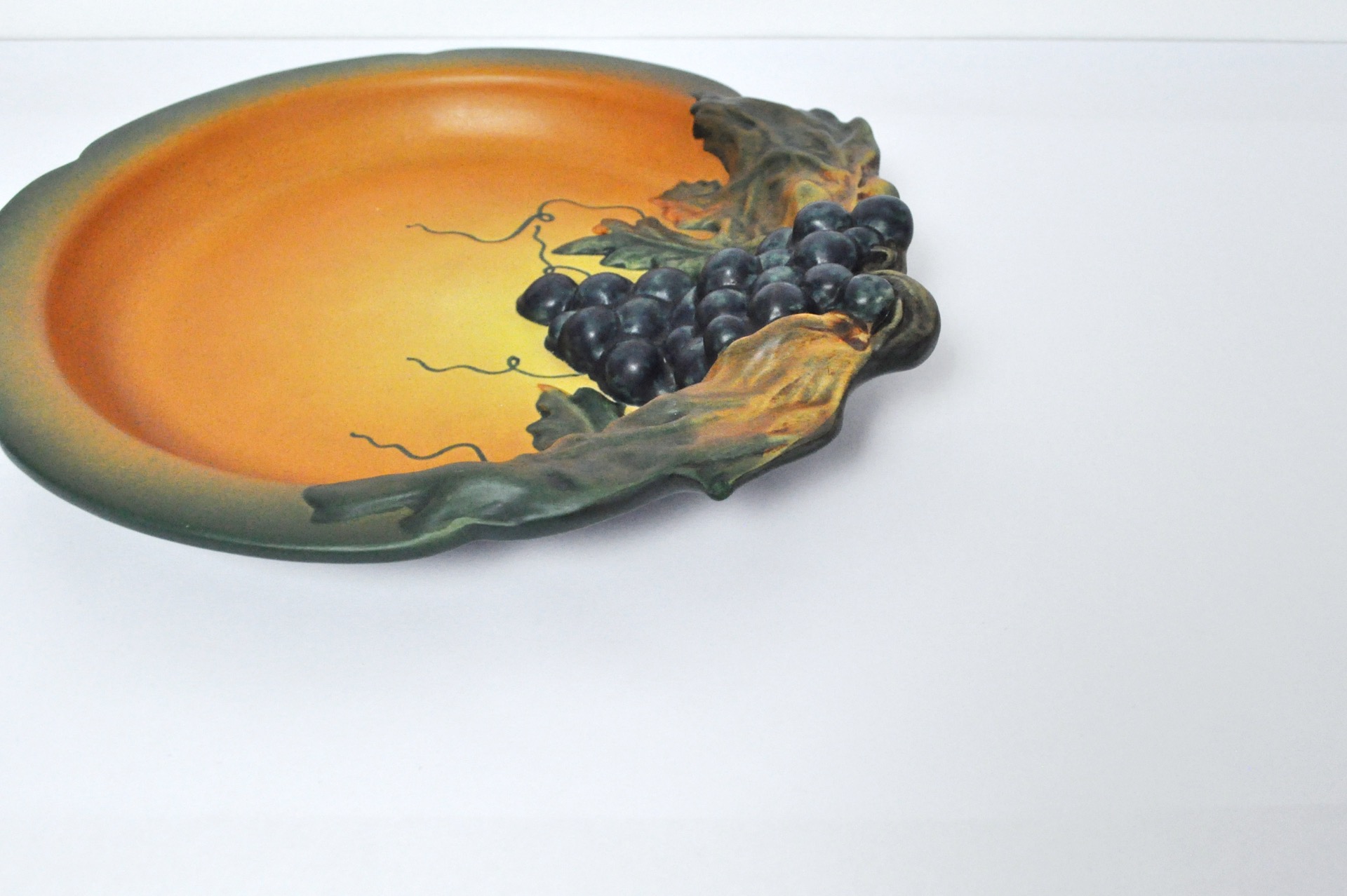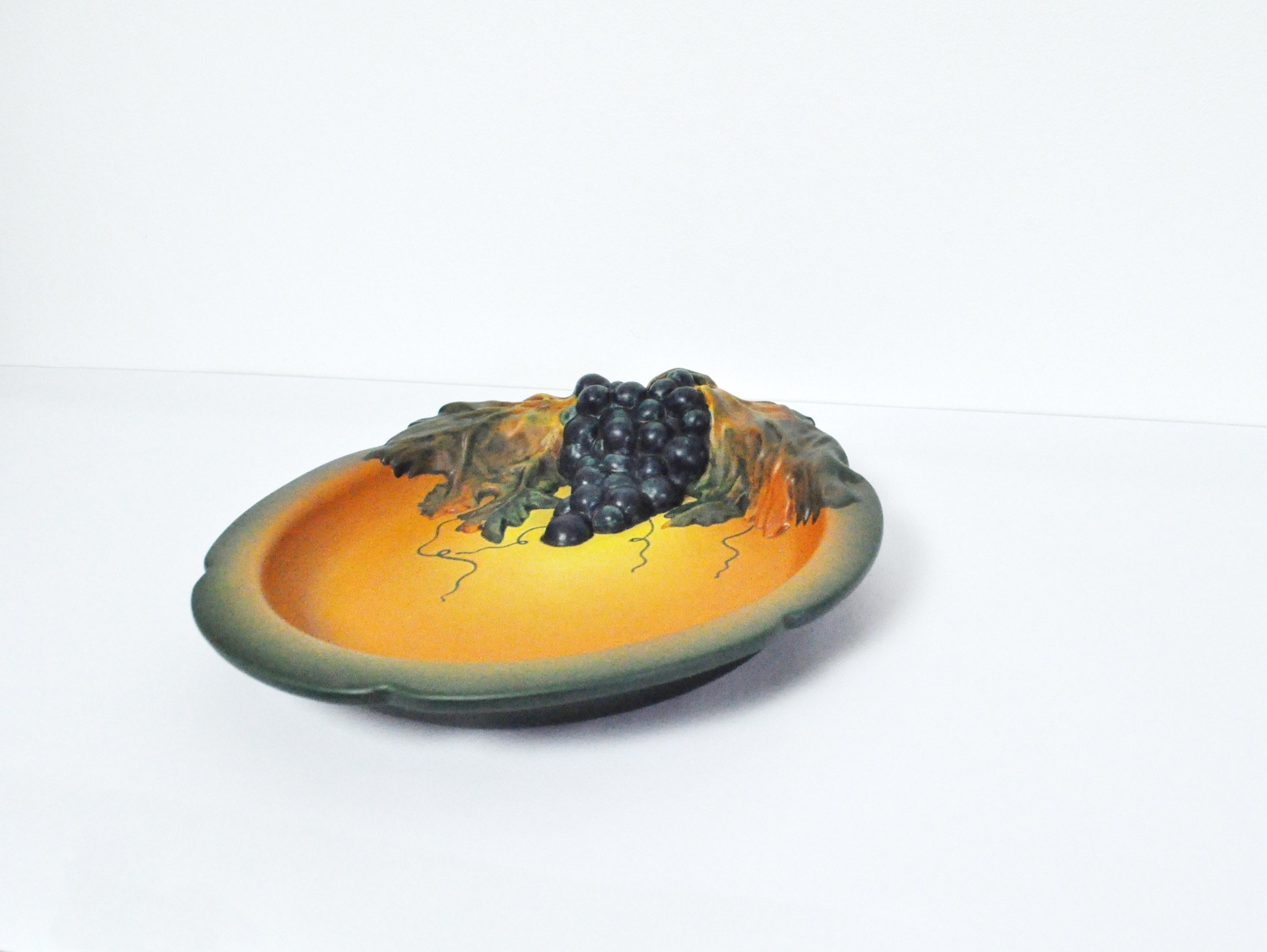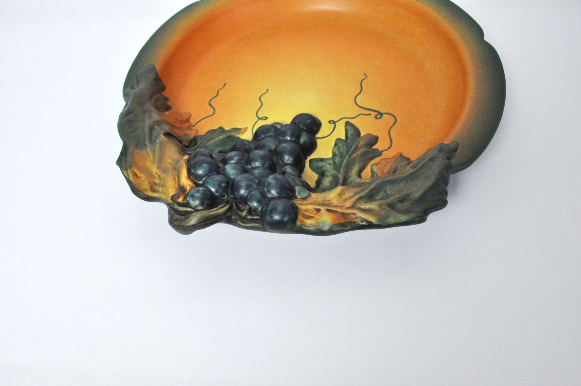 DANISH HAND-CRAFTED ART NOUVEAU GRAPE DECORATED PLATTER BY P. IPSENS ENKE