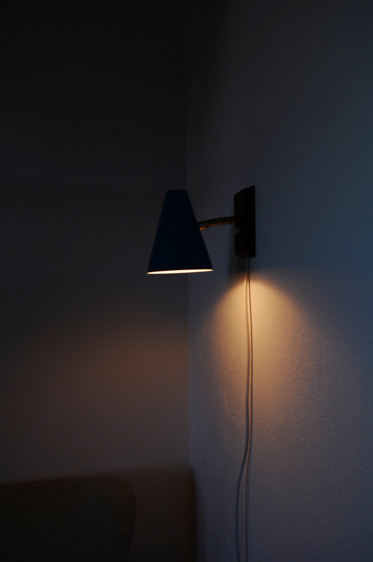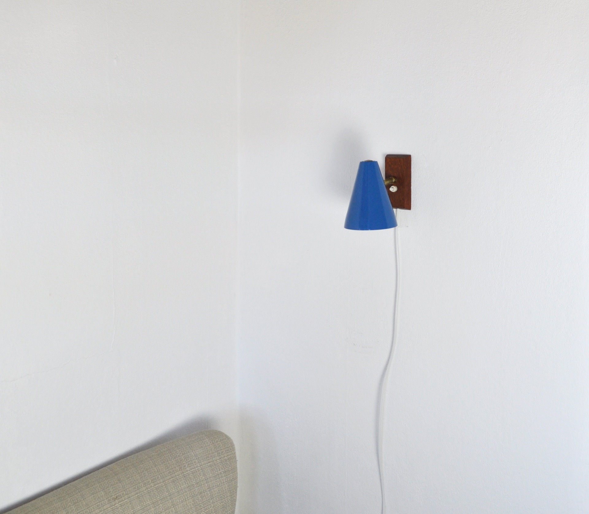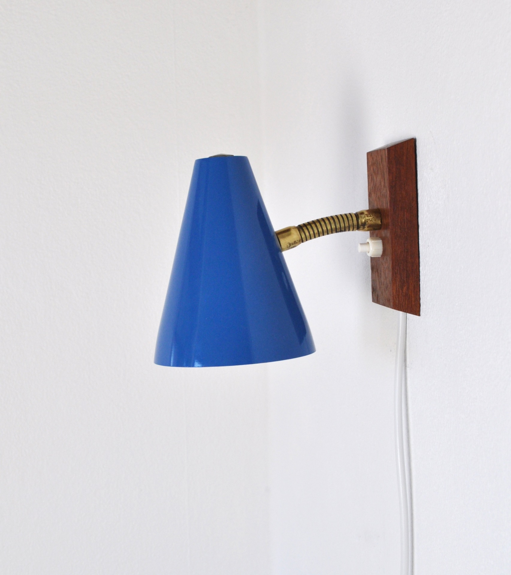 Scandinavian Modern Danish wall lamp with adjustable brass arm.