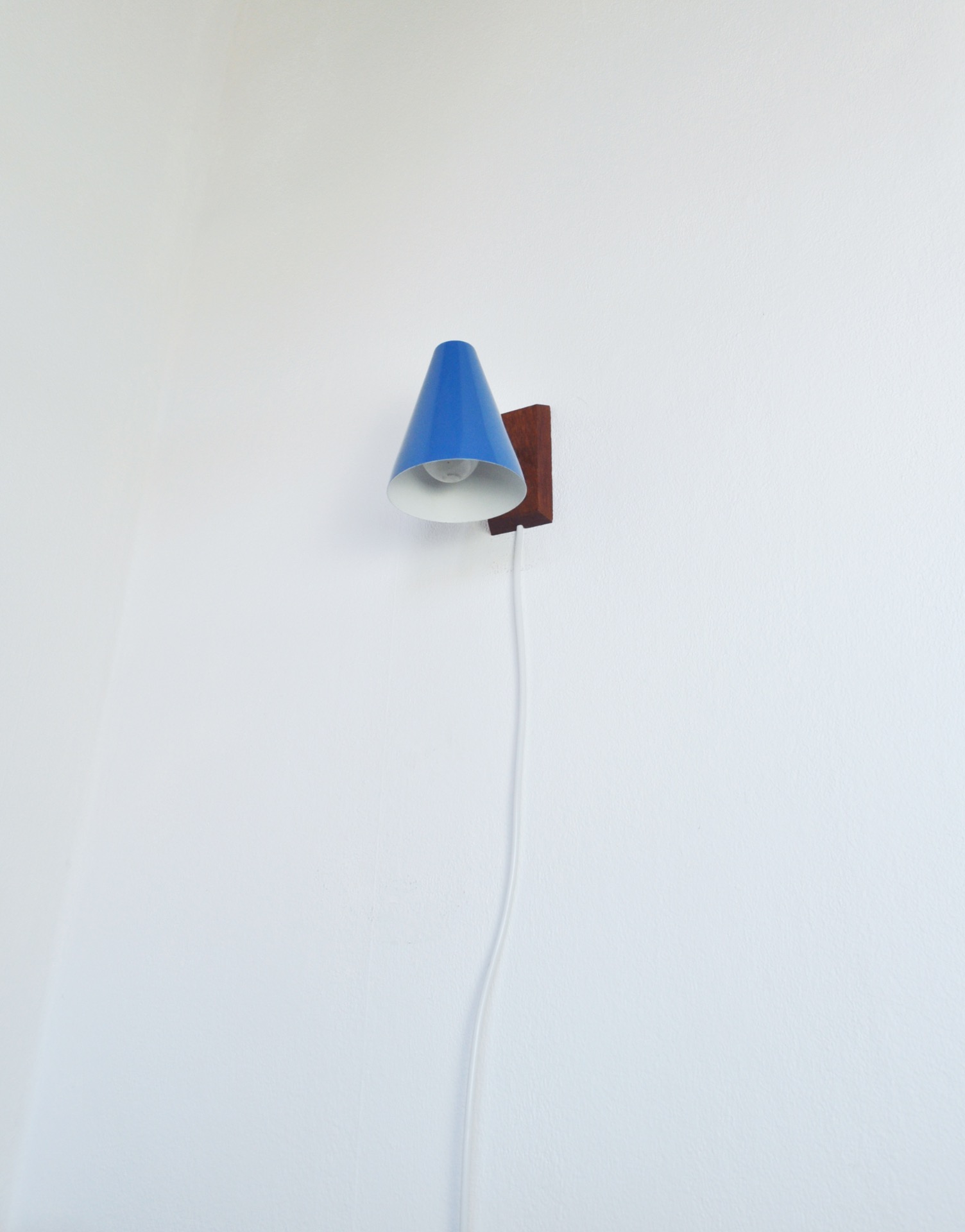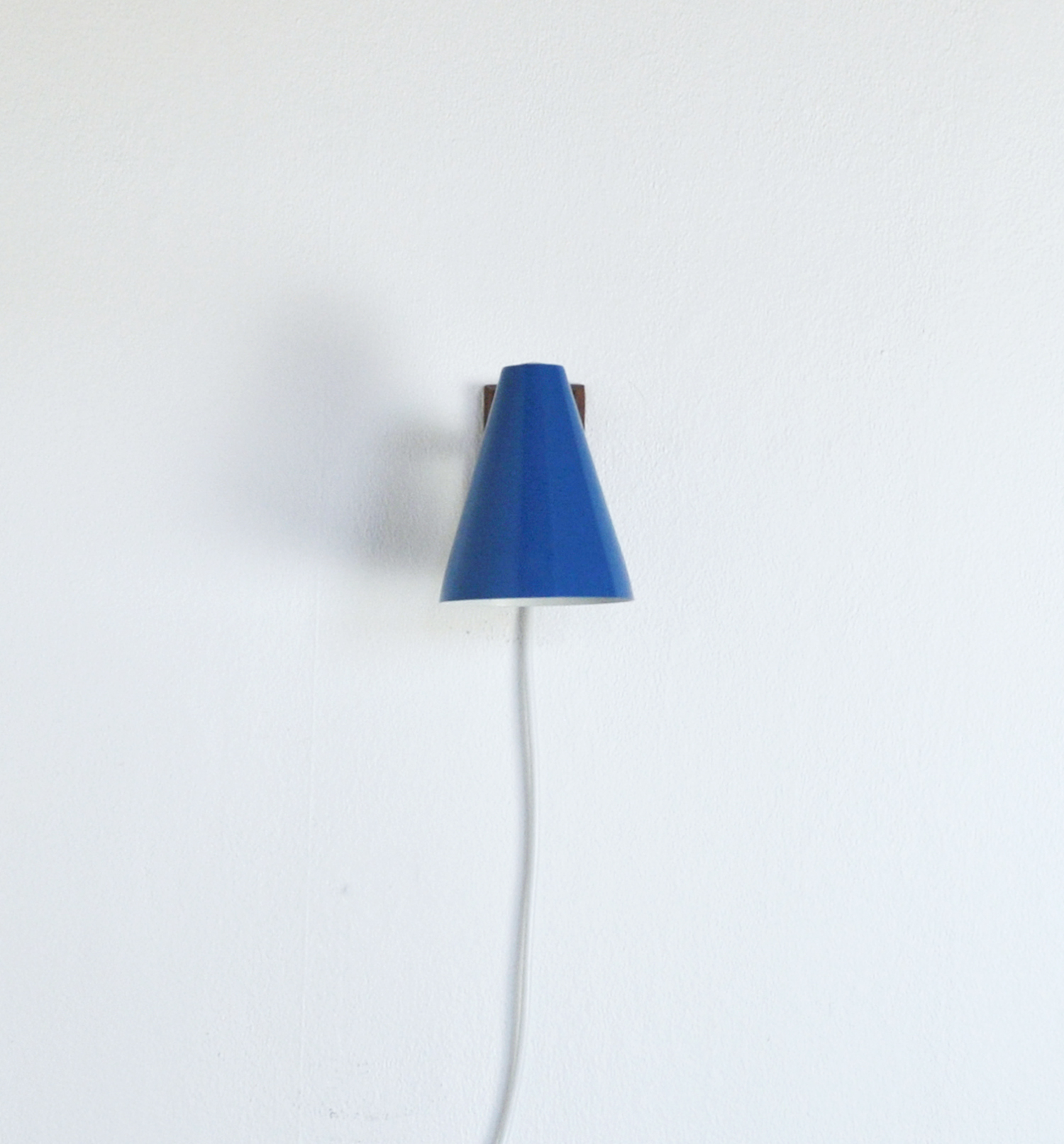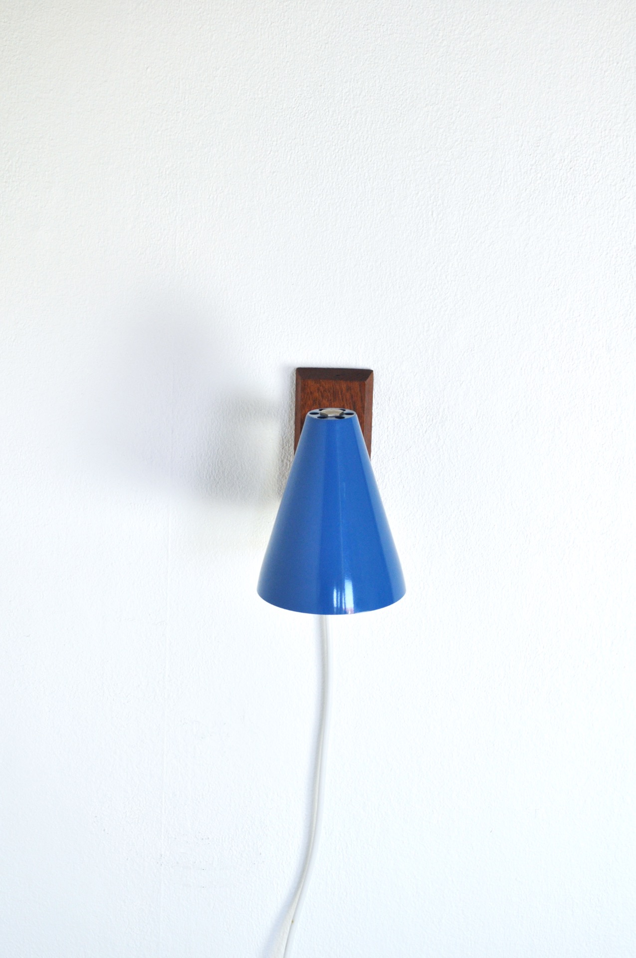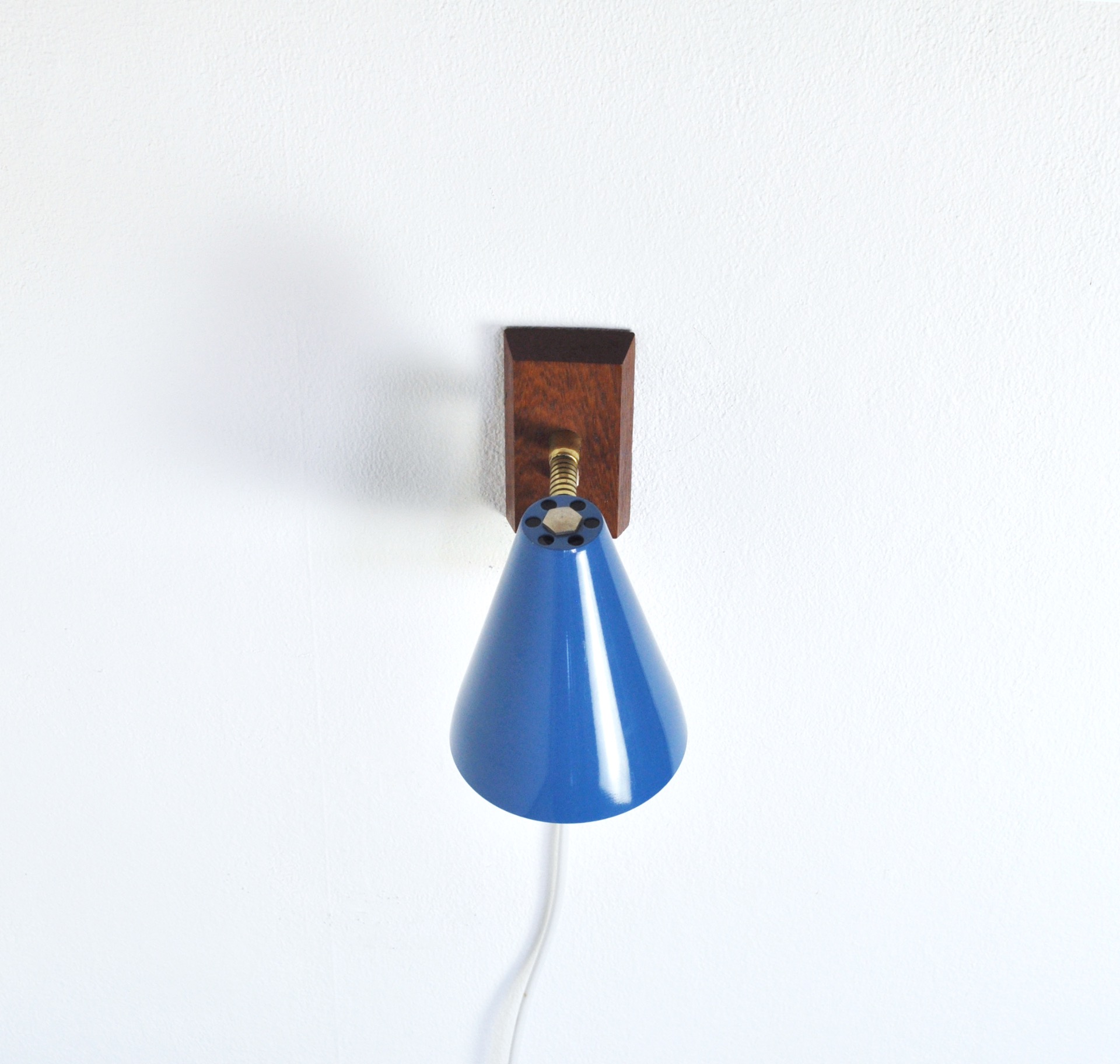 Scandinavian Modern Danish wall lamp with adjustable brass arm.