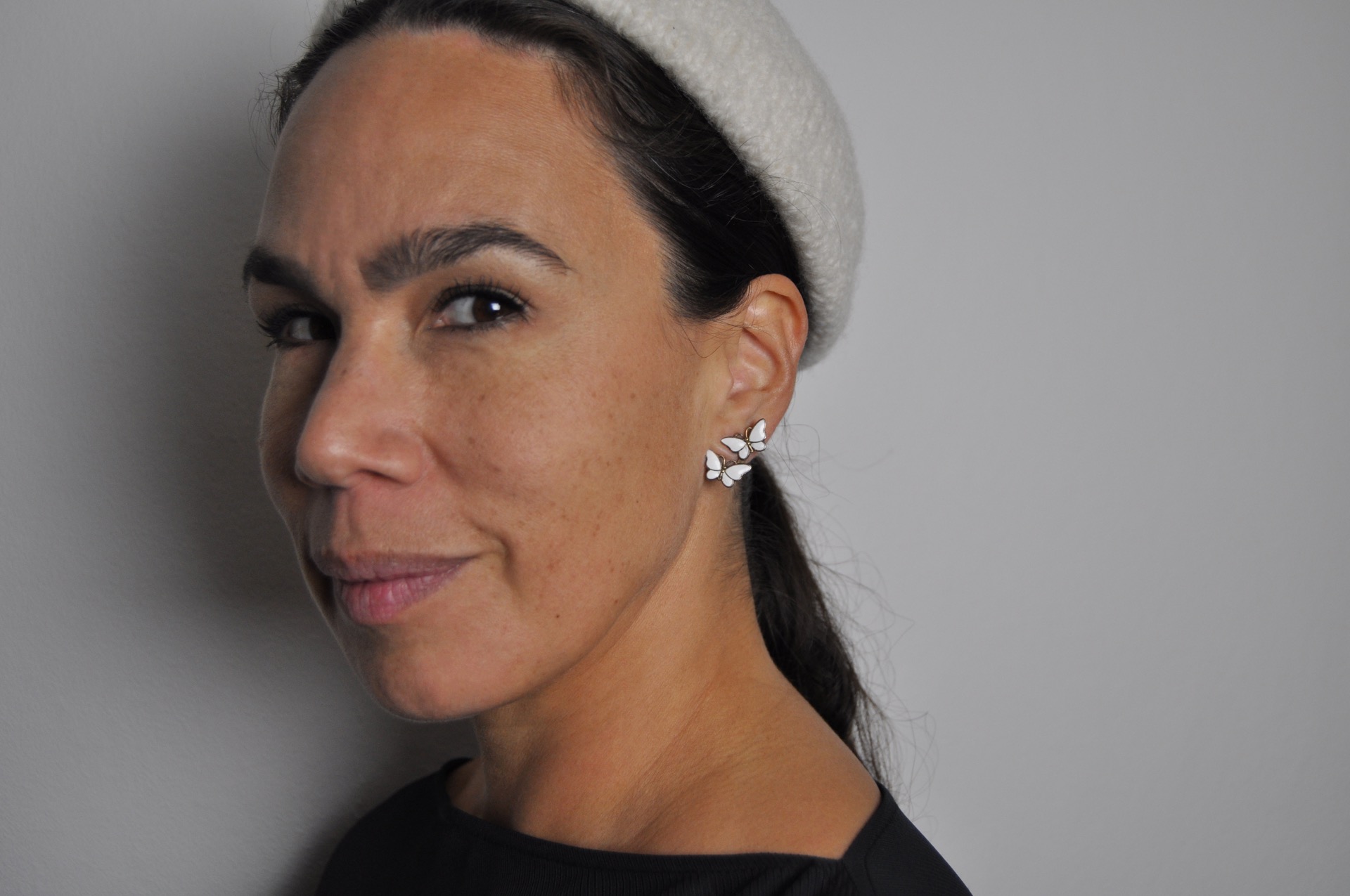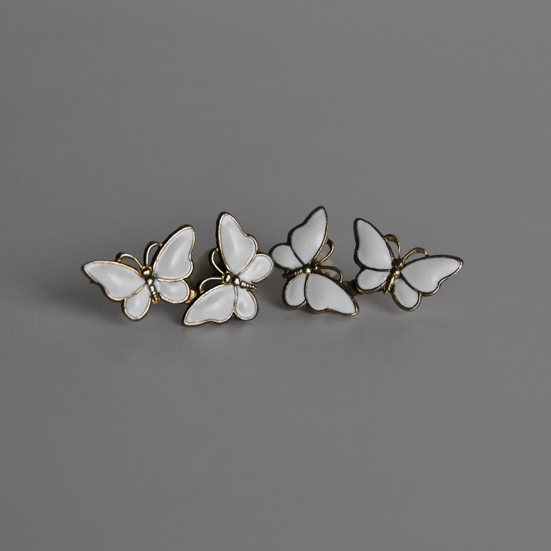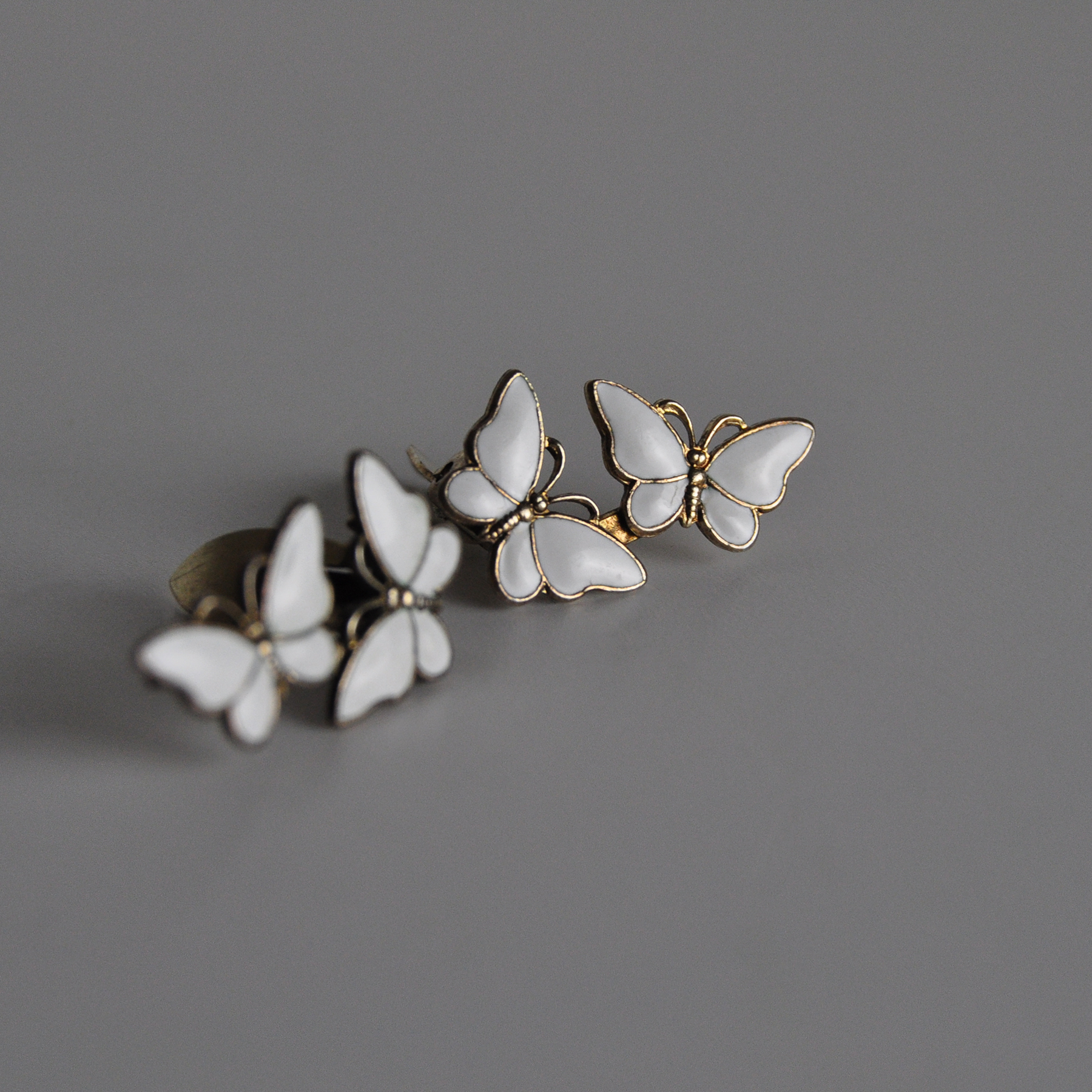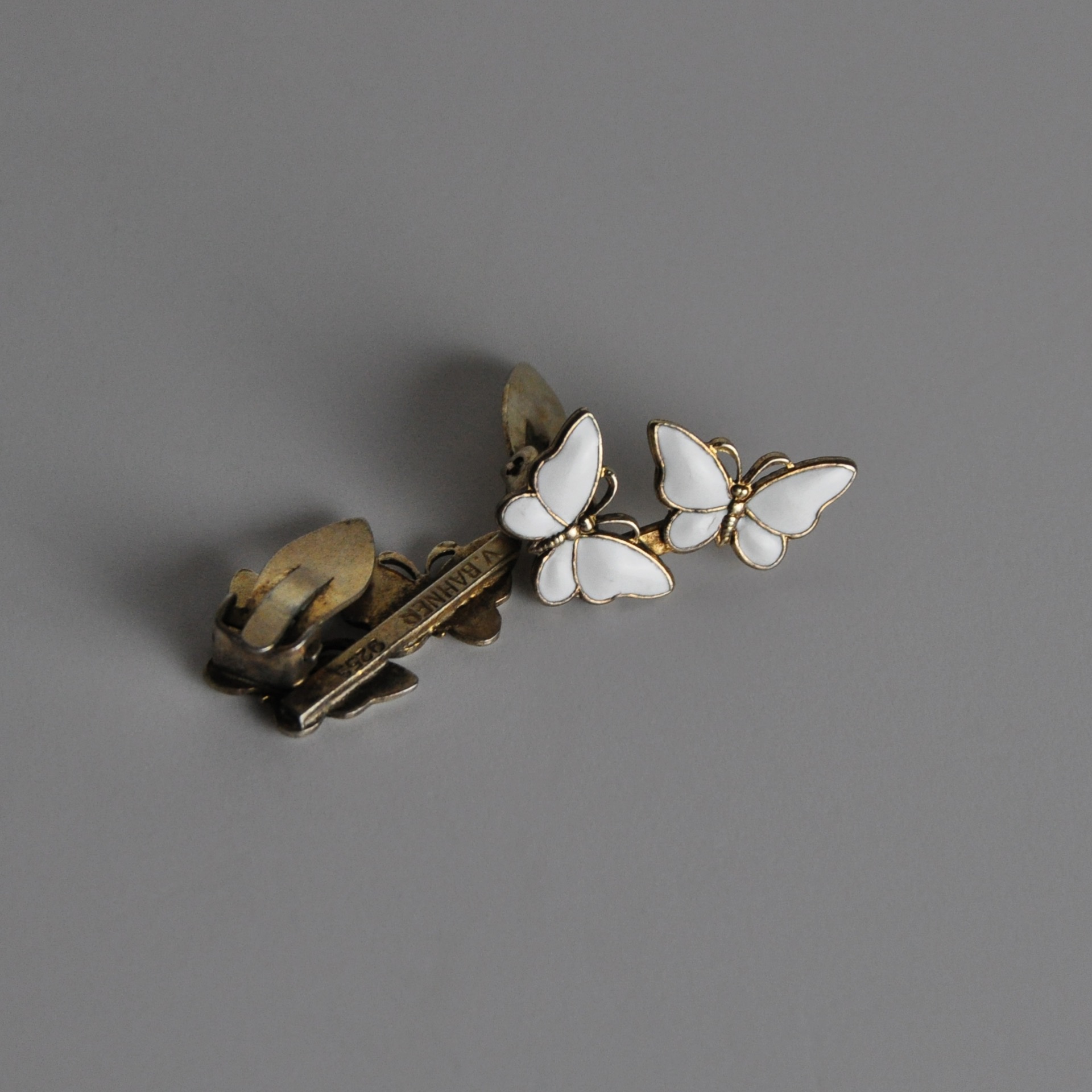 The ear clips, made with white enamel, are shaped like two butterflies.