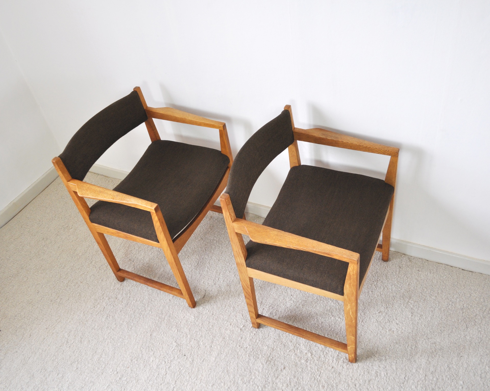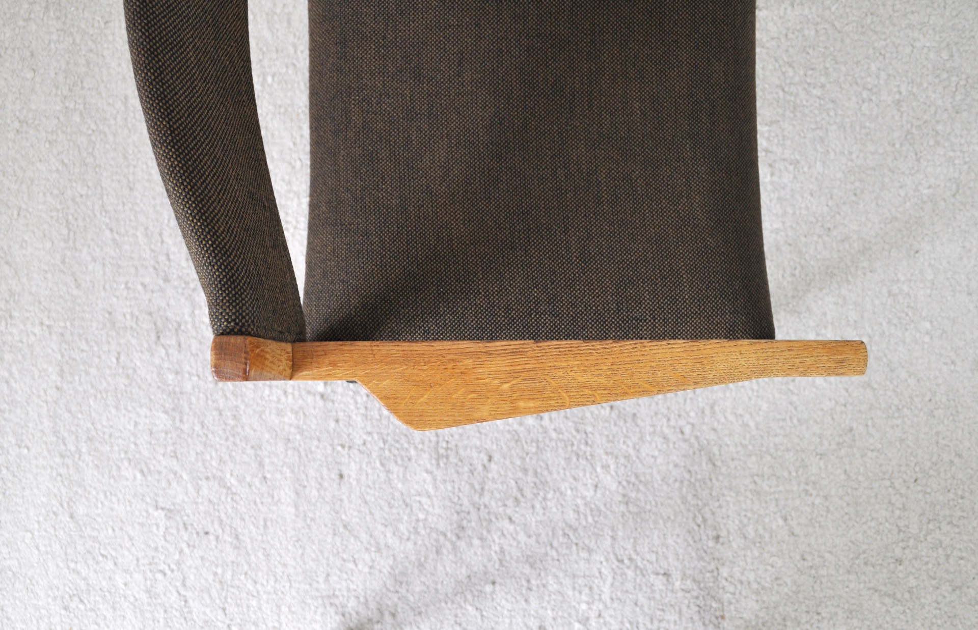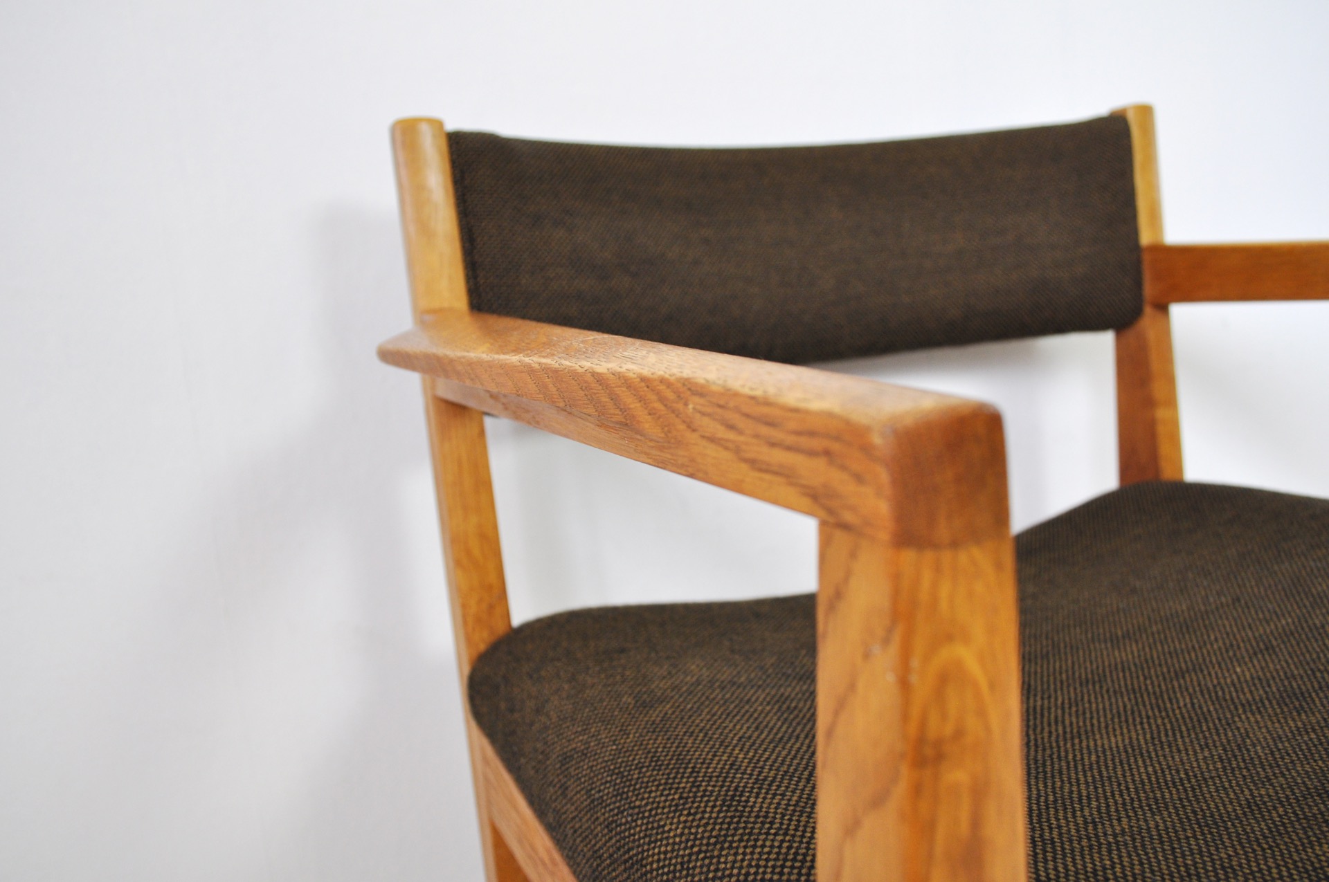 Set of two armchairs model 350 designed by Peter Hvidt & Orla Mølgaard-Nielsen made of solid oak. Upholstered with dark brown Kvadrat wool fabric on seat and backpiece. Manufactured by Søborg Møbler, 1959.