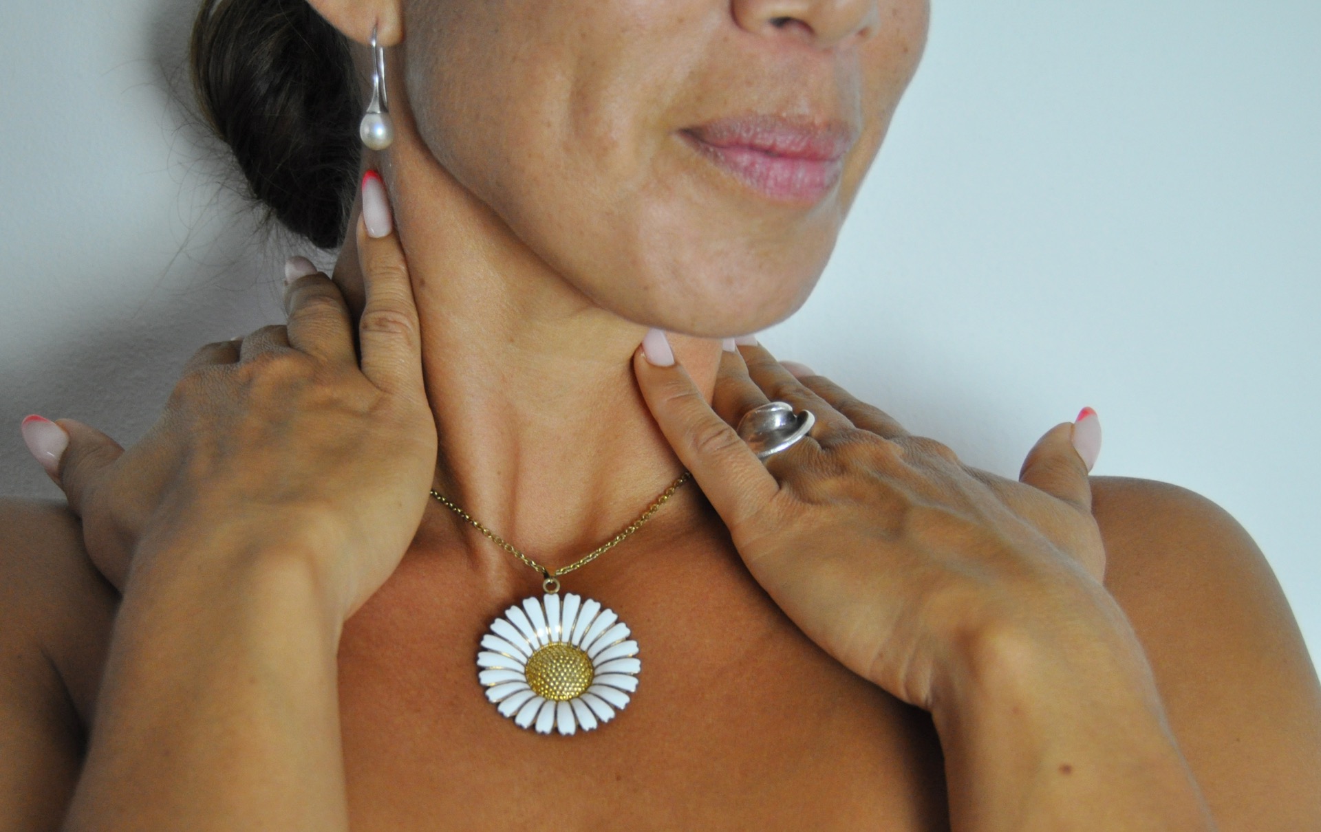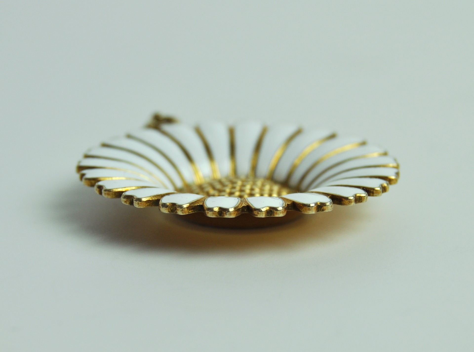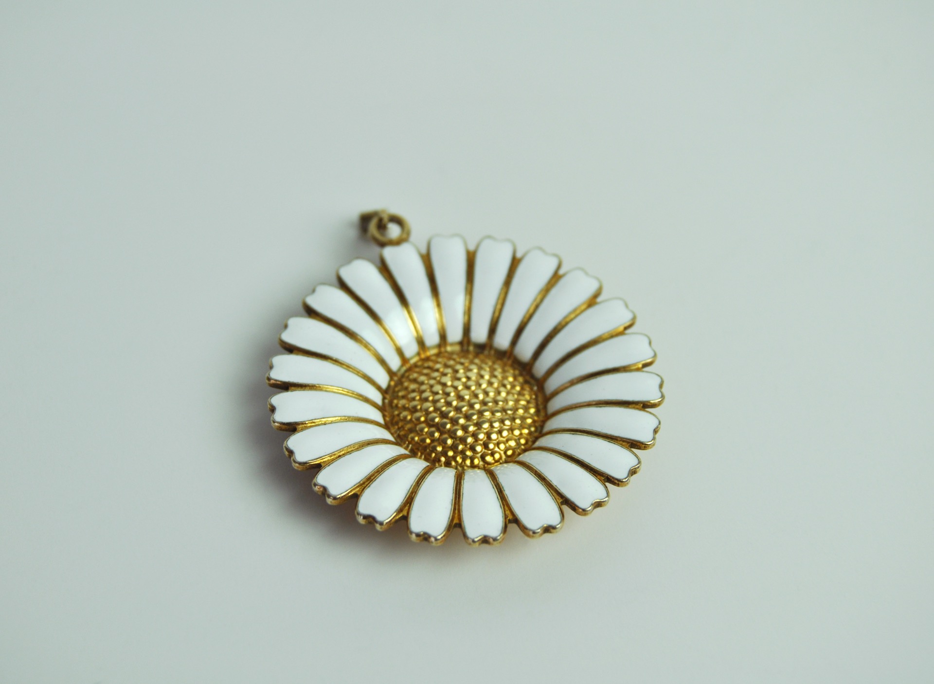 Marguerite pendant in gold-plated sterling silver with white enamel.