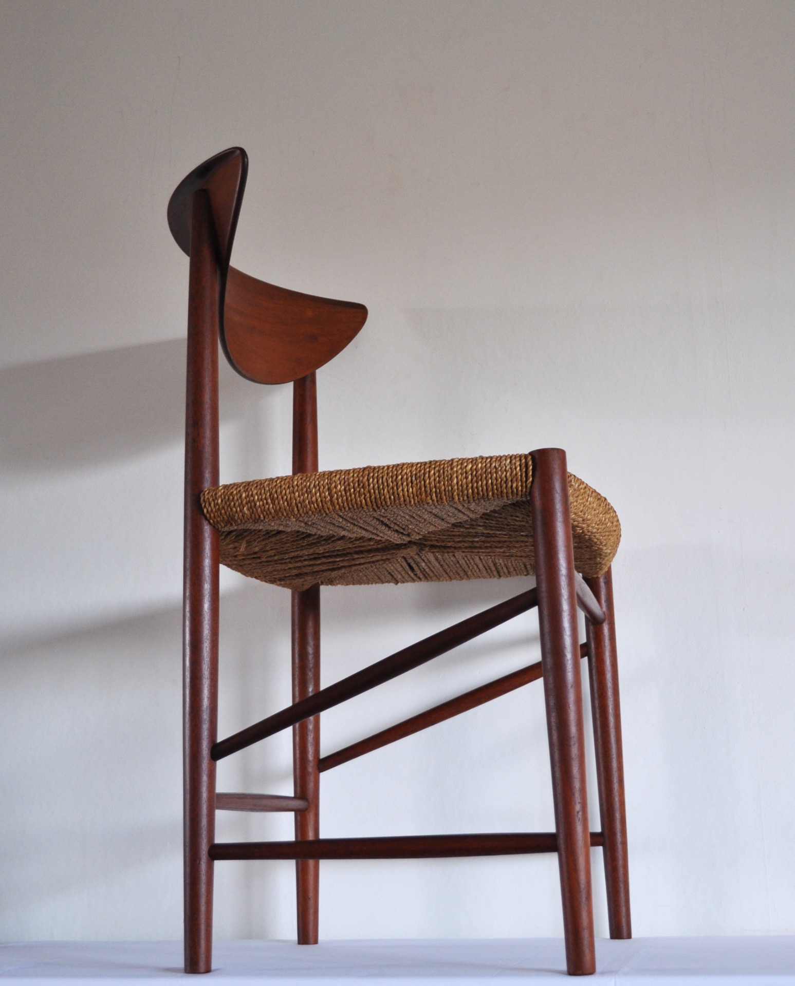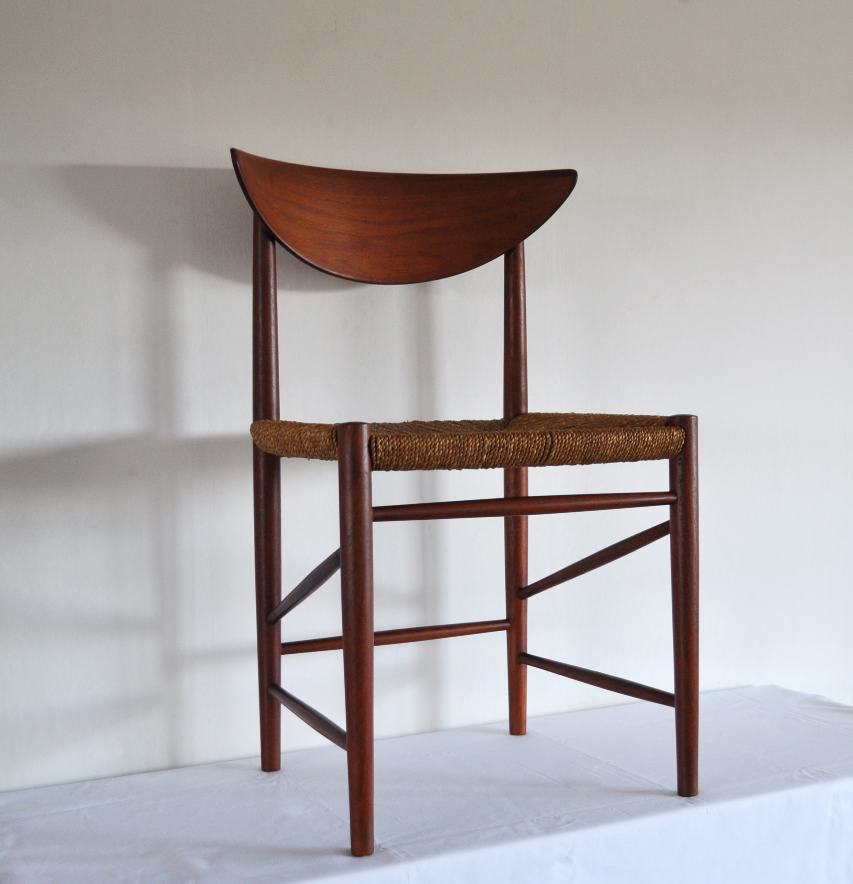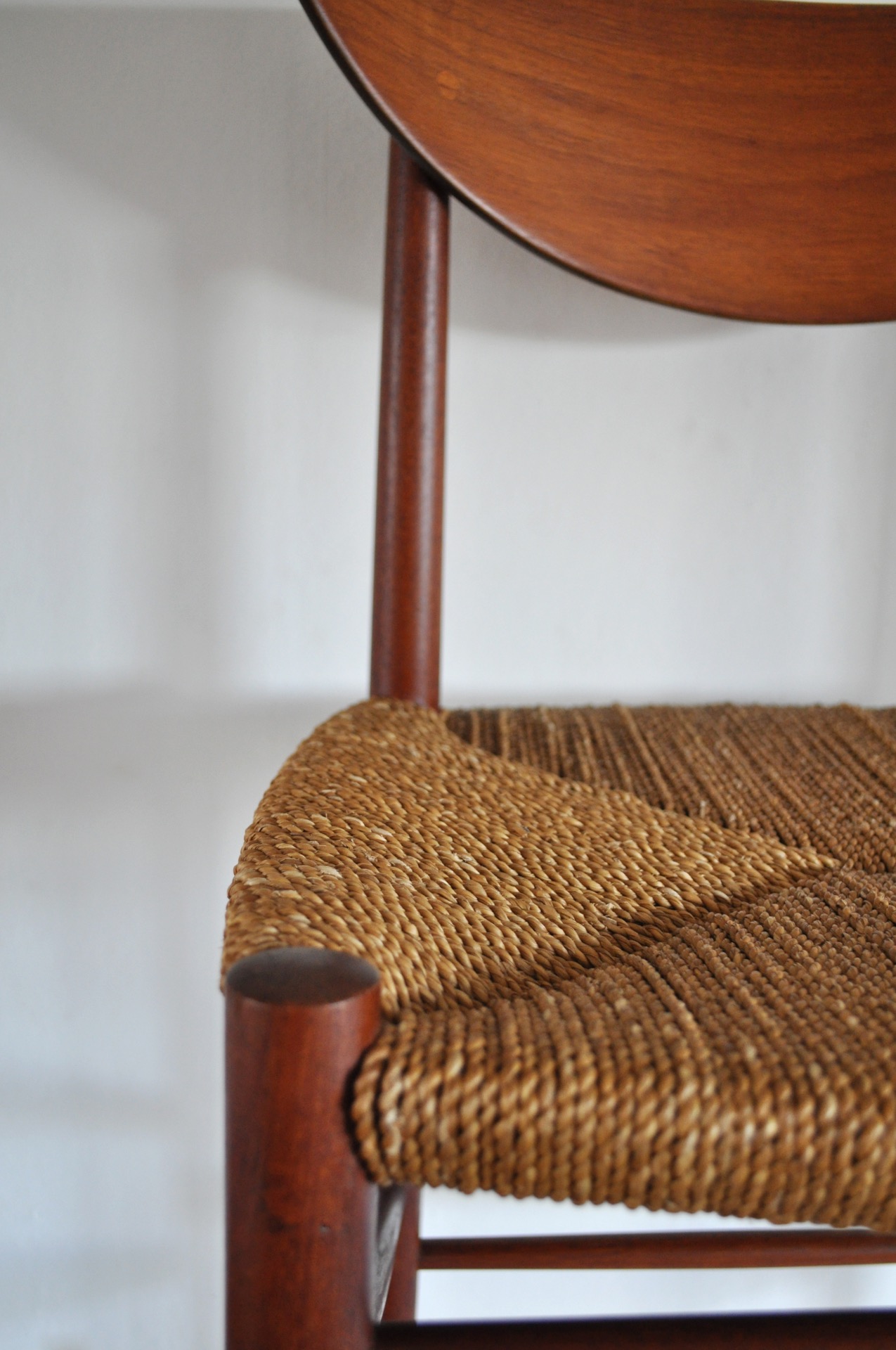 Dining chair model 316 designed by Peter Hvidt & Orla Mølgaard-Nielsen made of solid teak wood with original cord seat. Manufactured by Søborg Møbelfabrik, 1956.
