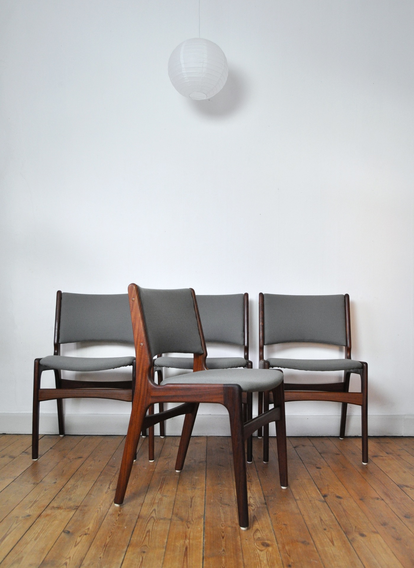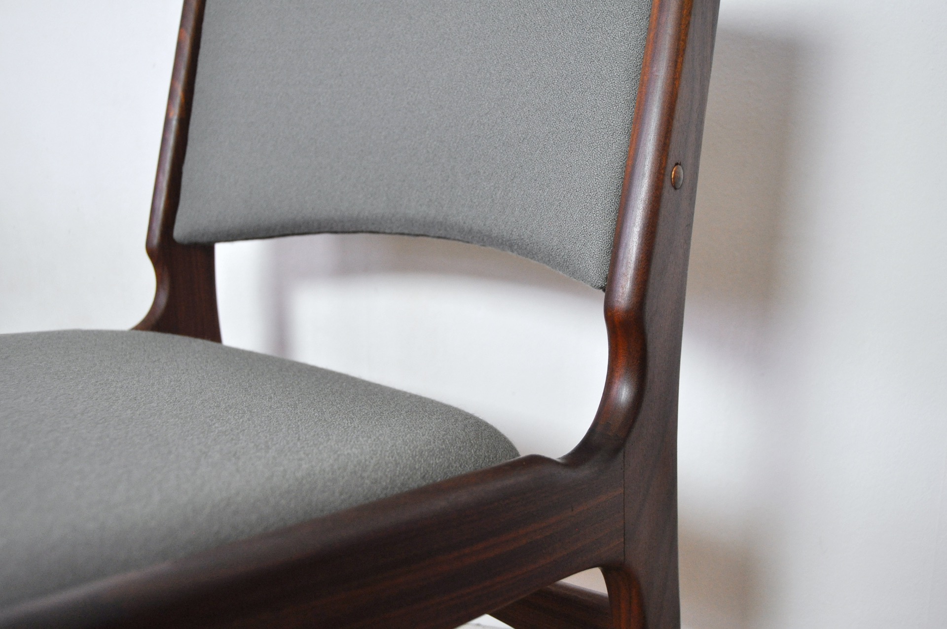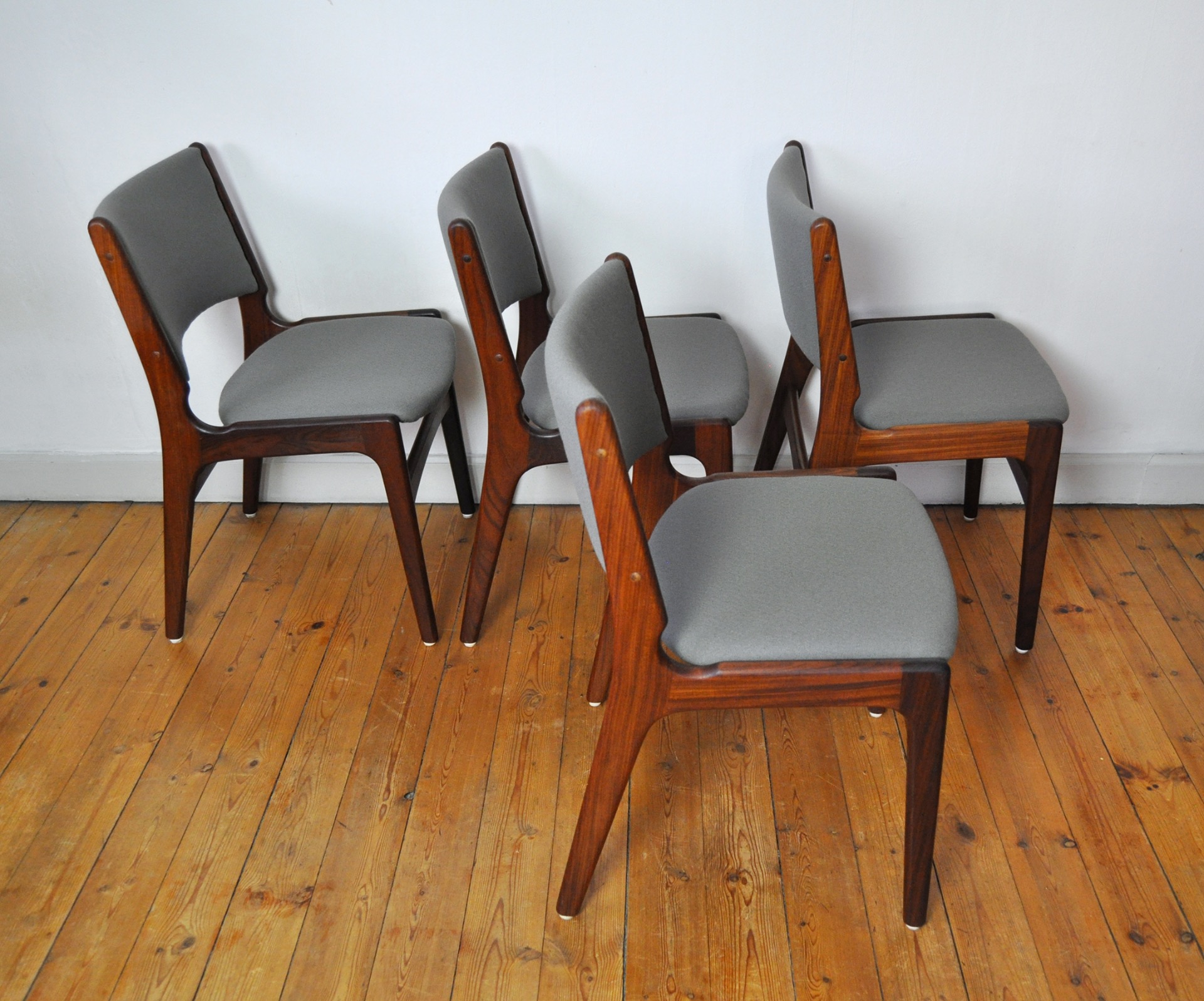 ERIK BUCH RESTORED AND REFINISHED DANISH TEAK DINING CHAIRS WITH NEW UPHOLSTERY