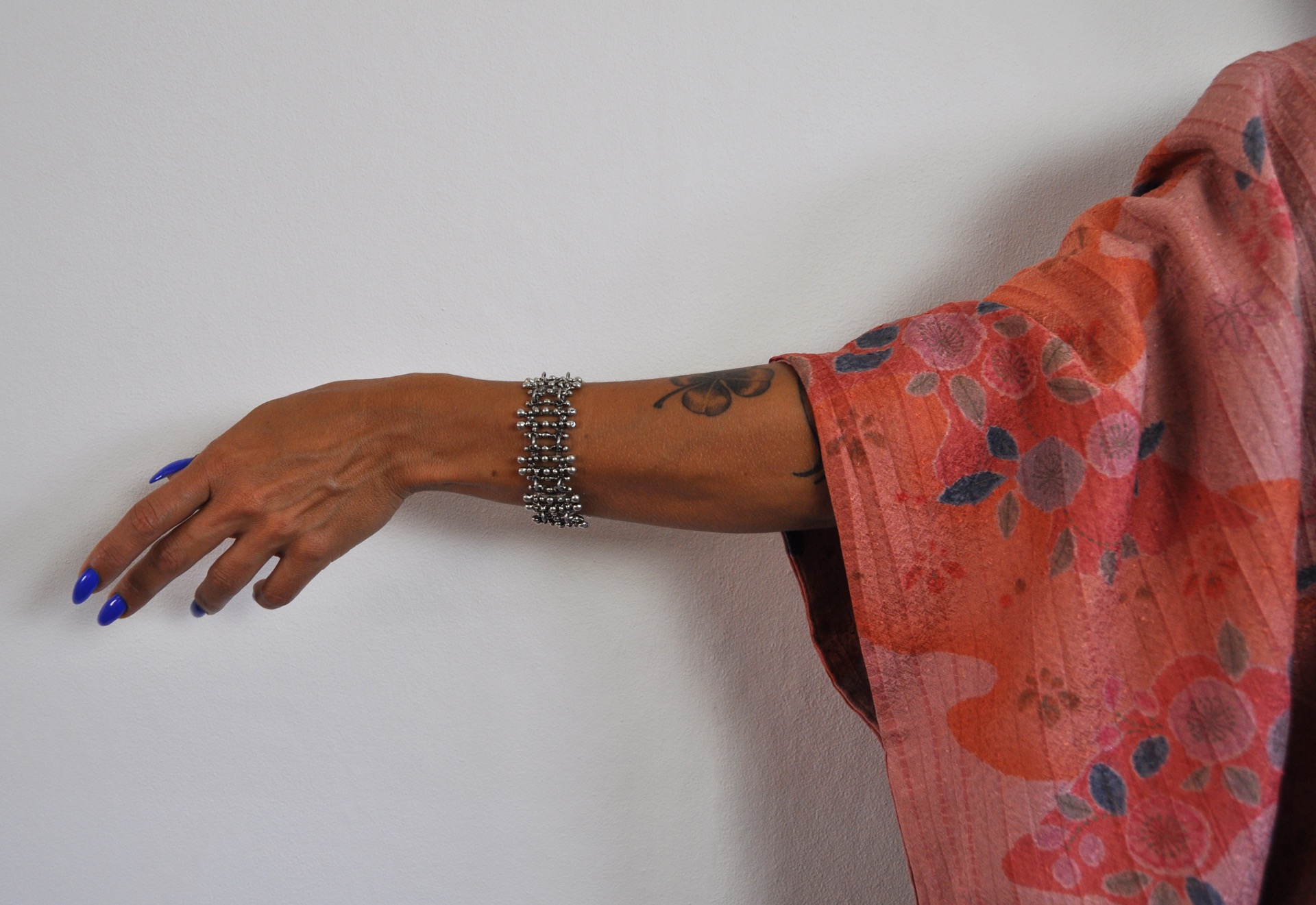 Modernist vintage pewter bracelet, Finland 1970s. The bracelet features a Nordic minimalistic and brutalist design.