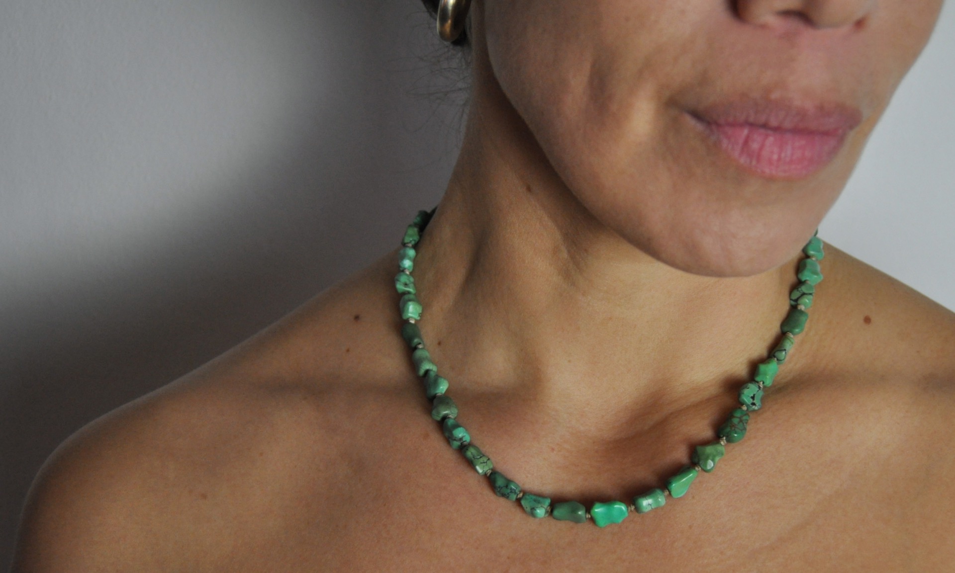 GENUINE TURQUOISE AND STERLING SILVER NECKLACE BY ERIK POUL FENSTER, DENMARK
