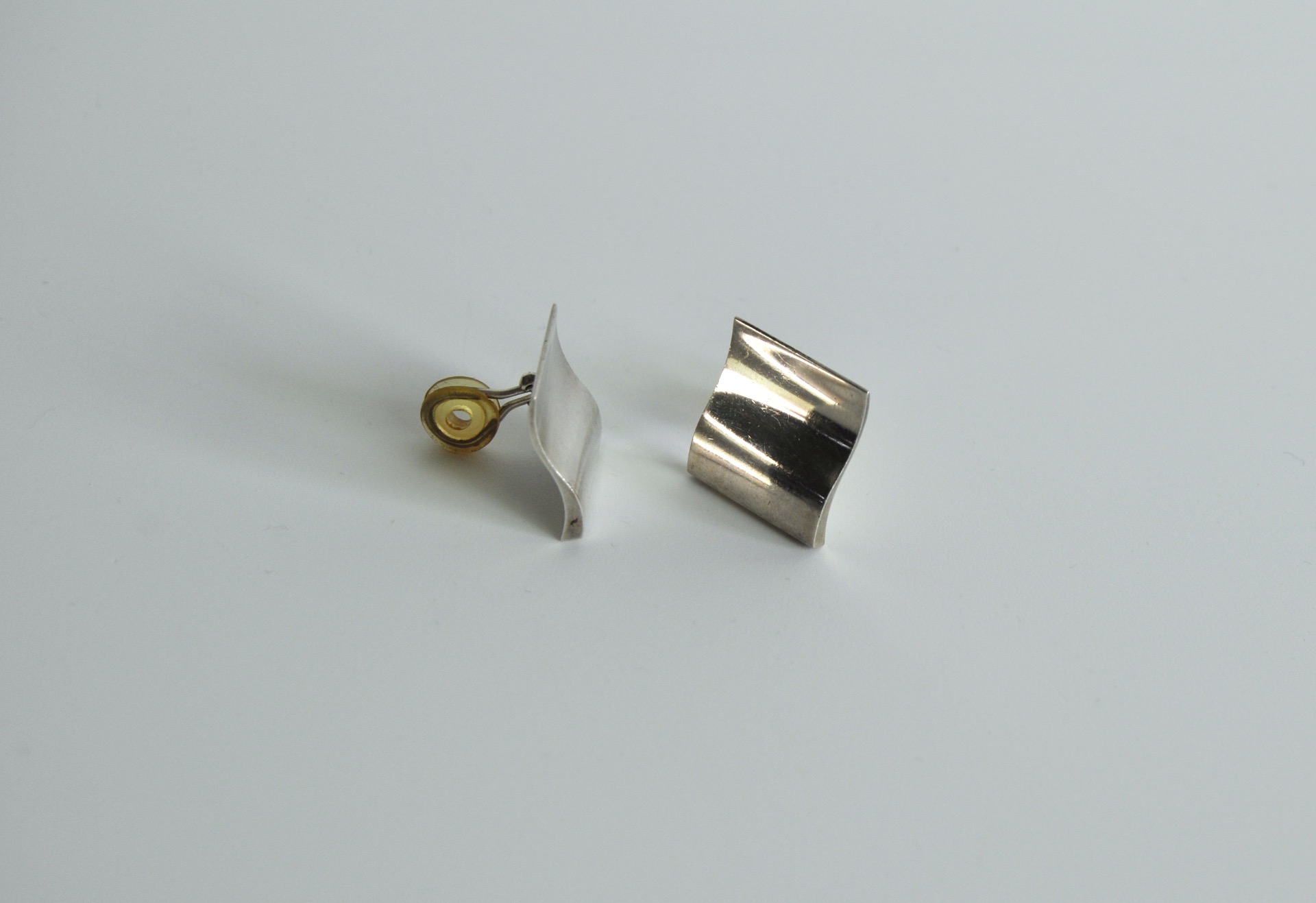 Clip-On Earrings designed by Nanna Ditzel (1923 - 2005) for Georg Jensen, Denmark. The set is made of Sterling Silver and is called "Surf" #432.