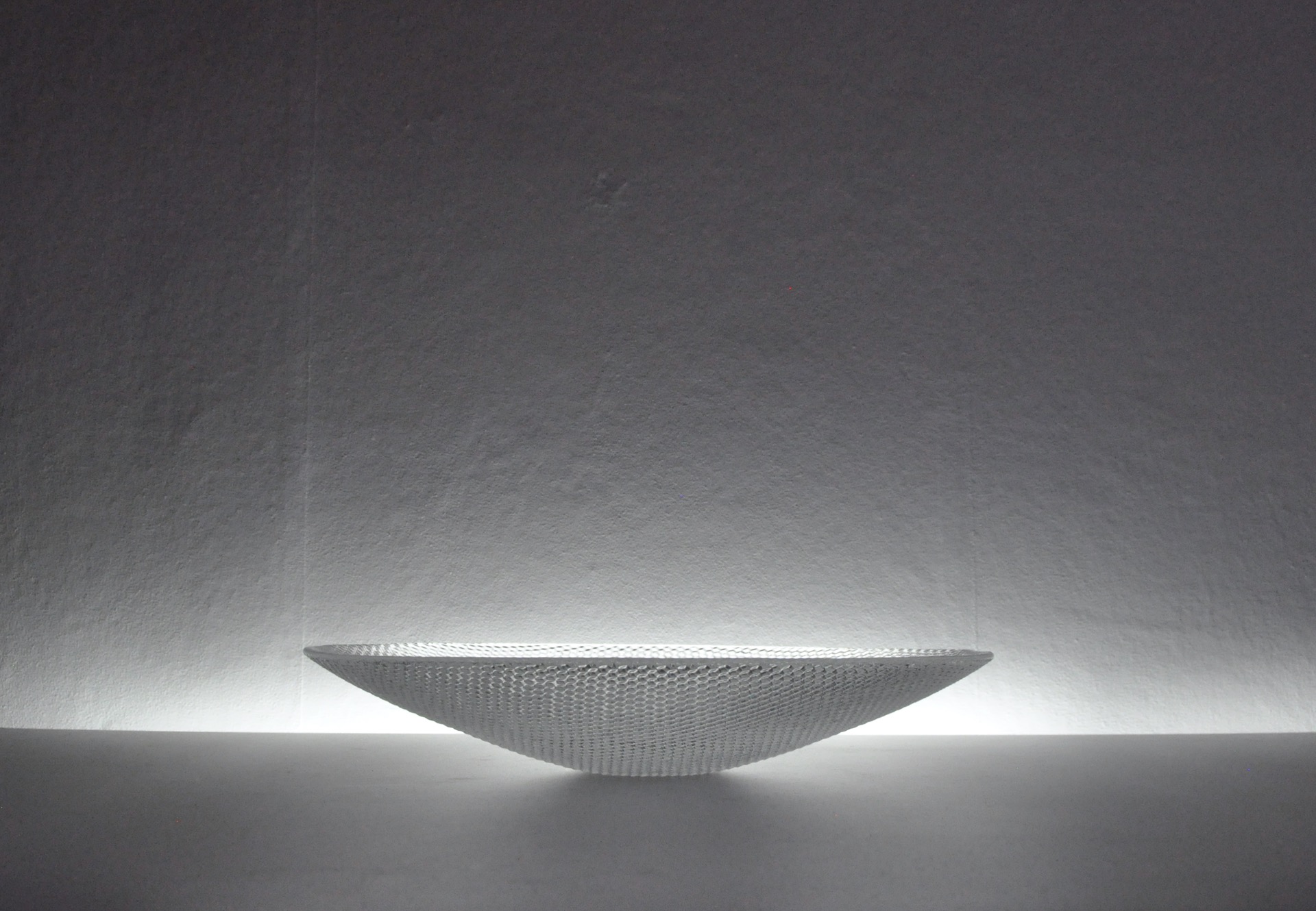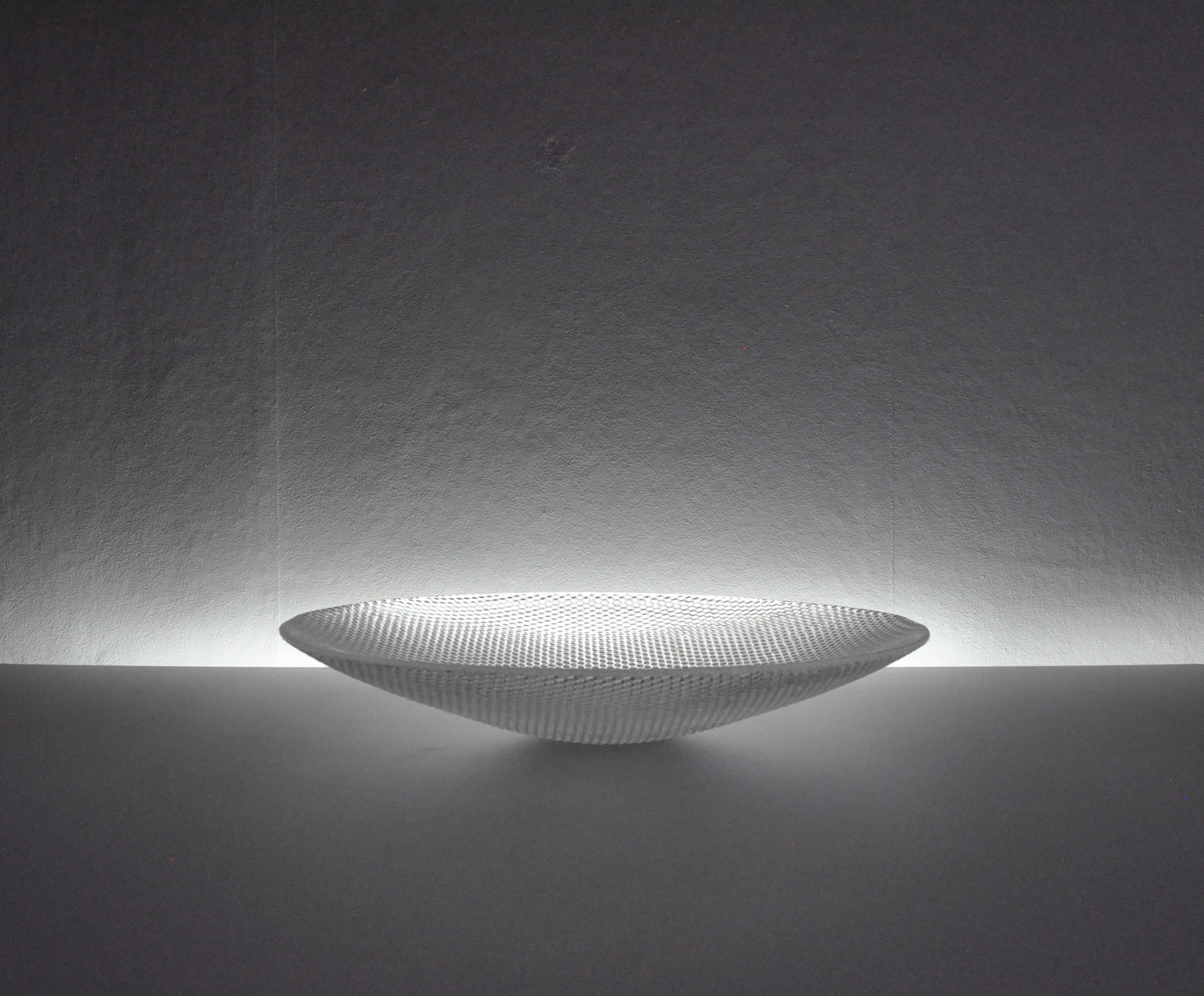 He was very fascinated by a throwing technique that was discovered in the 1930s. It is a technique that exploits the natural abilities and dynamics of glass: A glowing lump of glass solidifies as it is thrown out in a rapidly swirling form.