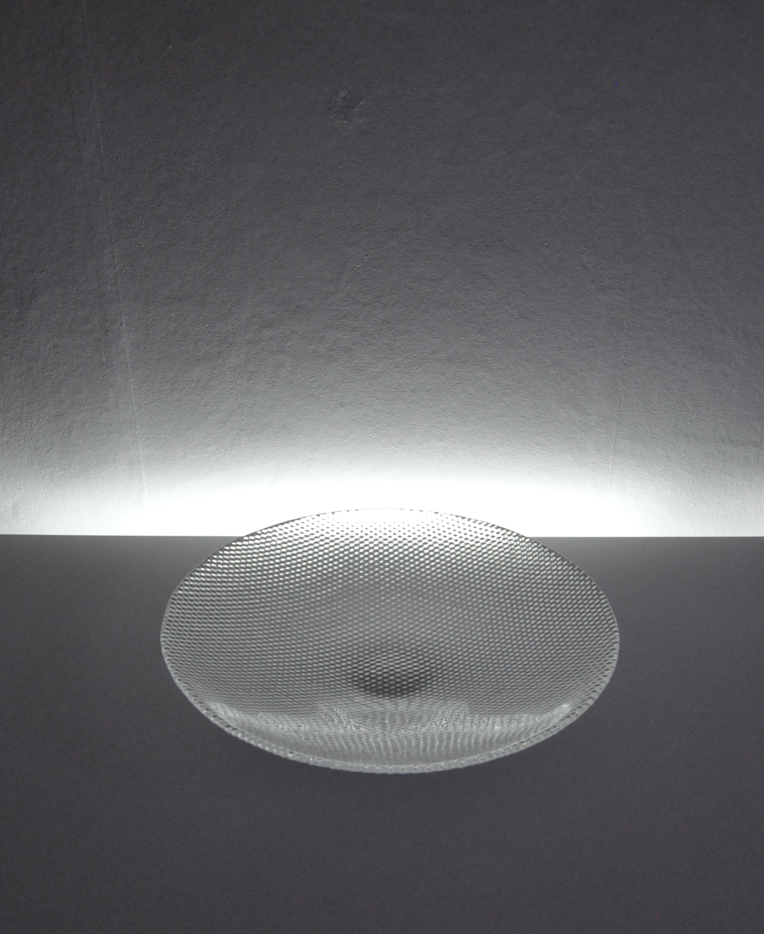 Trigona is series of centrifuged clear glass with smooth inner and cube patterned outer surface. The pattern is inspired by honeycomb.