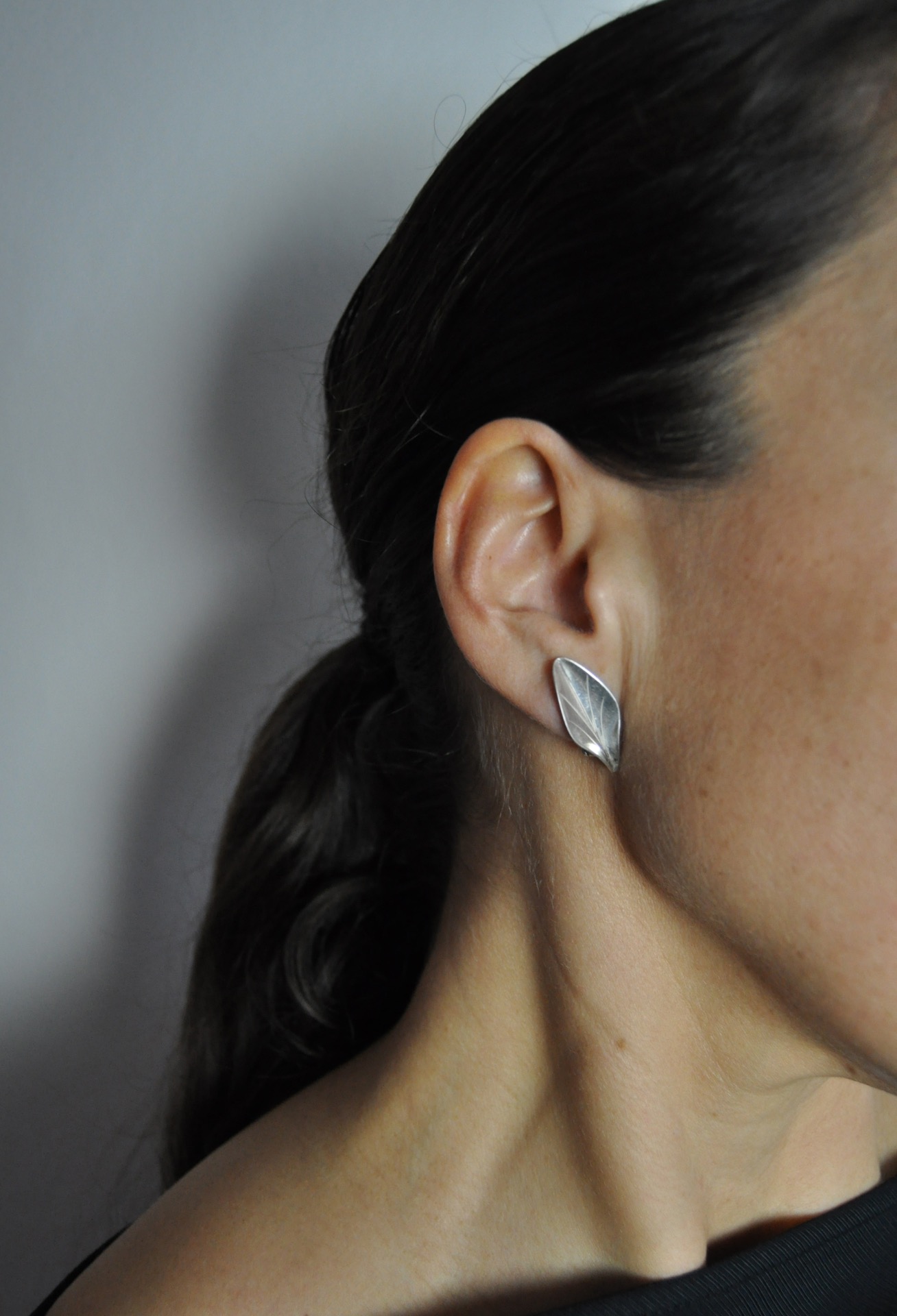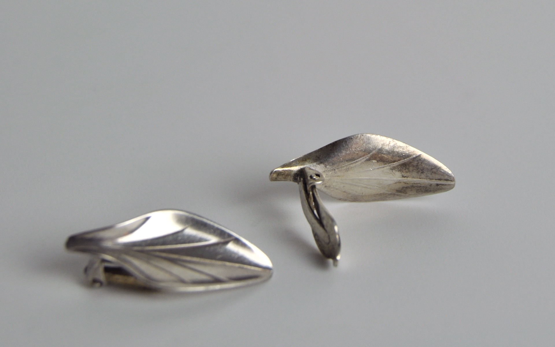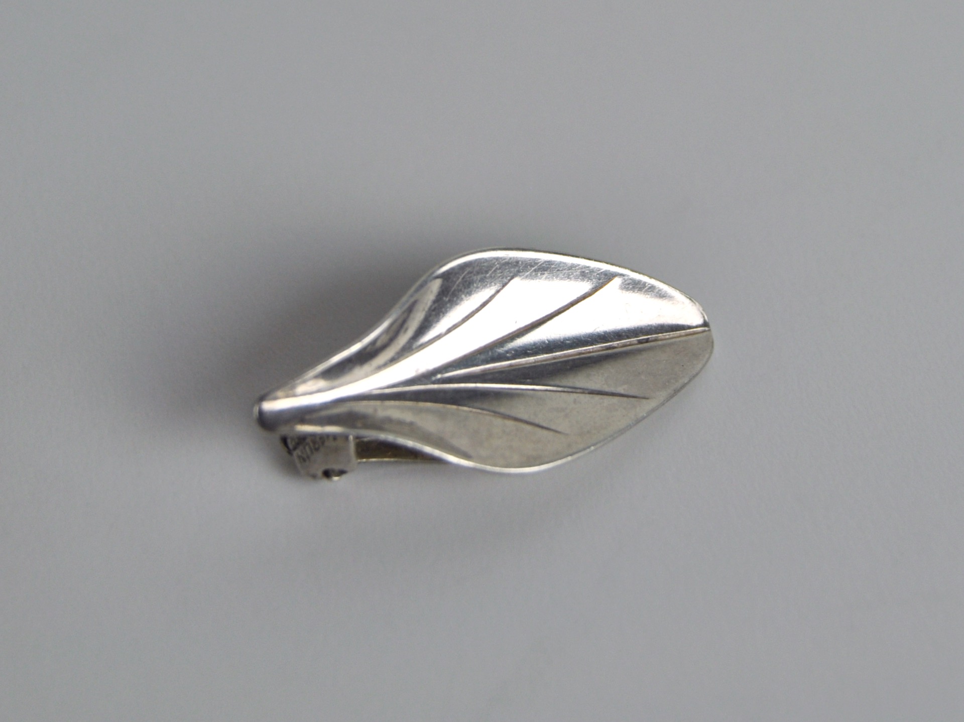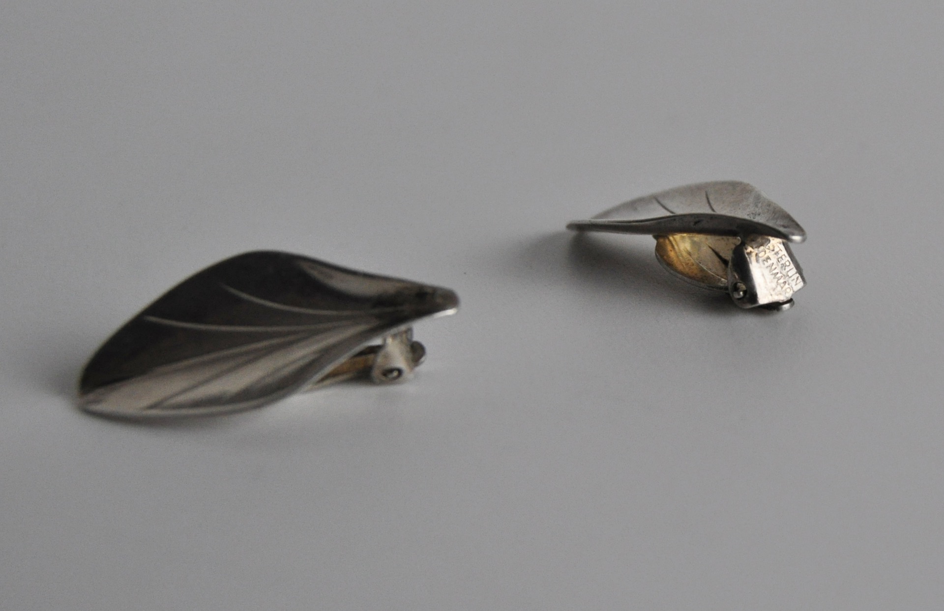 Beautiful leaf earclips with a highly polished finish in sterling silver, designed and made by the Danish goldsmith Hermann Siersbøl in 1940-50s.