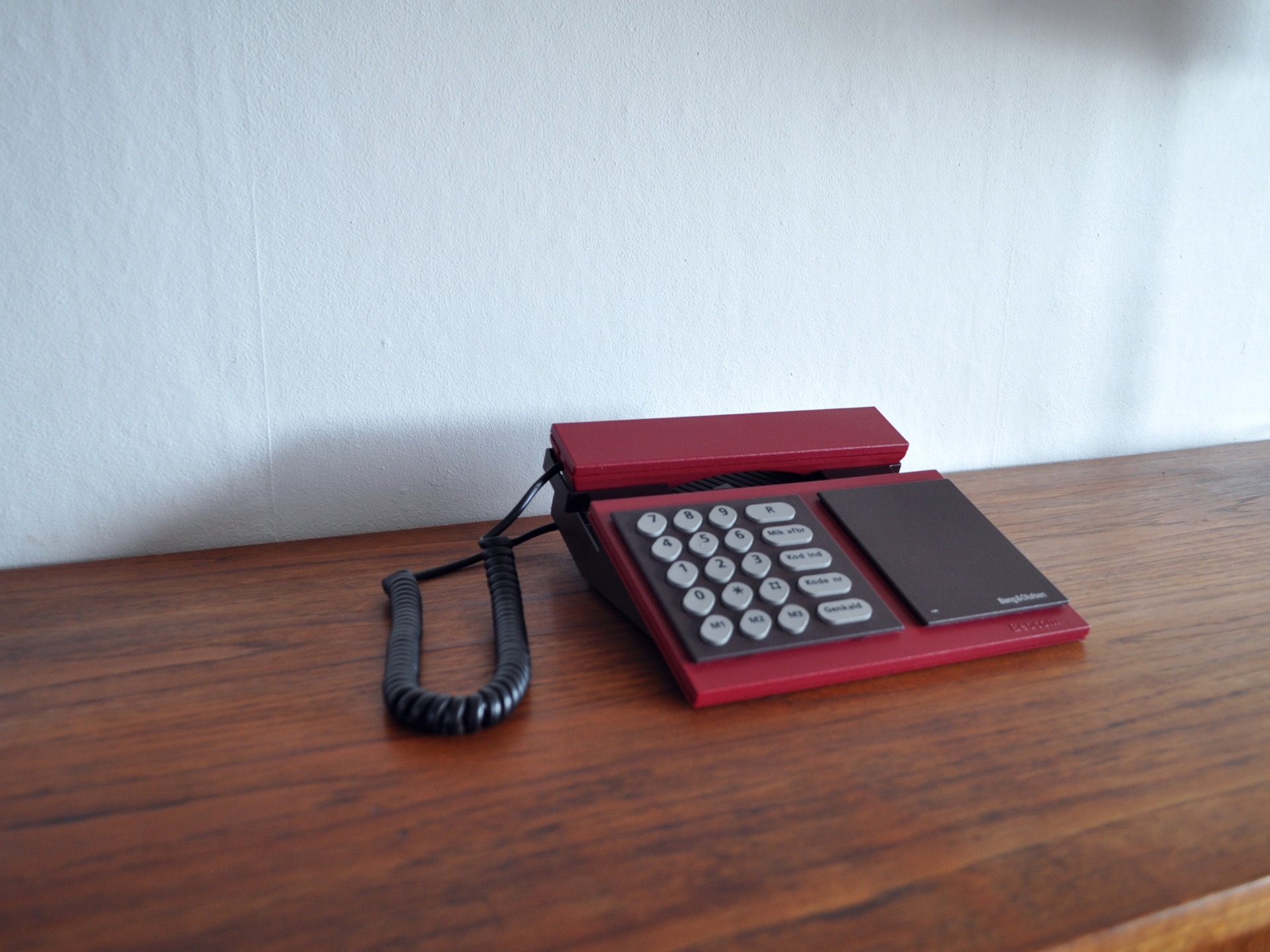 Beocom 1000 telephone from 1986 in ruby color designed by Lone and Gideon Lindinger-Lowy for Bang & Olufsen.