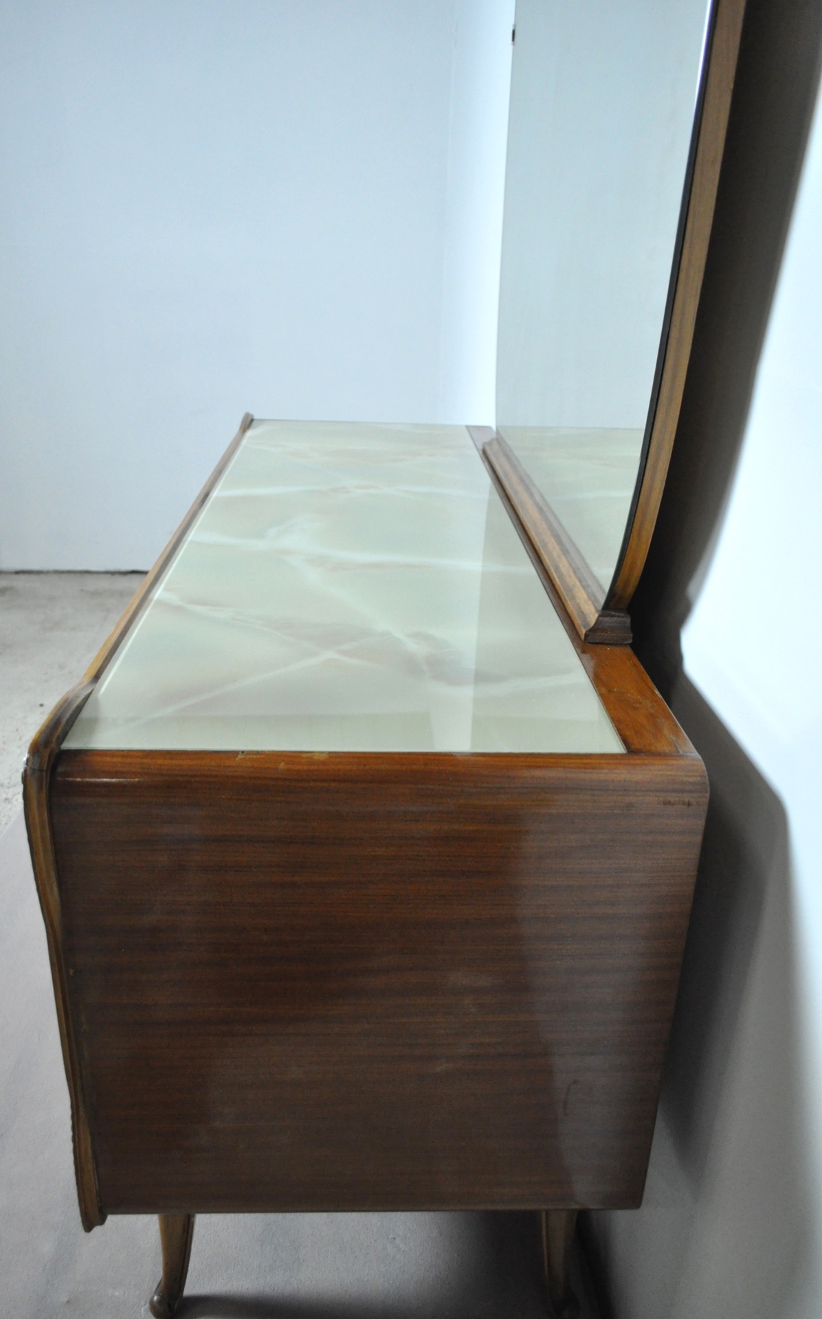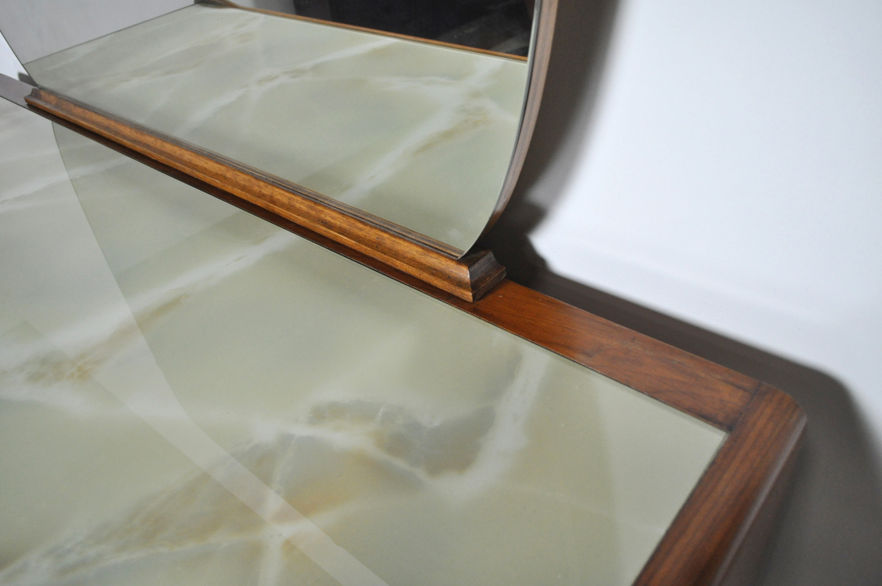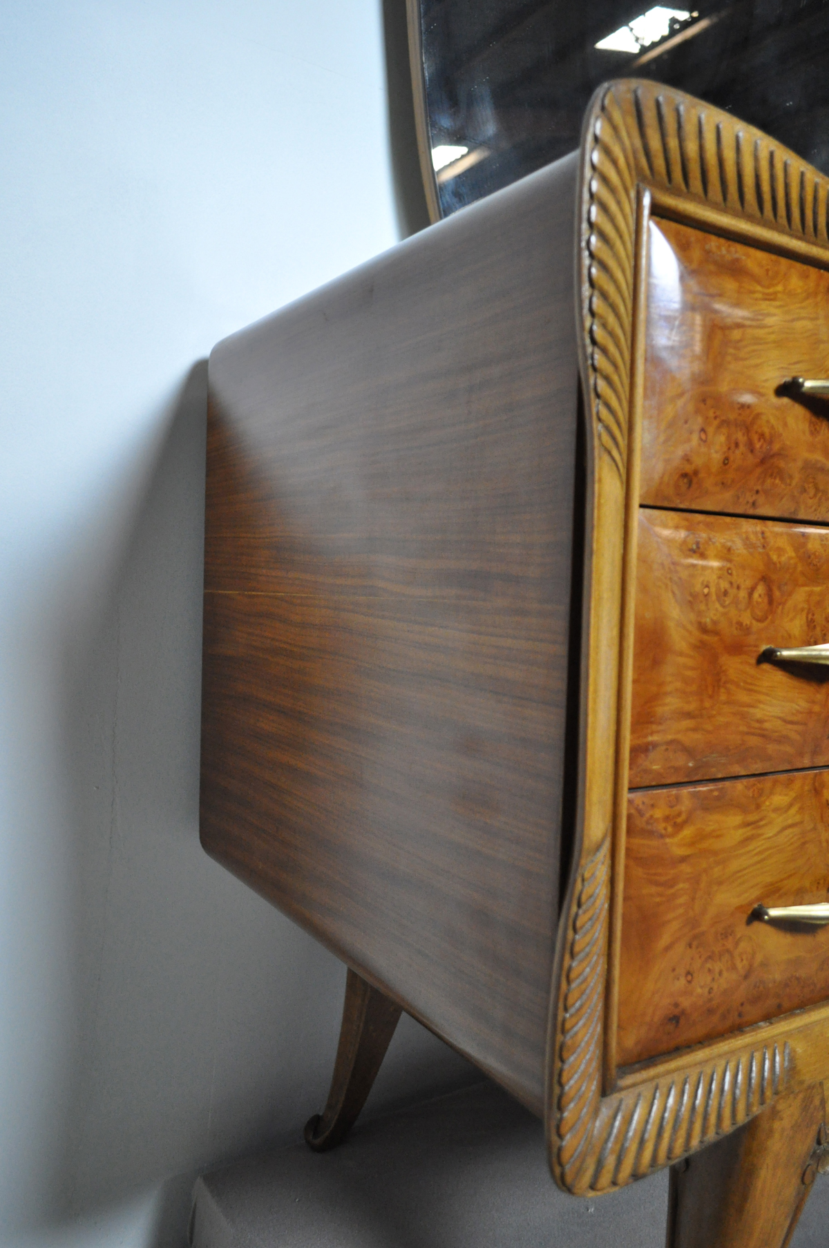 Italian Art Deco Walnut and Birdseye Maple Commode with mirror.