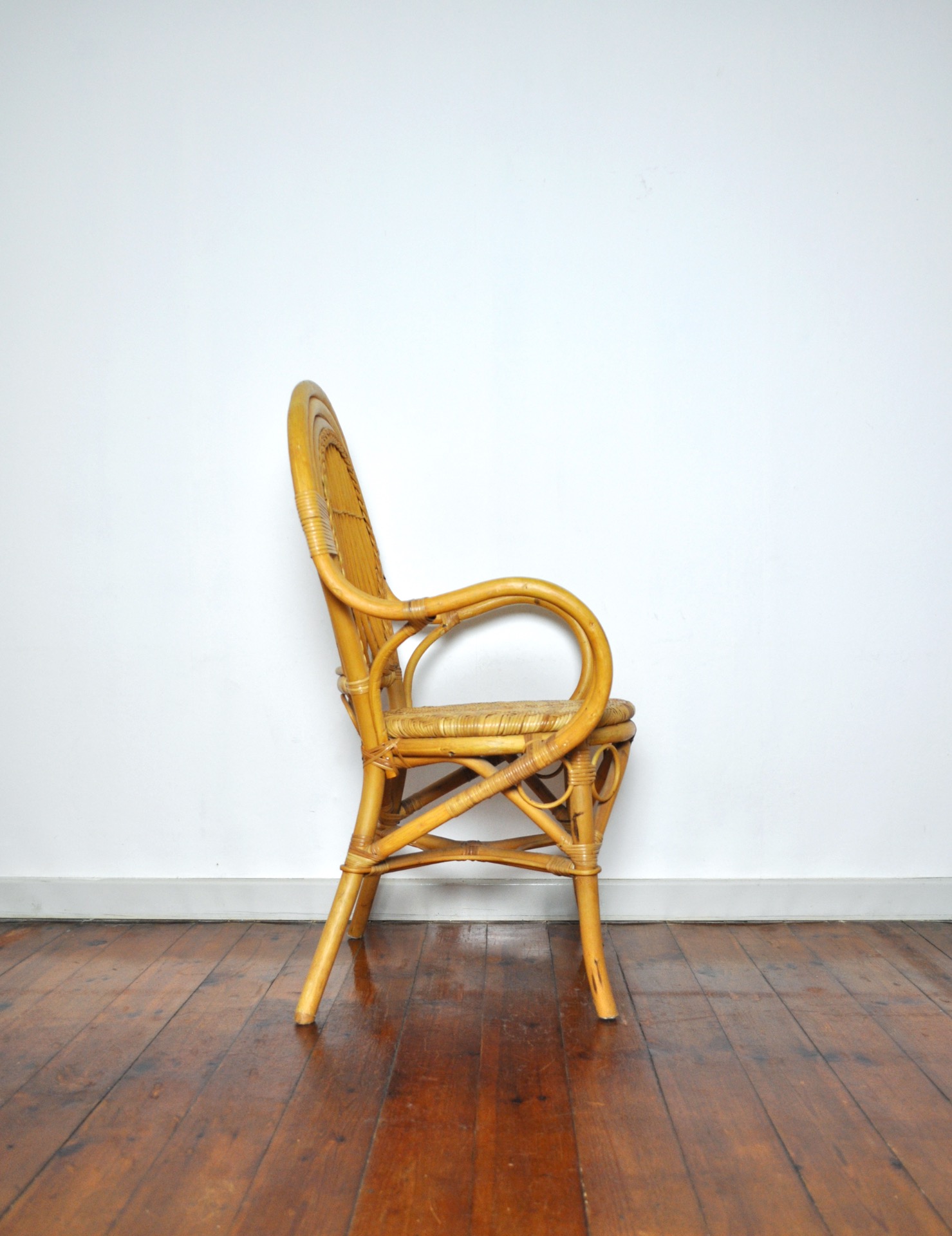 Well proportioned rattan and bamboo armchair with fine details.