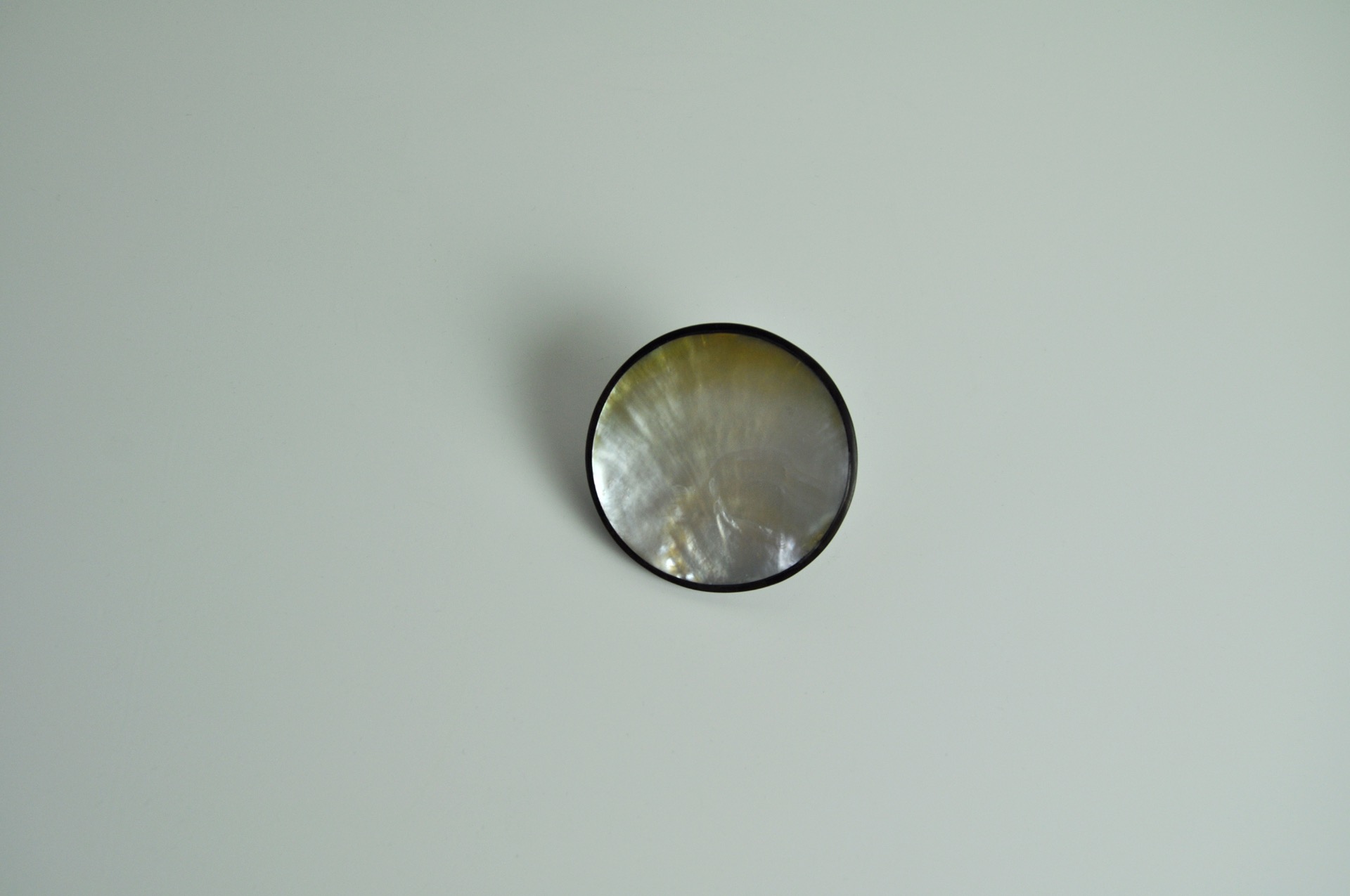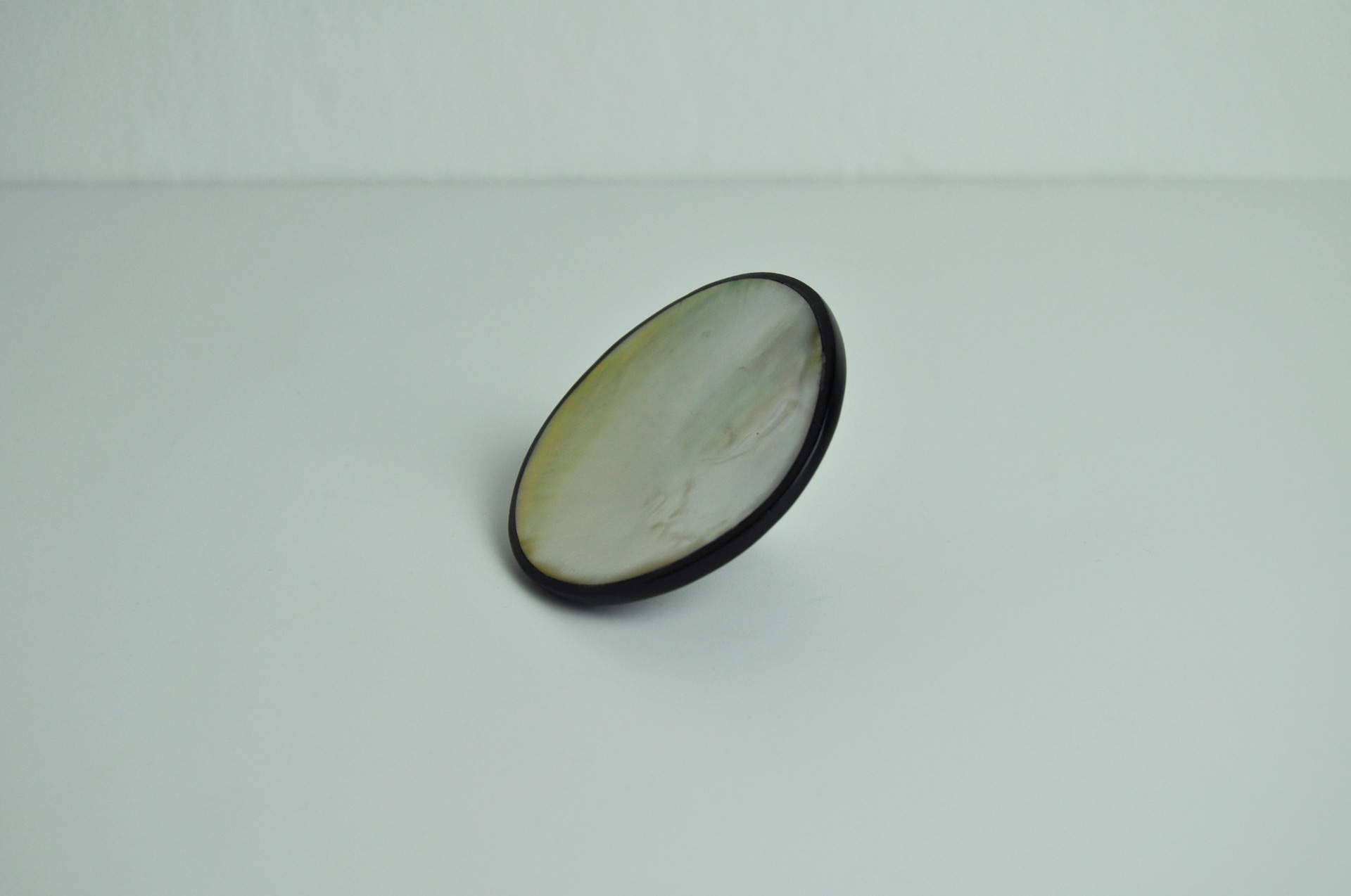 Monies large sculptural black ring made in ebony and mother of pearl, Denmark