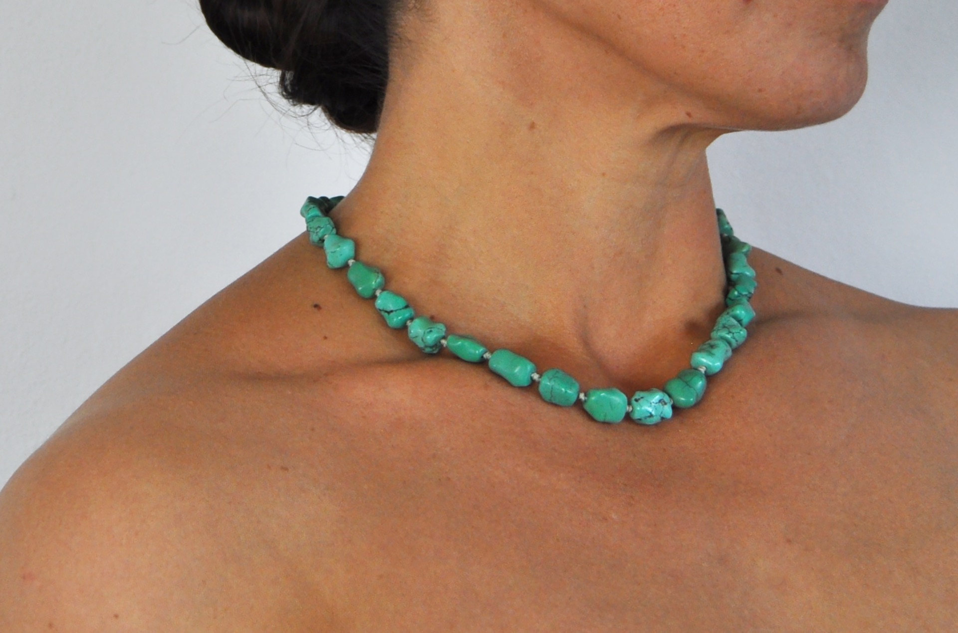 VINTAGE NECKLACE WITH GENUINE TURQUOISE AND STERLING SILVER BY ERIK POUL FENSTER, DENMARK