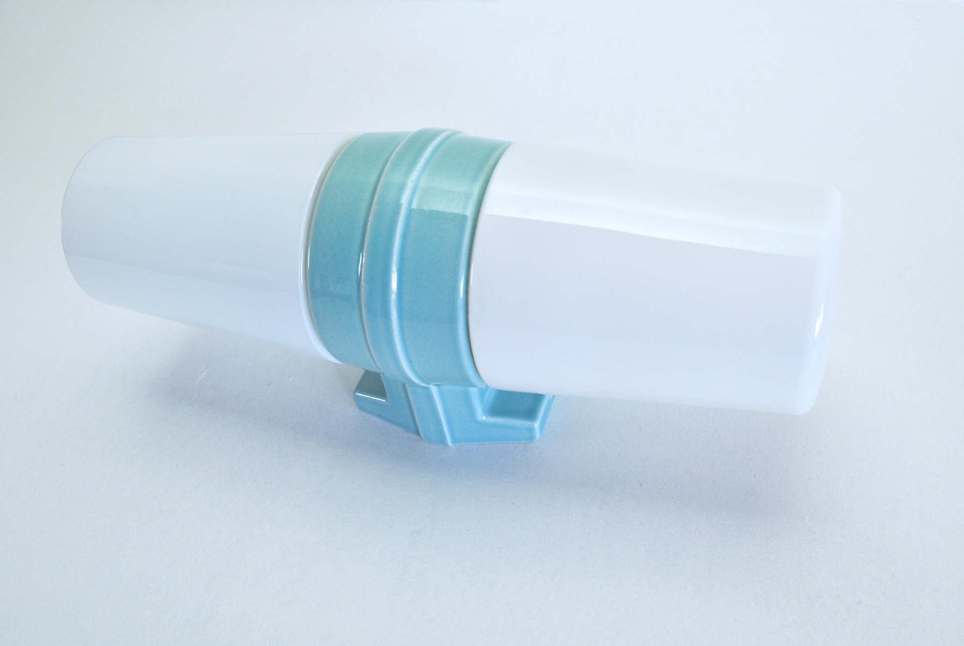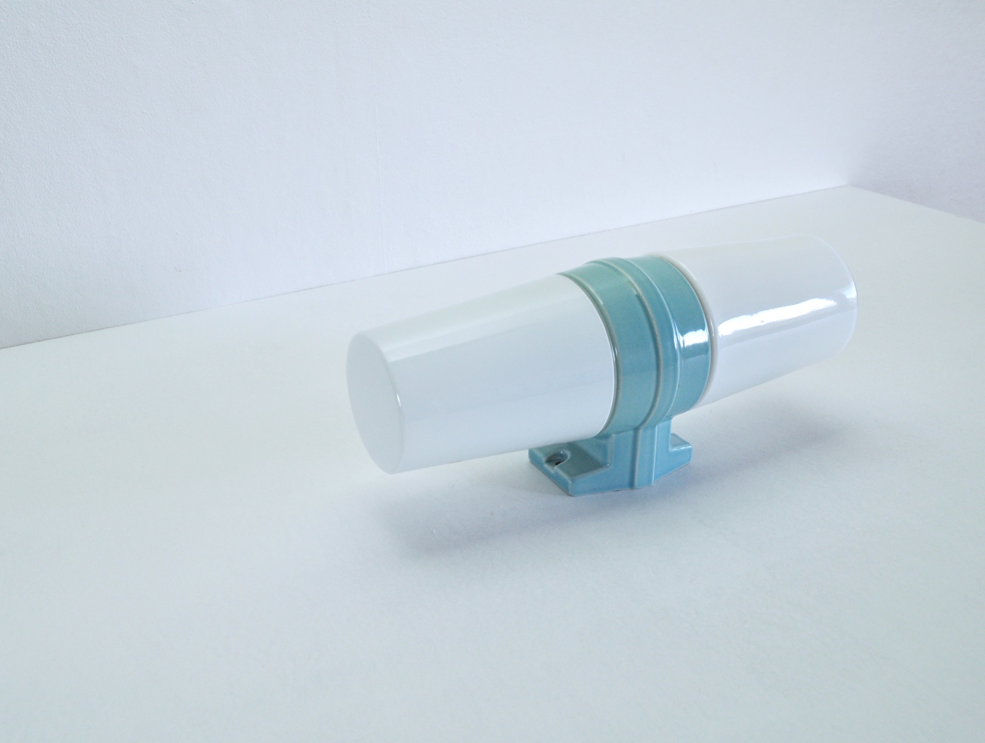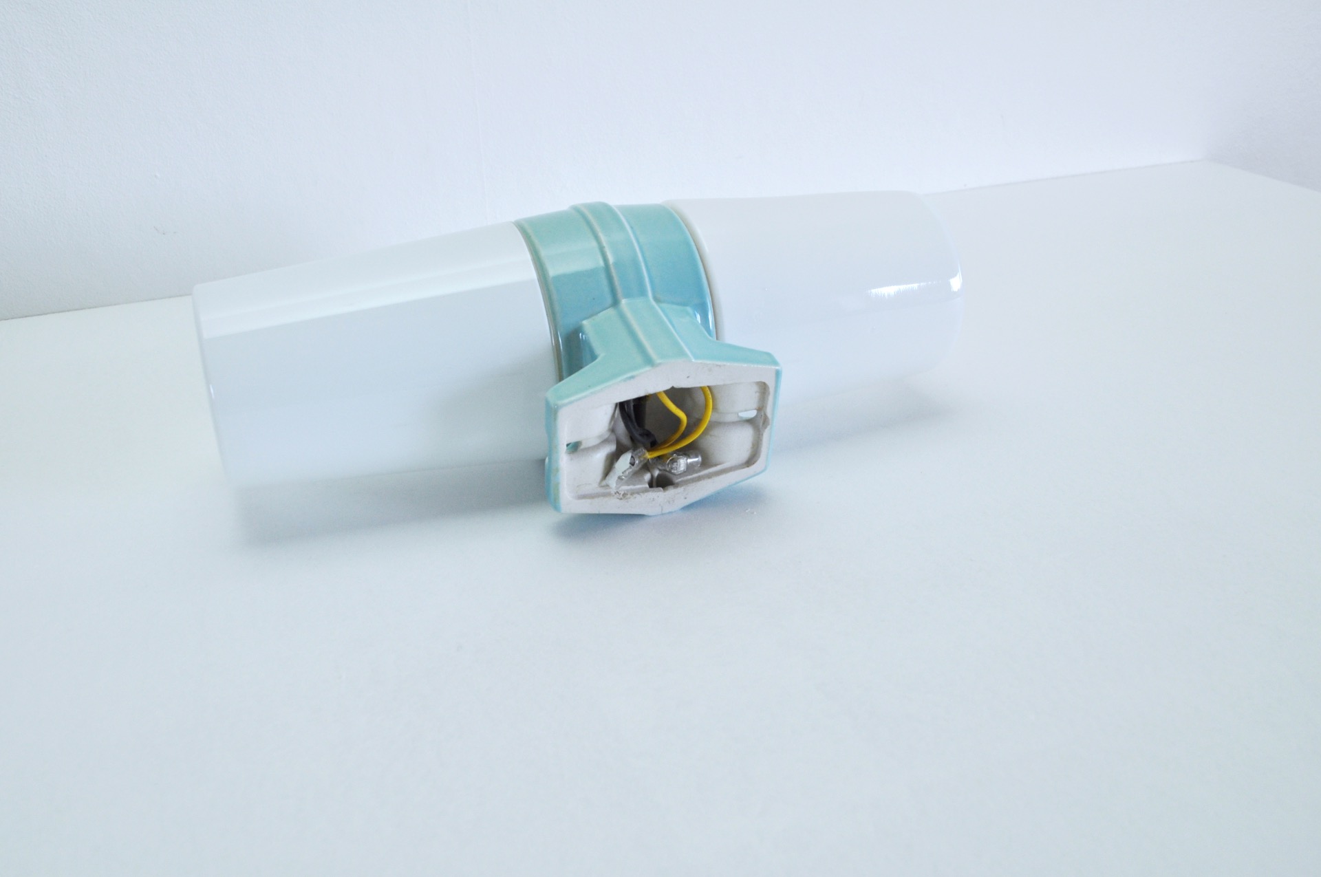 A large Scandinavian Modern turquoise glazed porcelain combined with two milky white opaline glass design by Sigvard Bernadotte for IFÖ, Sweden 1960s.