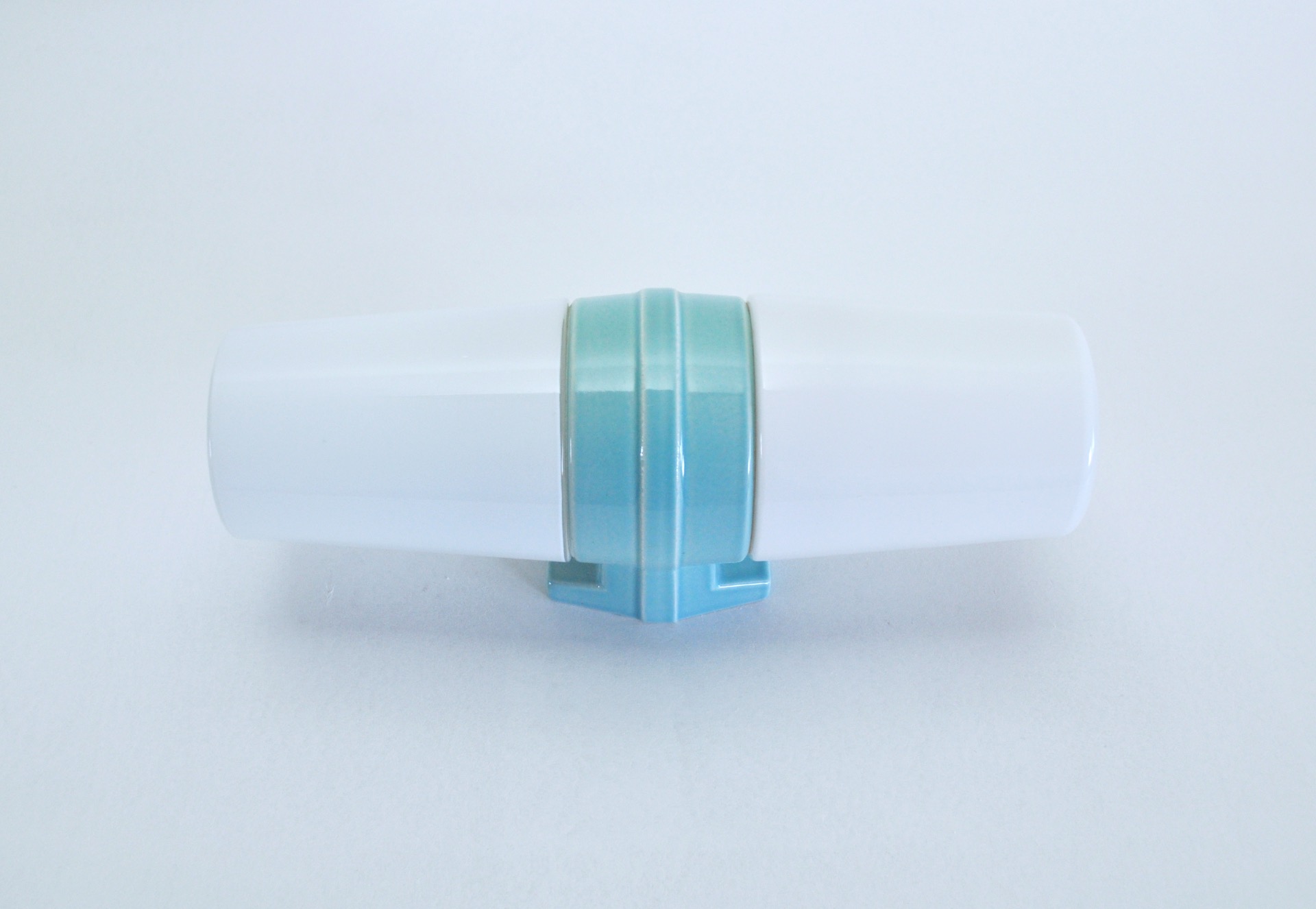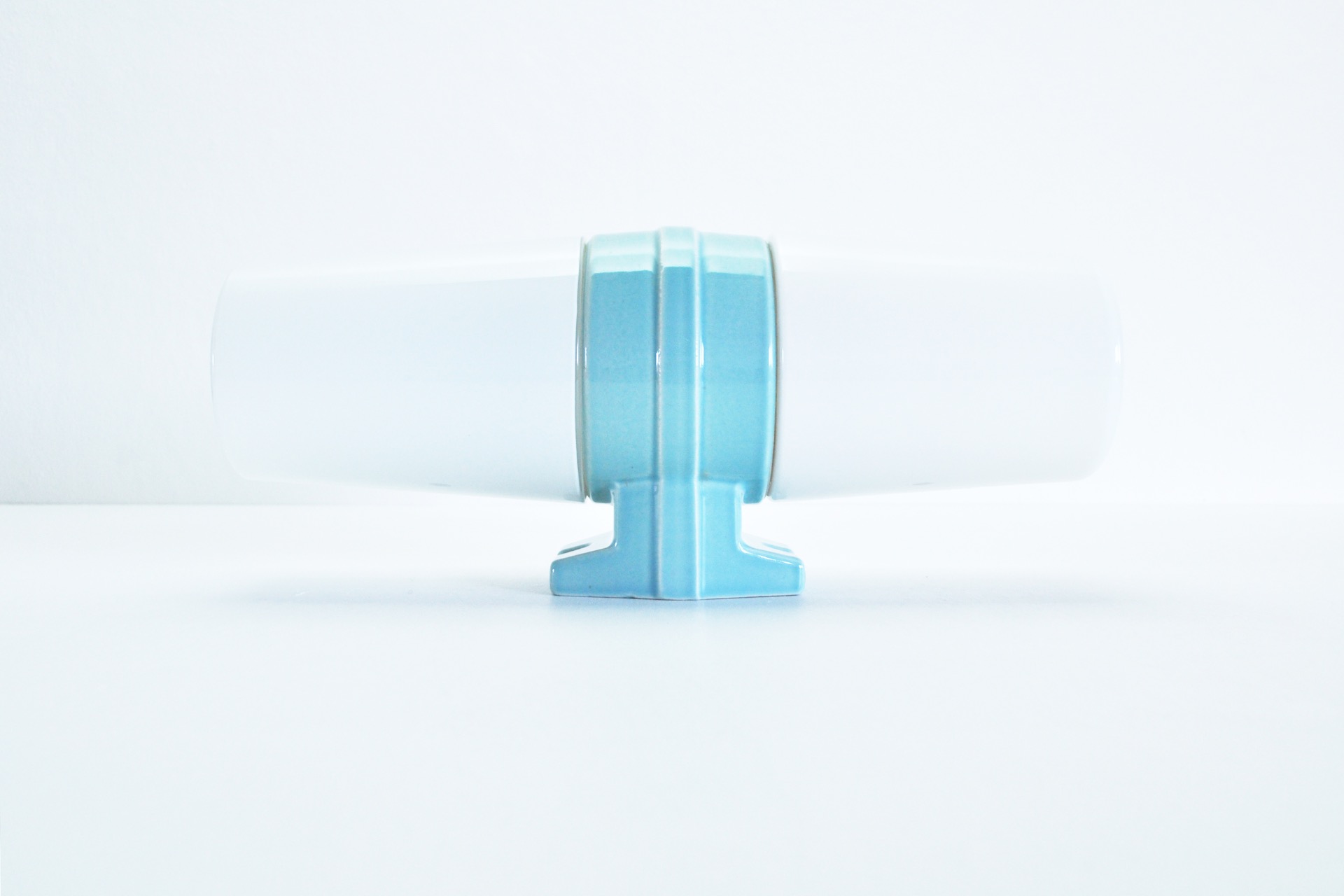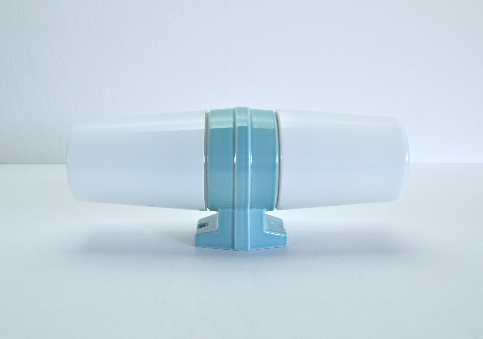 A large Scandinavian Modern turquoise glazed porcelain combined with two milky white opaline glass design by Sigvard Bernadotte for IFÖ, Sweden 1960s.