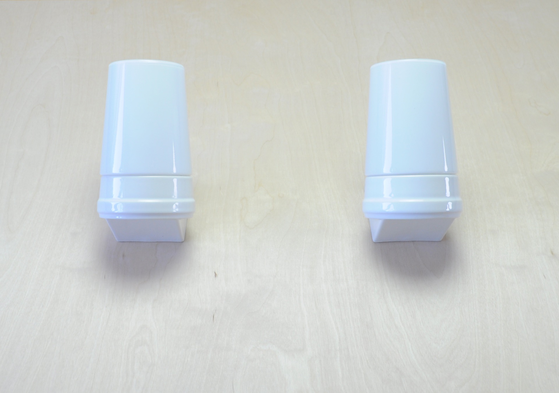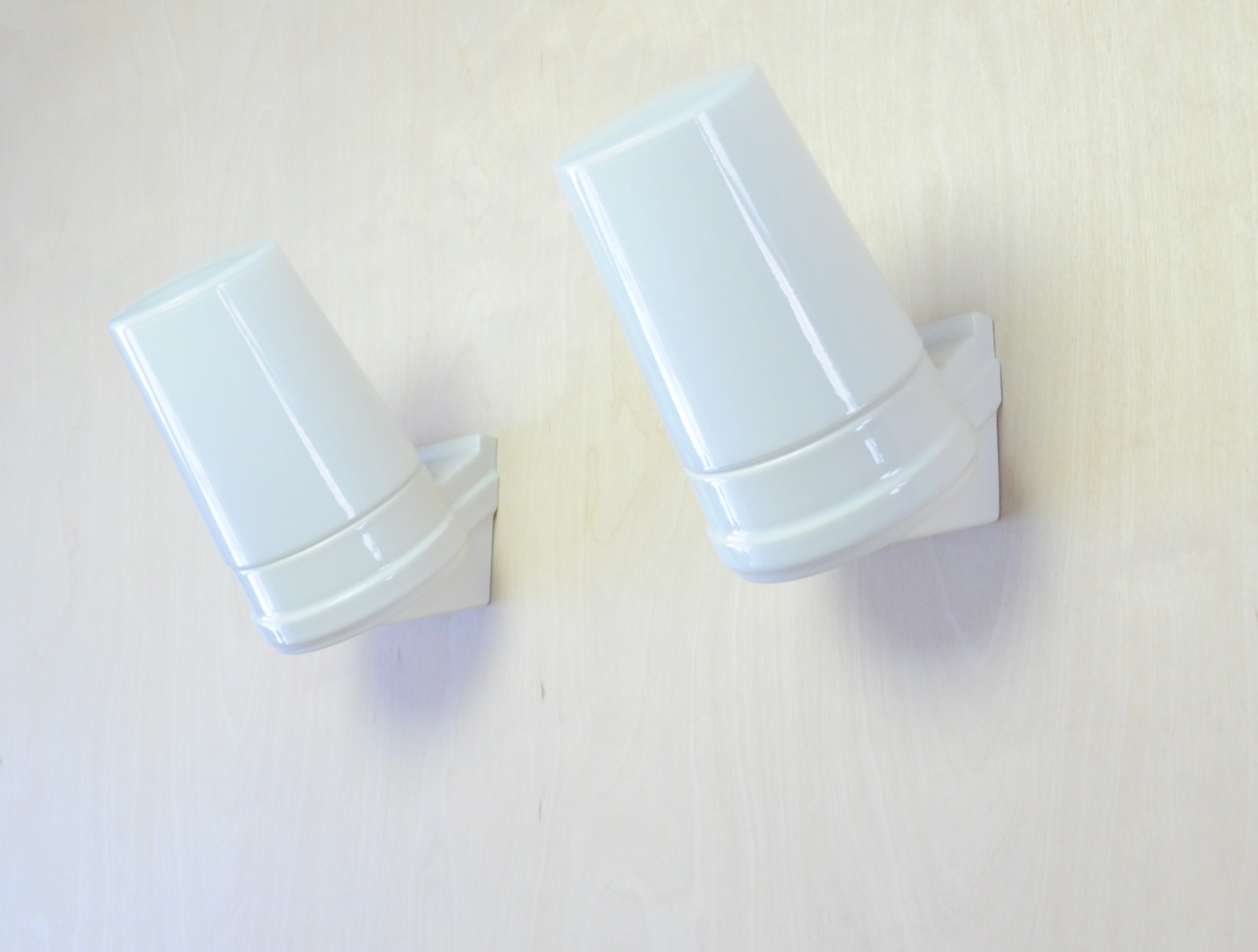 Set of 2 large Scandinavian Modern white glazed porcelain combined with two milky white opaline glass design by Sigvard Bernadotte for IFÖ, Sweden 1960s.