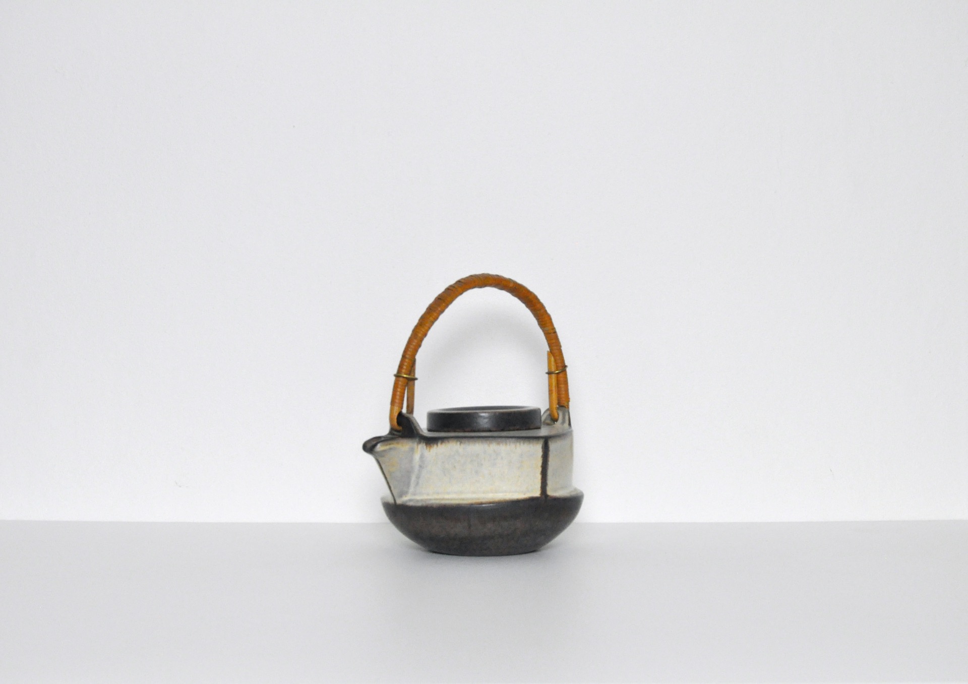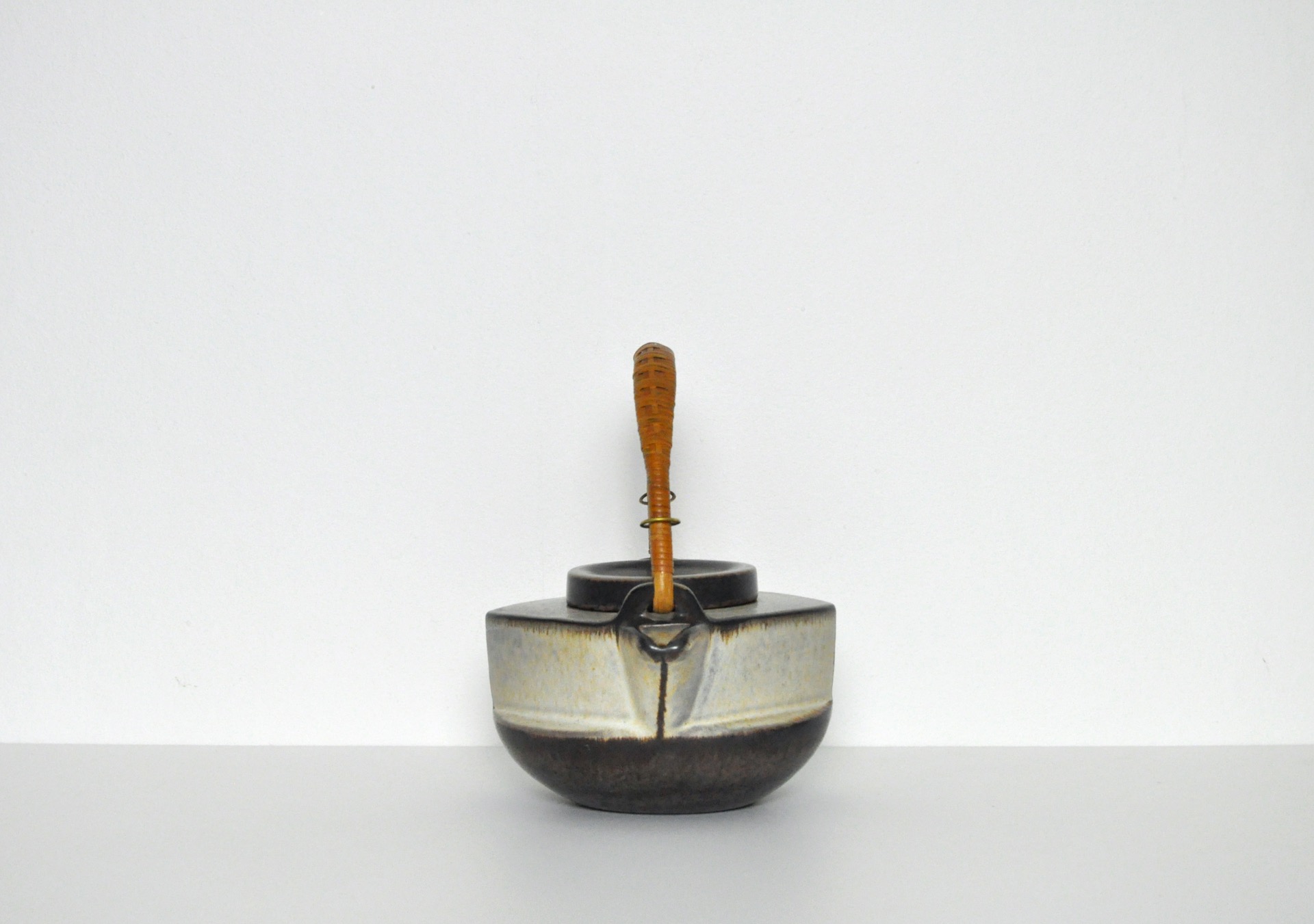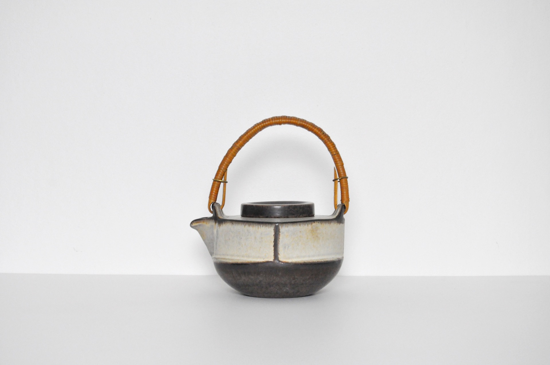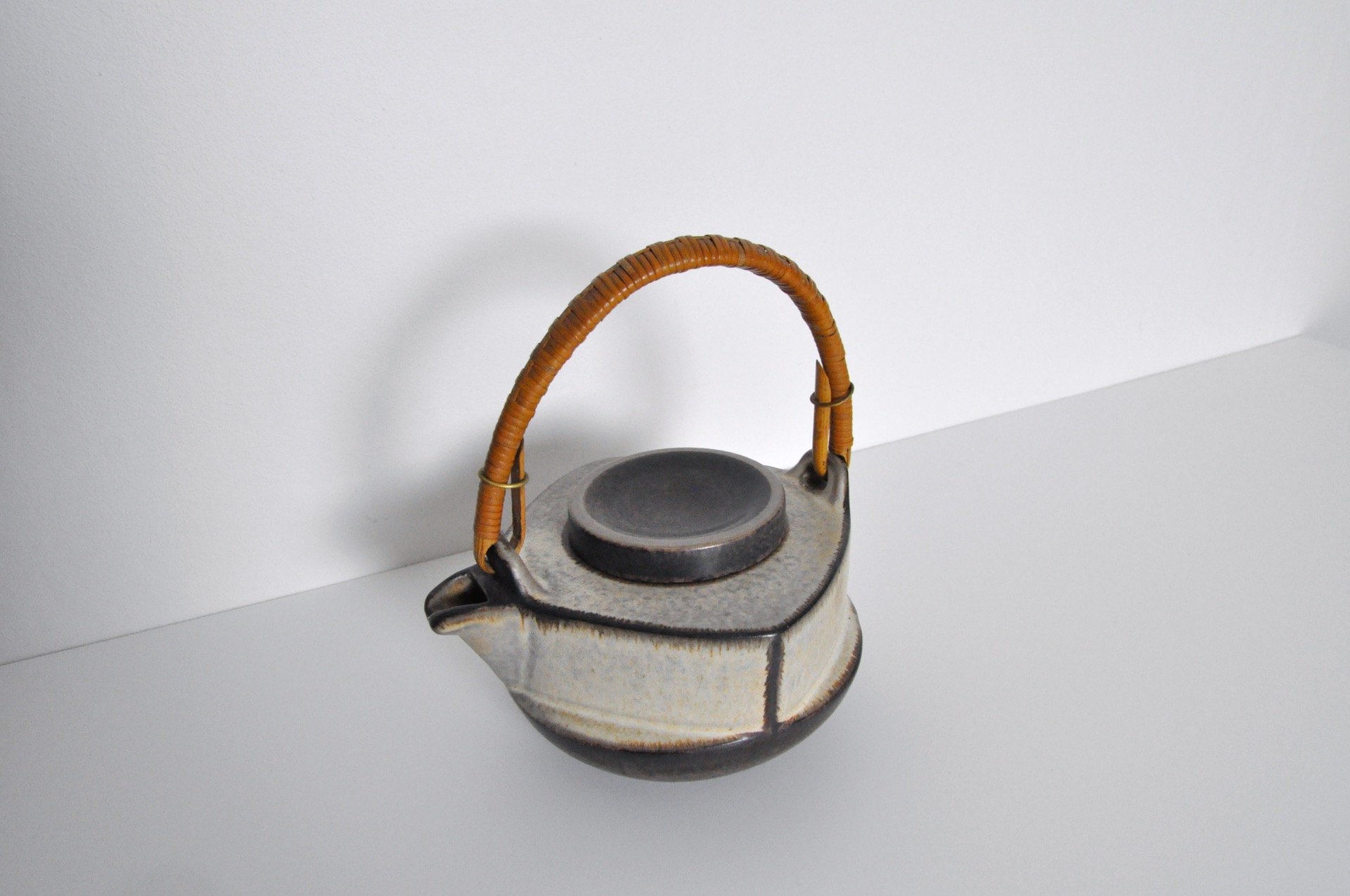 Ceramic teapot by Michael Andersen & Søn. Earth colored glazed stoneware and bamboo handle, Denmark 1960s