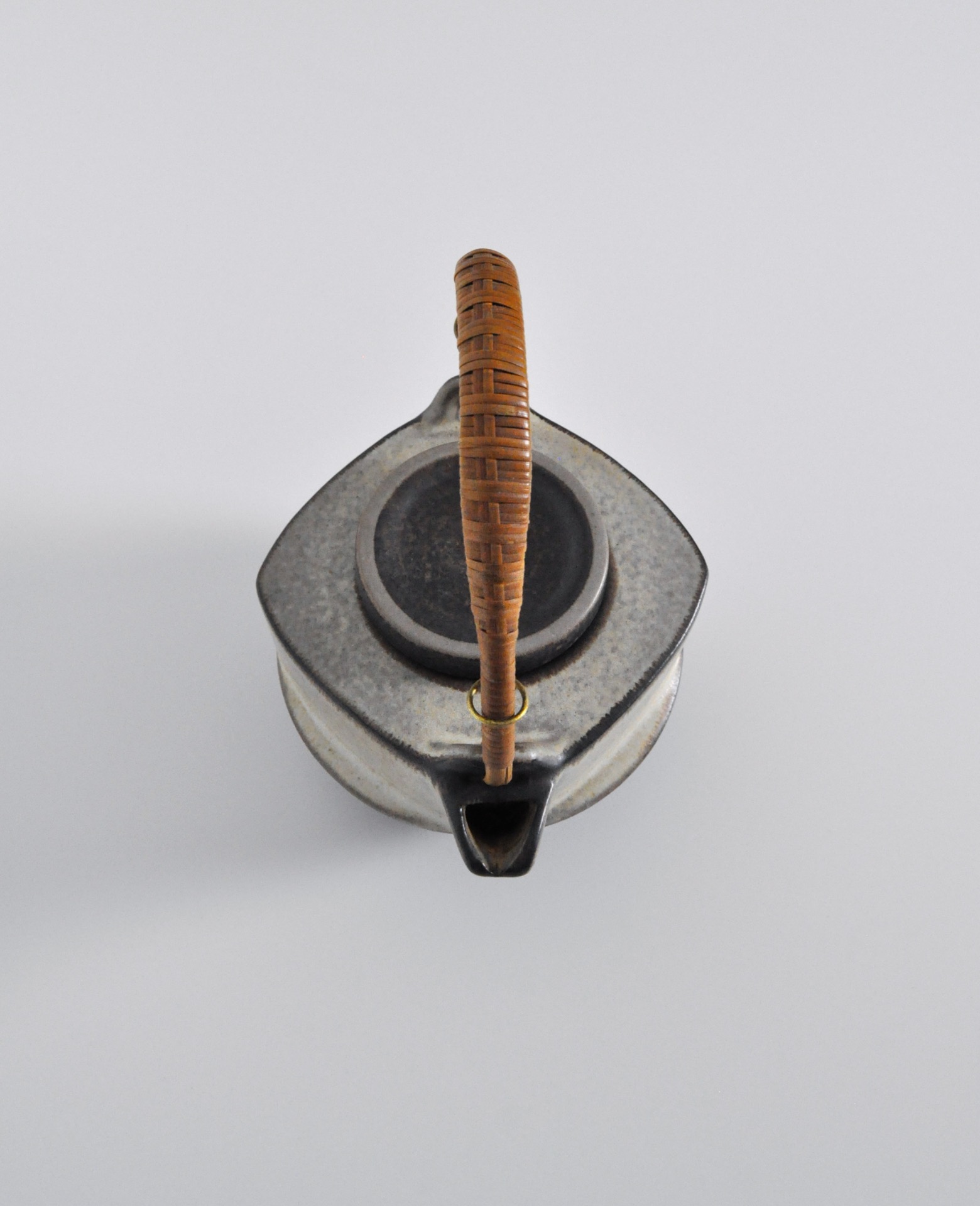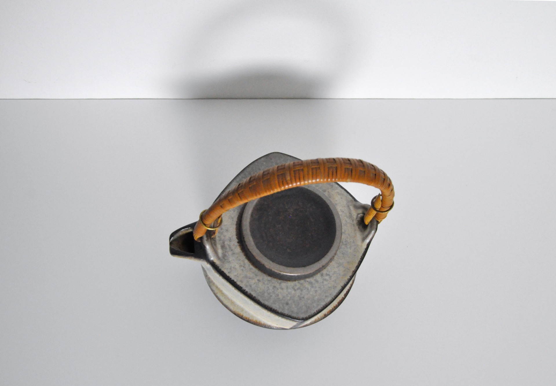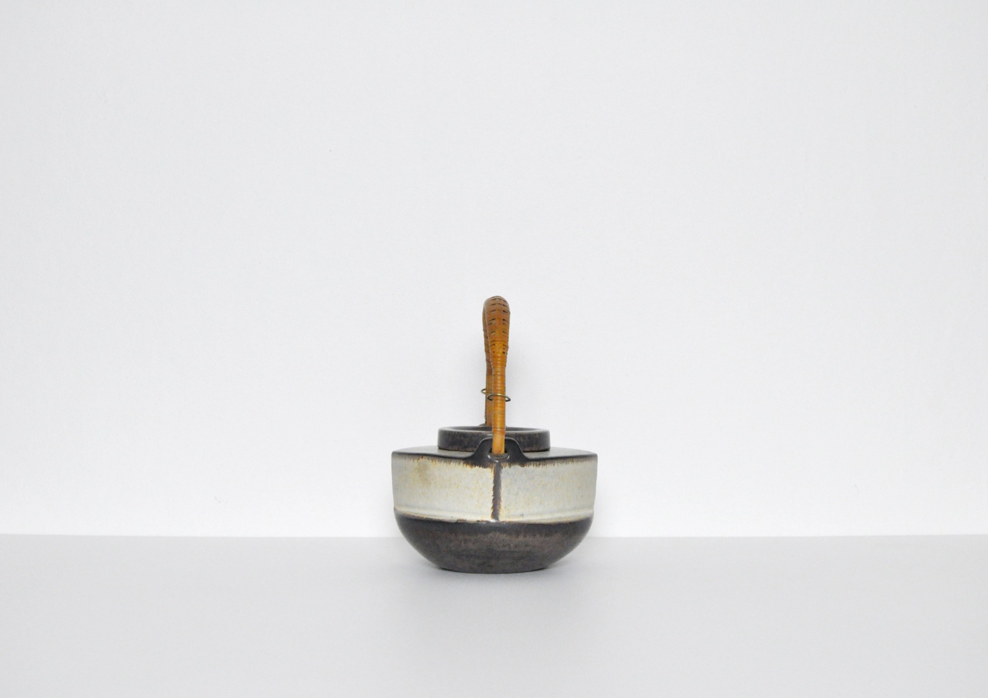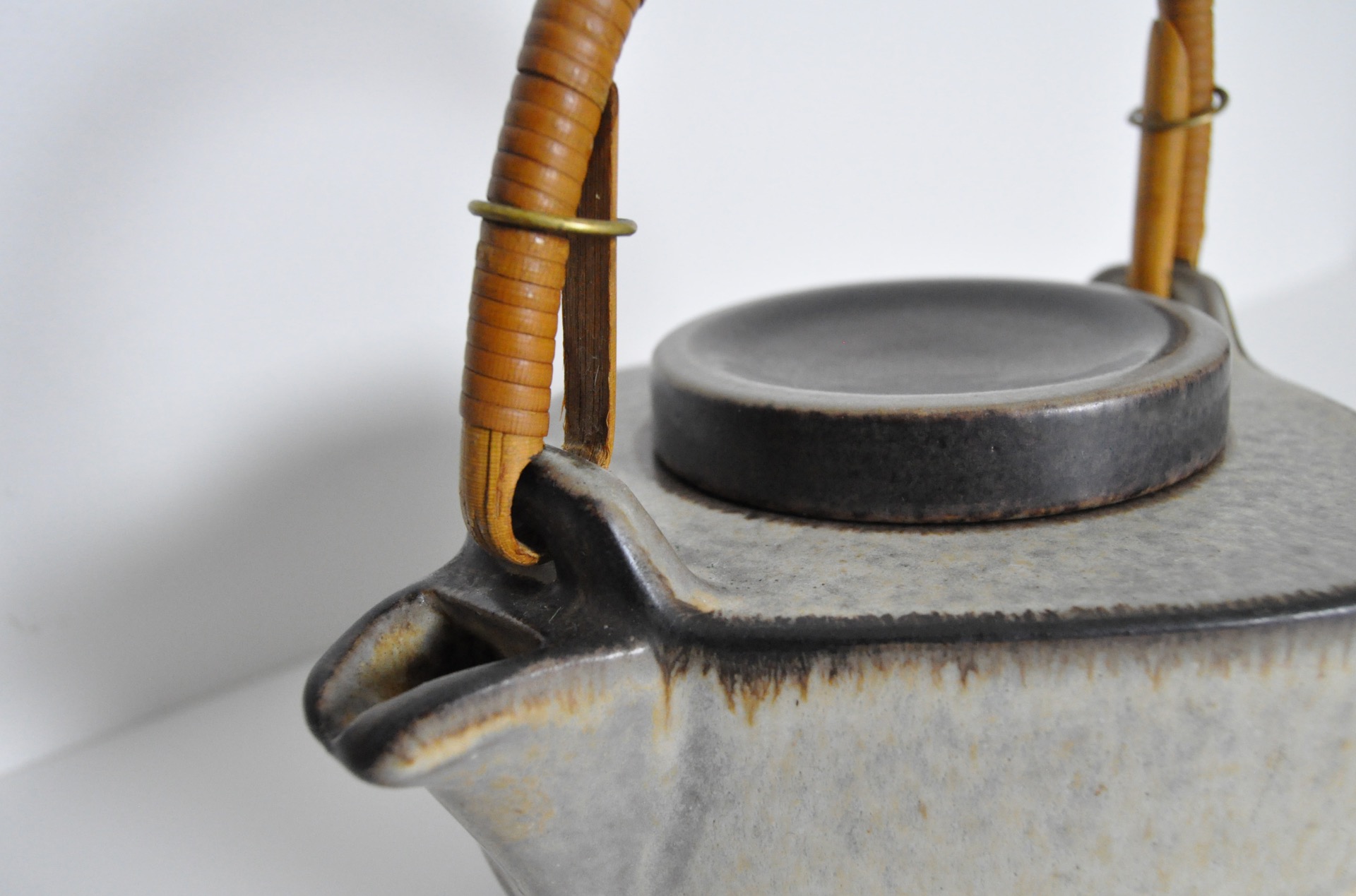 Ceramic teapot by Michael Andersen & Søn. Earth colored glazed stoneware and bamboo handle, Denmark 1960s