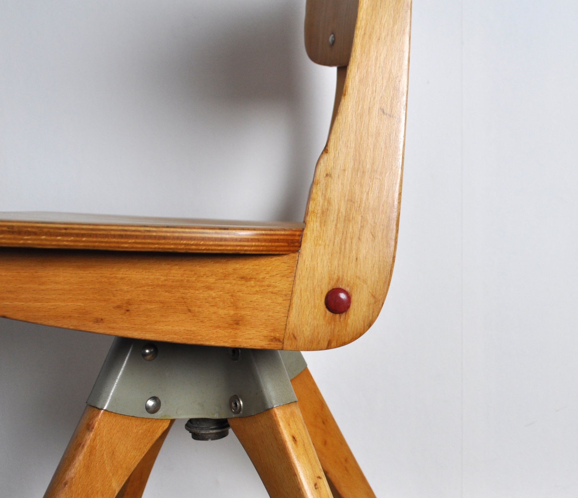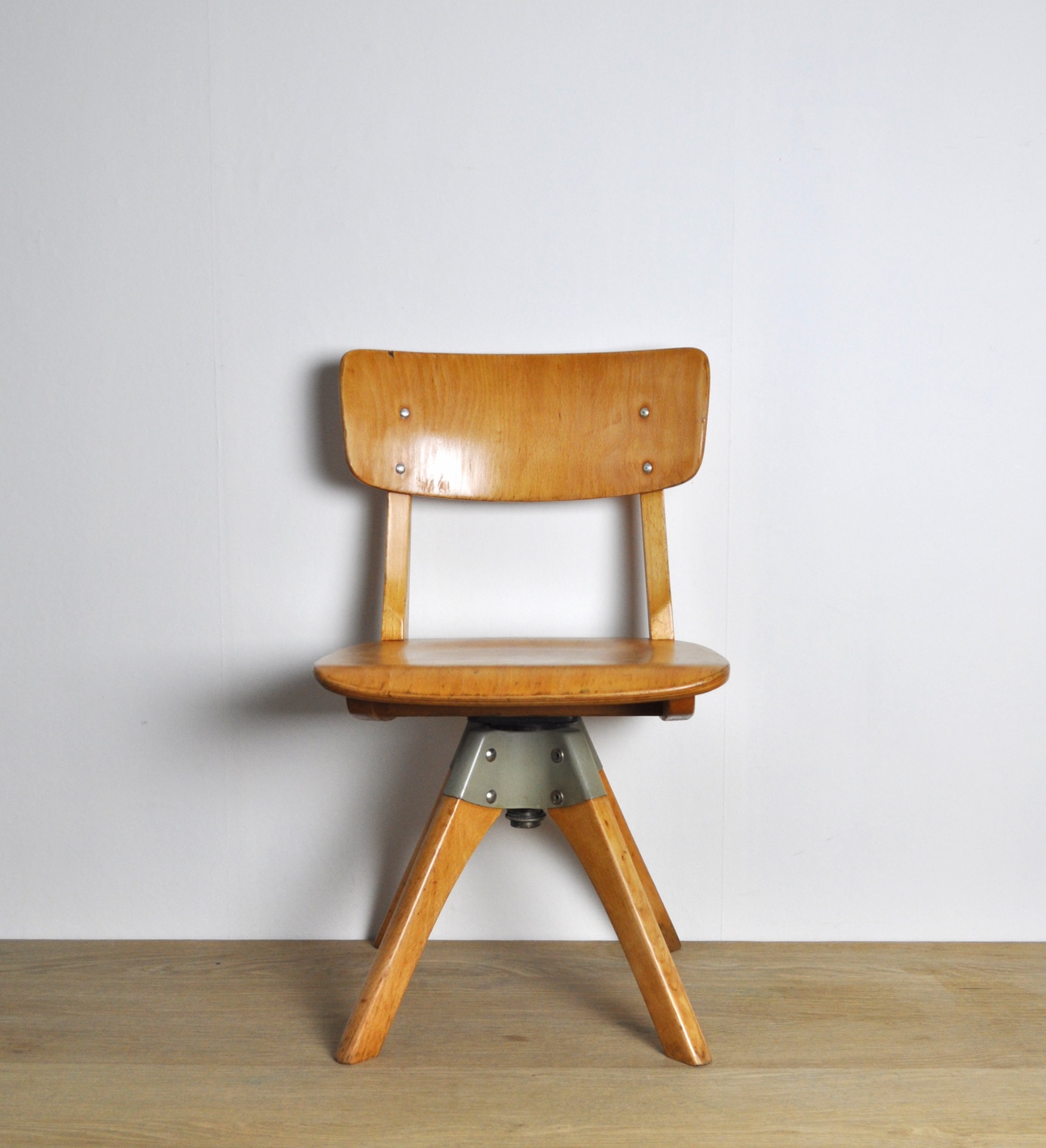 Patinated Casala wood childrens swivel chair, Germany 1970s.