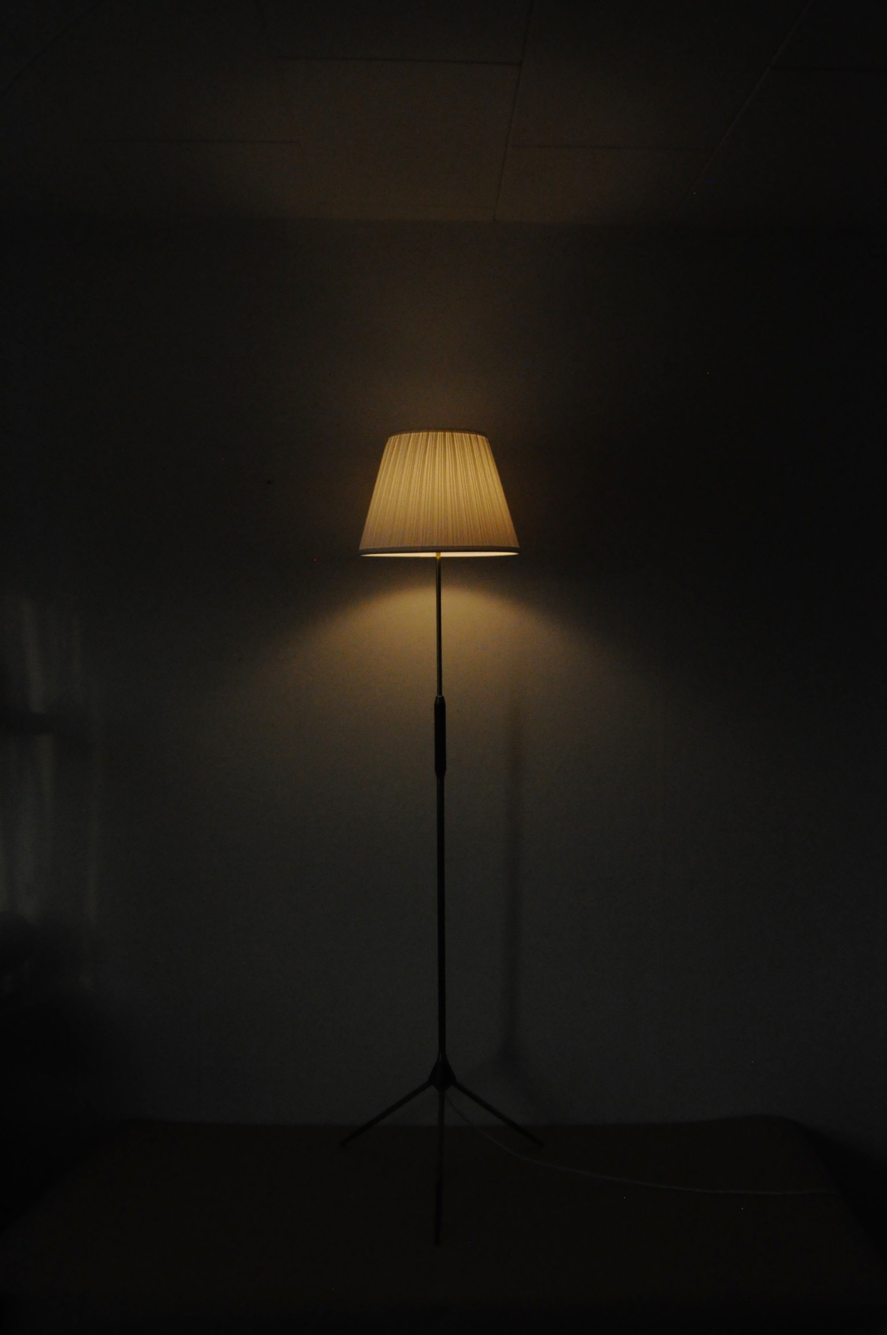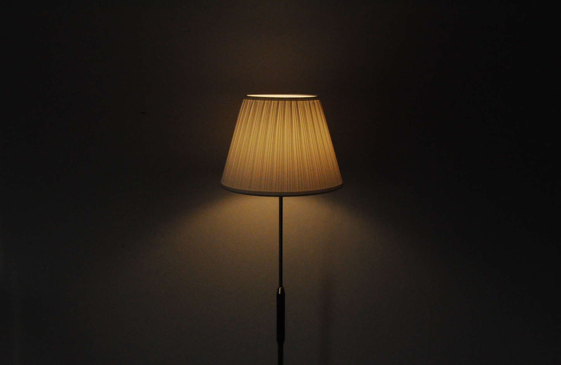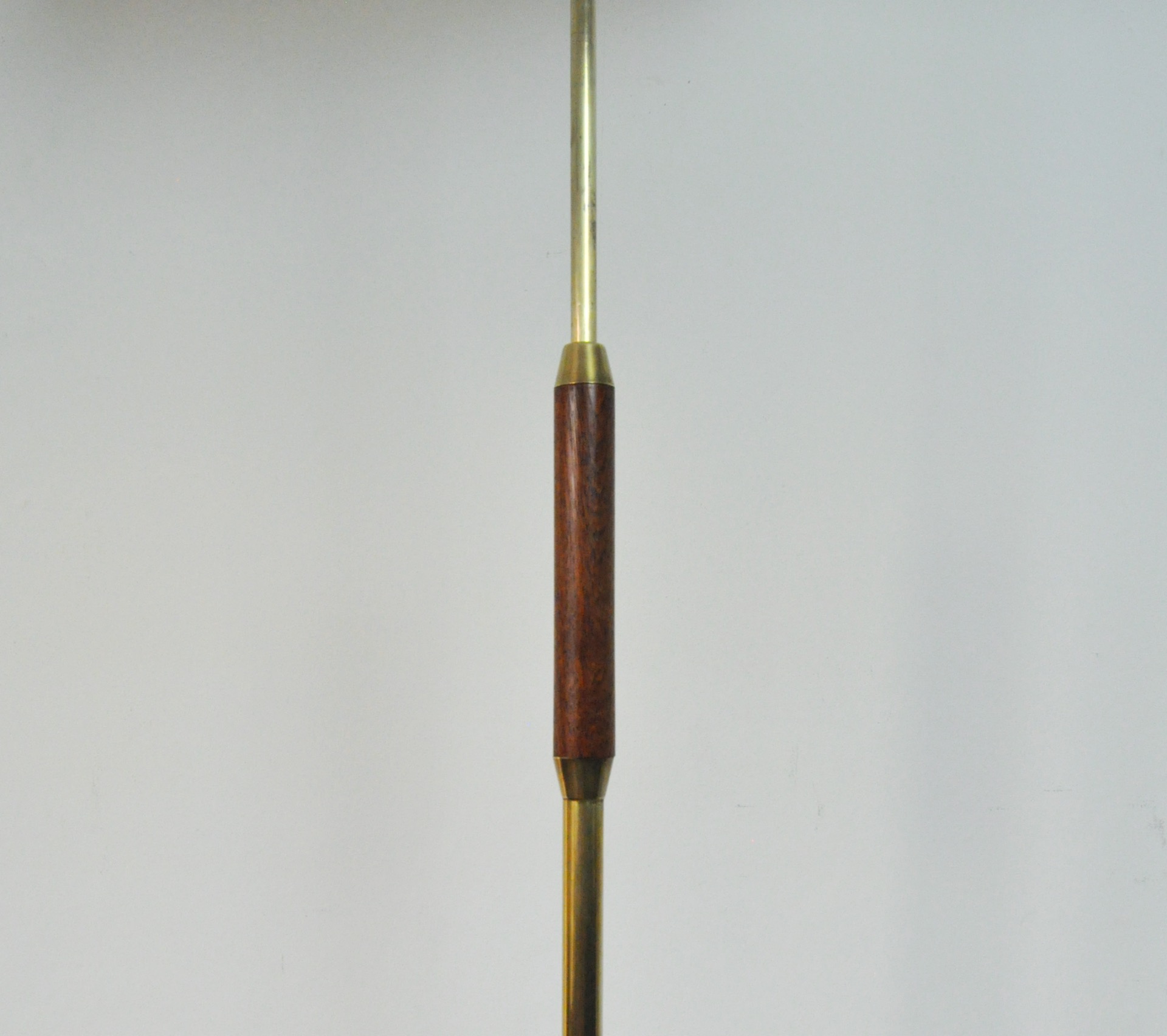 MID-CENTURY MODERN TRIPOD FLOOR LAMP IN BRASS AND TEAK