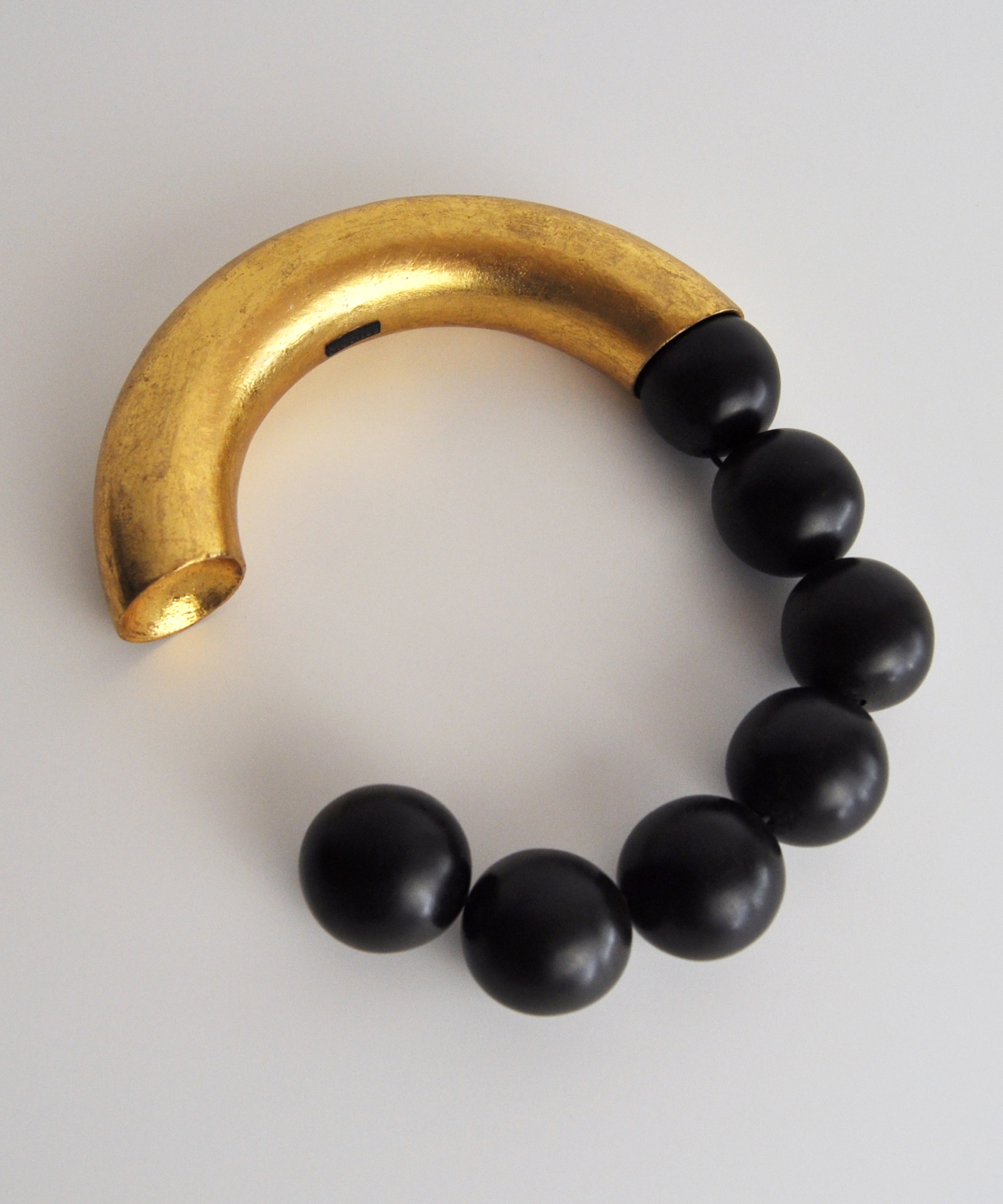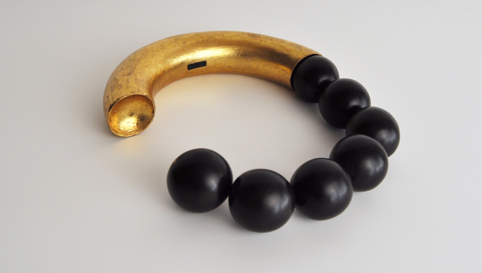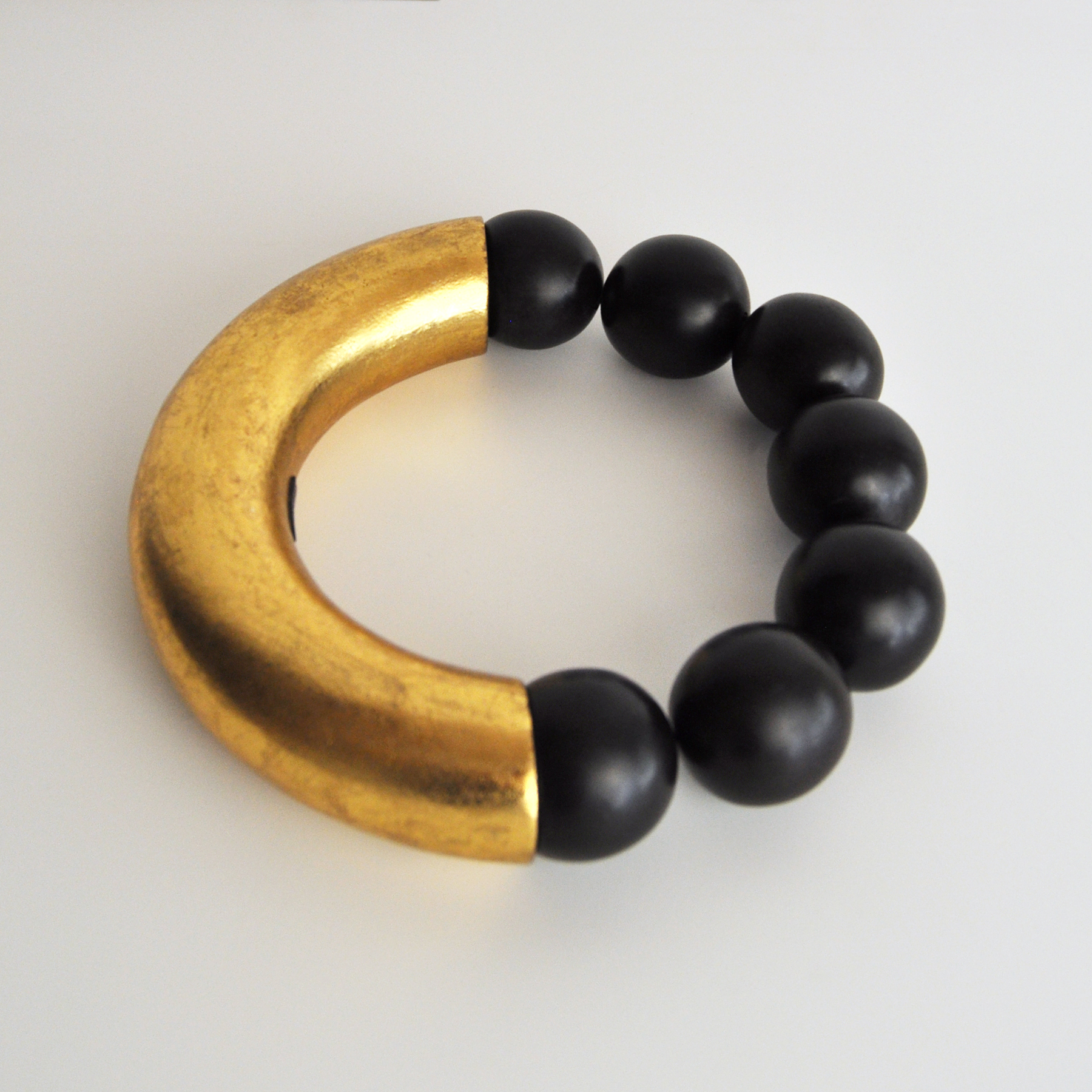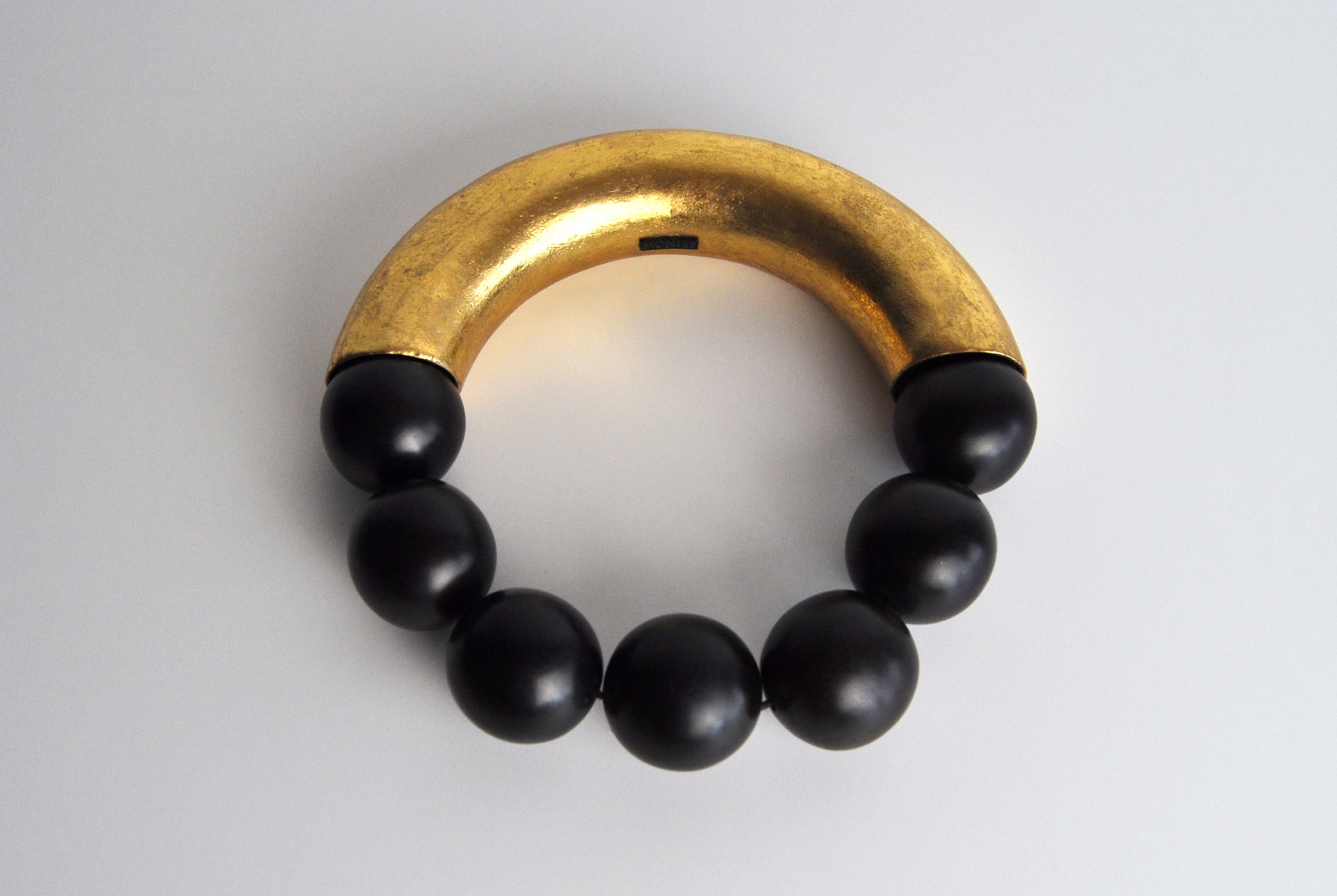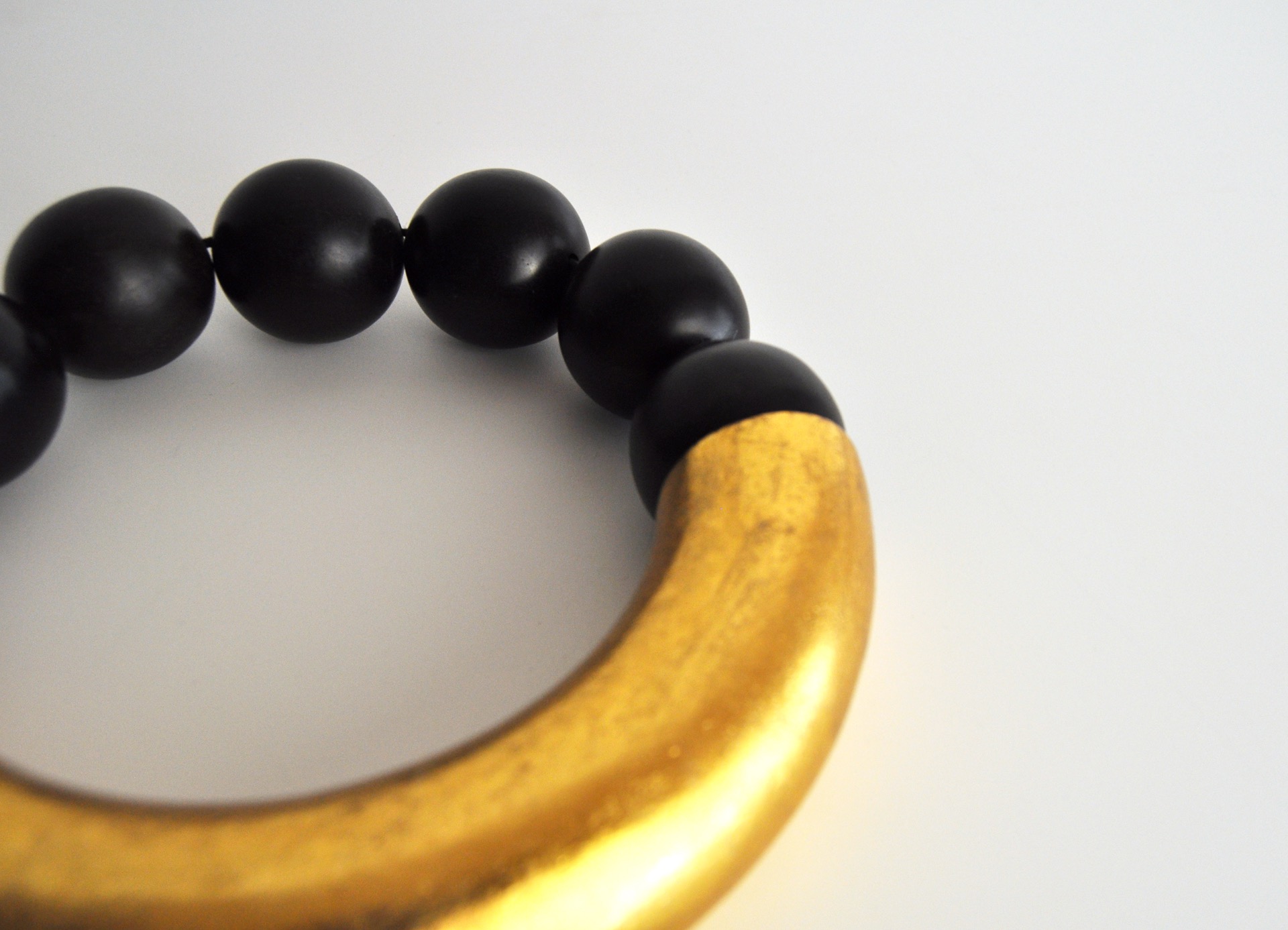 Monies large goldfoil and black acacia necklace, Denmark. The necklace features a magnetic lock.