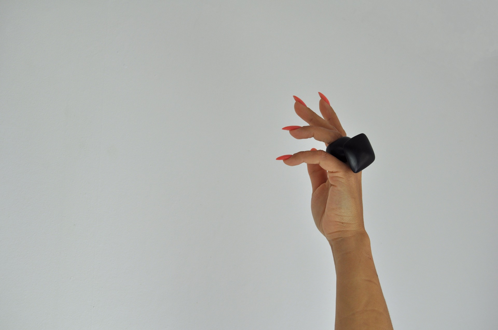 MONIES LARGE SCULPTUREL BLANCK RING MADE IN EBONY, DENMARK