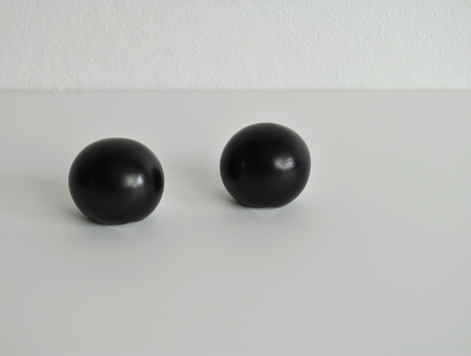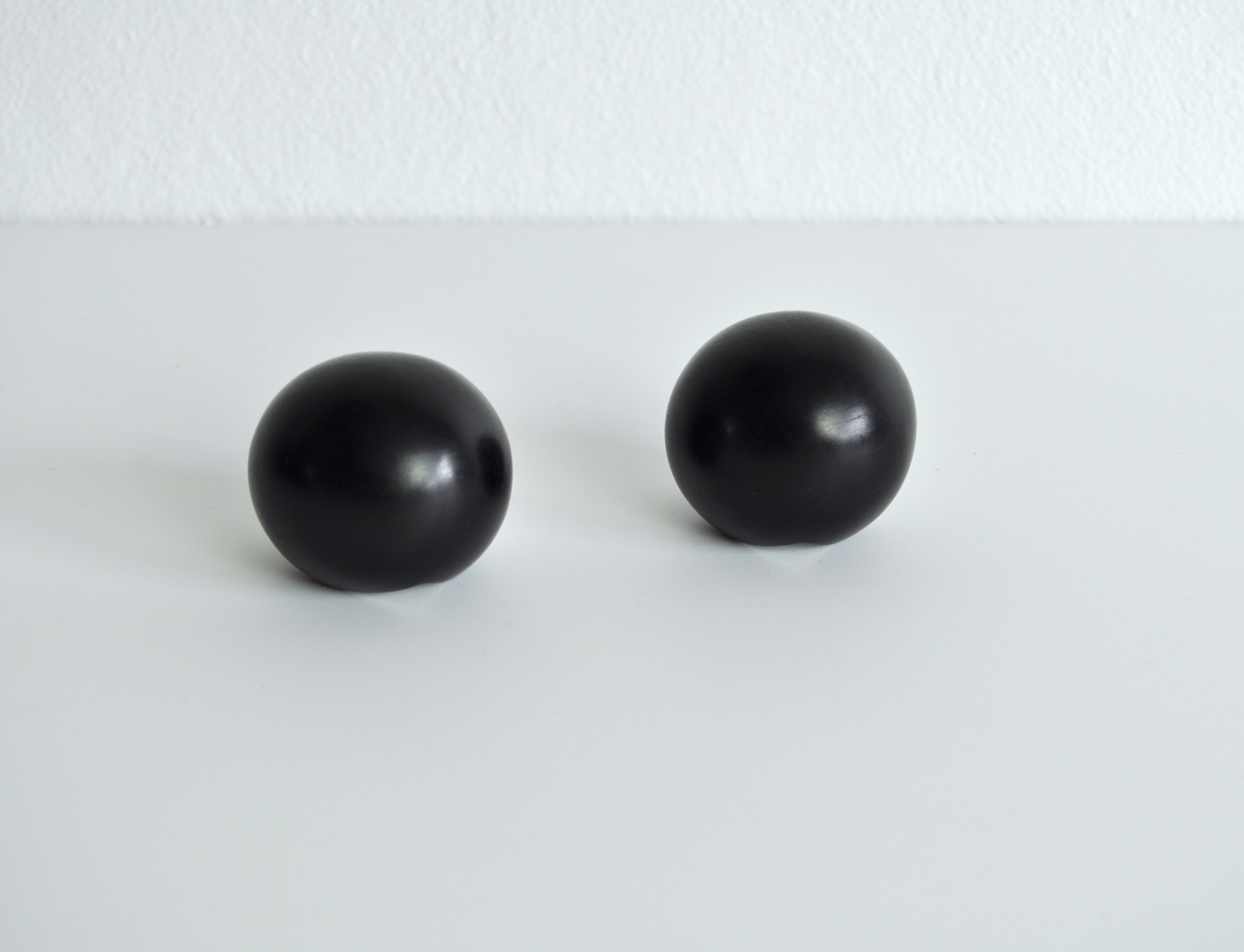 Large and sculptural black spherical shaped ear-clips made in ebony by Monies, Denmark. Set of 2.