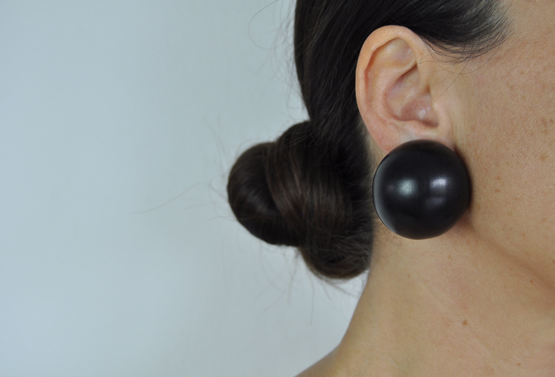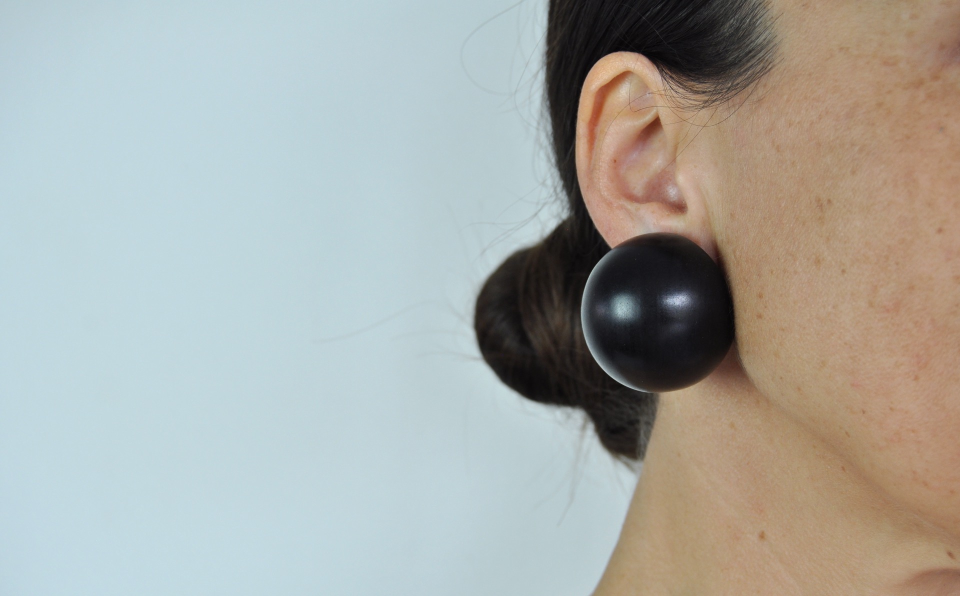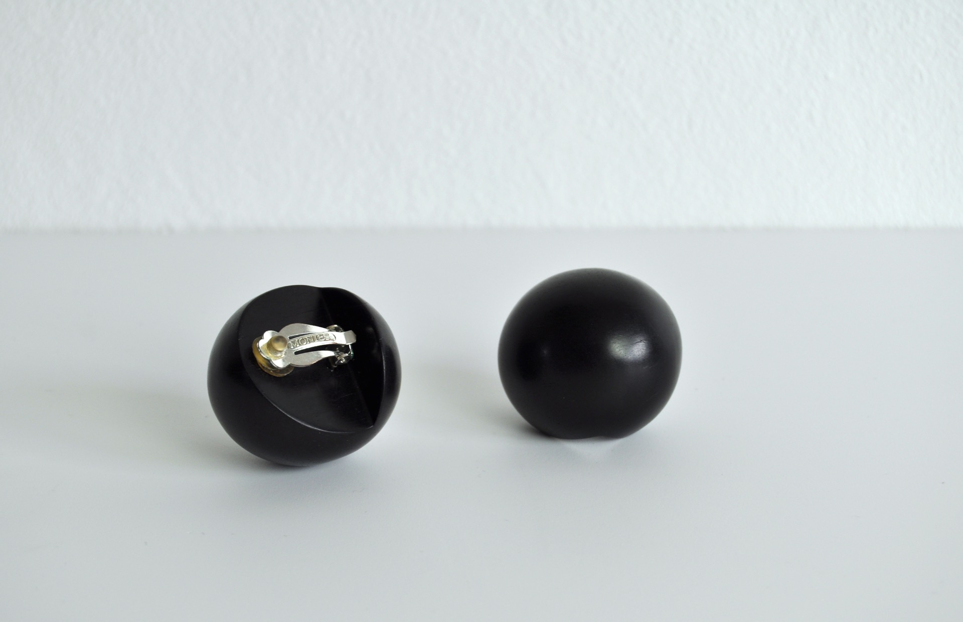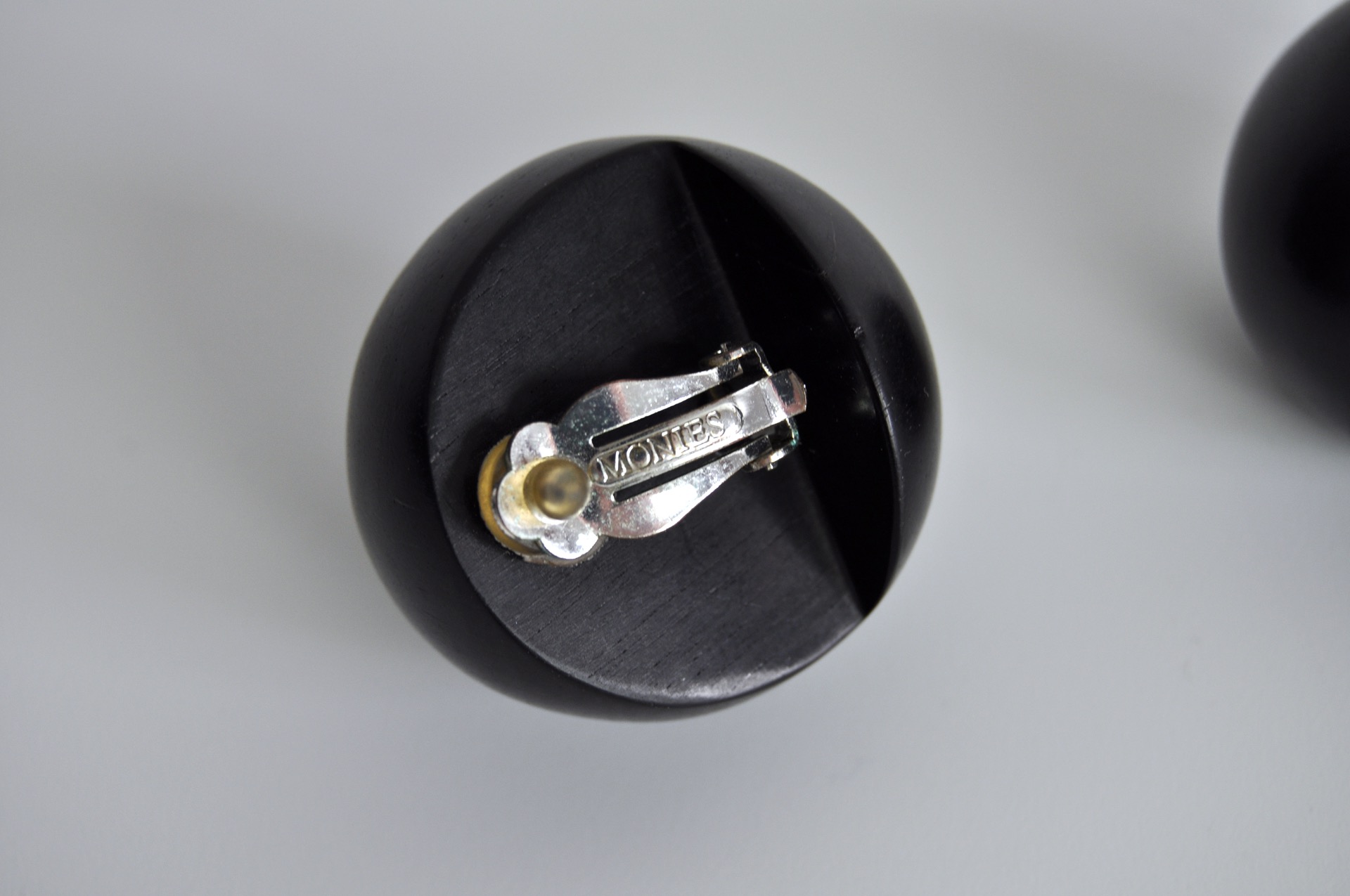 MONIES SPHERICAL SHAPE BLACK EAR-CLIPS MADE IN EBONY, DENMARK