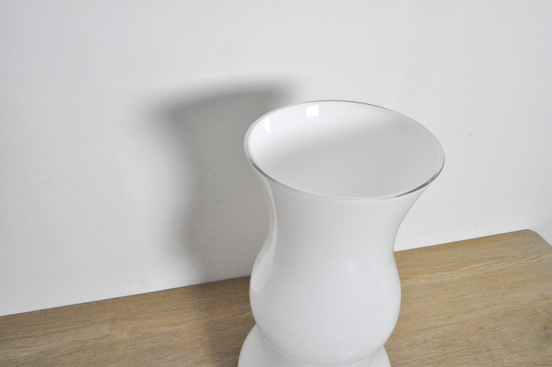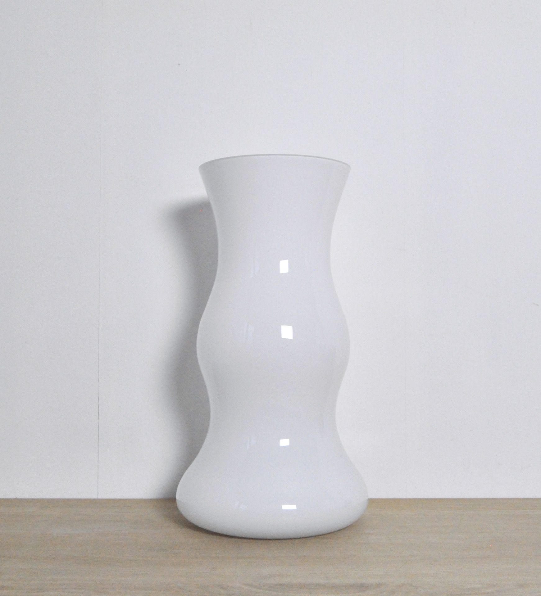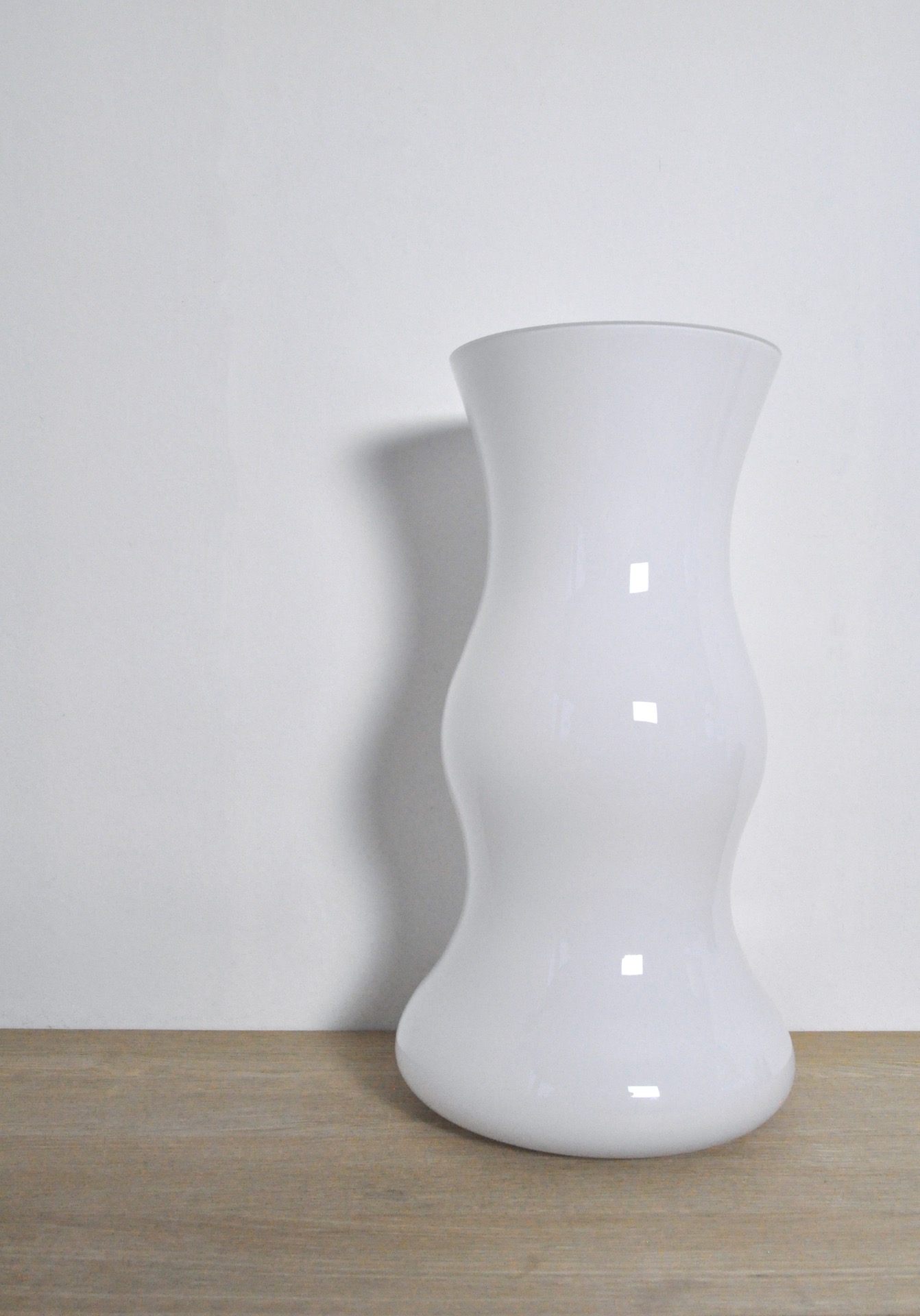 MOUTH BLOWN HOLMEGAARD LARGE WHITE GLASS FLOOR VASE BY ERIK BAGGER