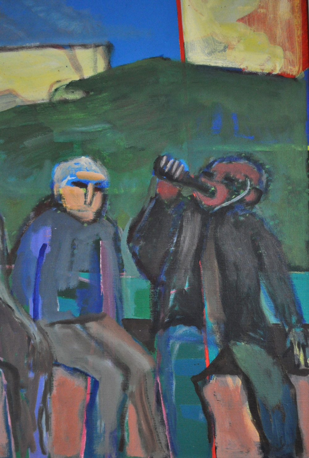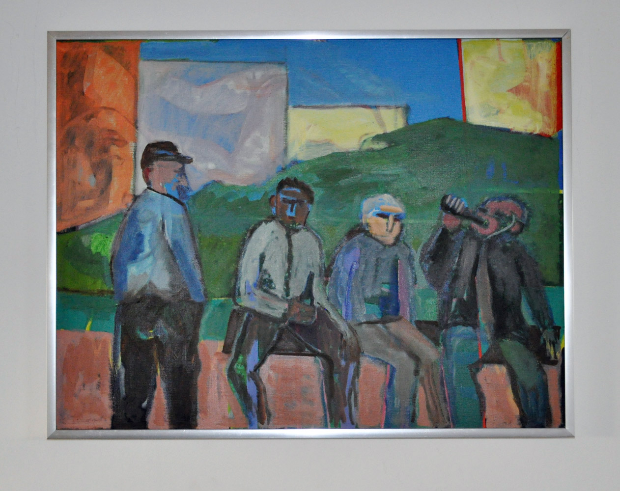 This painting is from his later years, when his style began to be akin to Pop art, with well-defined planes of color and simplified, symbol-like characters.