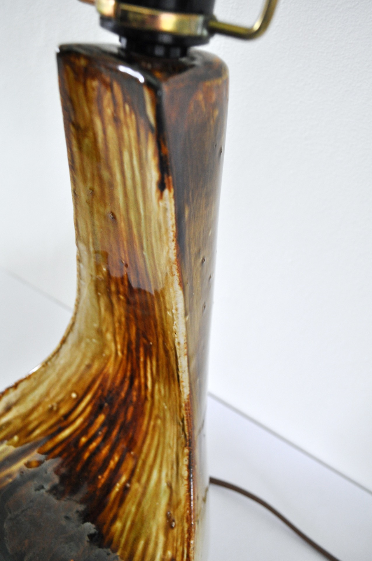 Organic shaped table lamp by Axella Stentøj in warm brown colors giving it an earthy appearance. Labeled and signed by Axella, in an excellent condition.