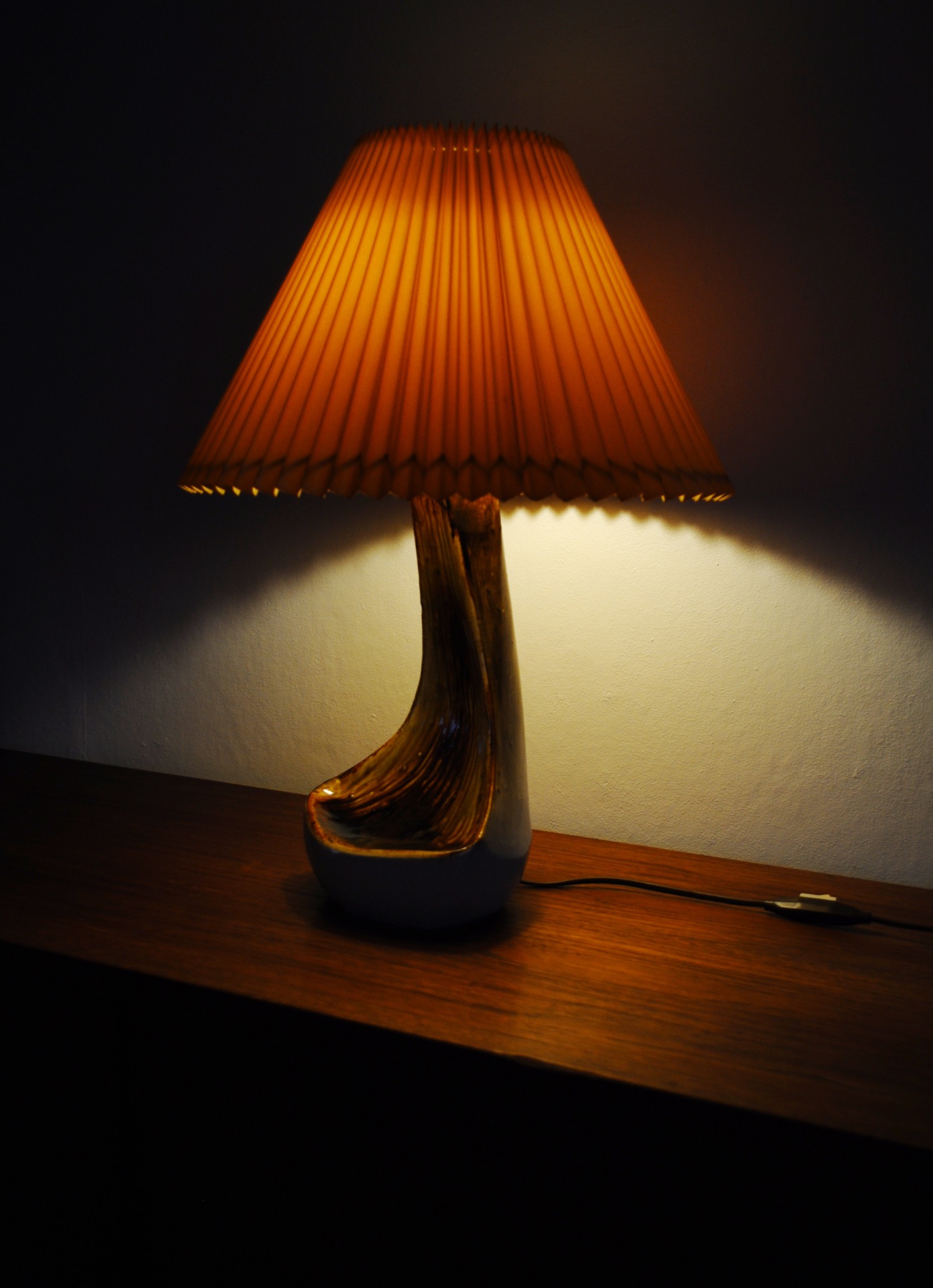 ORGANIC SHAPED TABLE LAMP BY AXELLA STENTØJ IN WARM BROWN COLORS, DENMARK 1970S