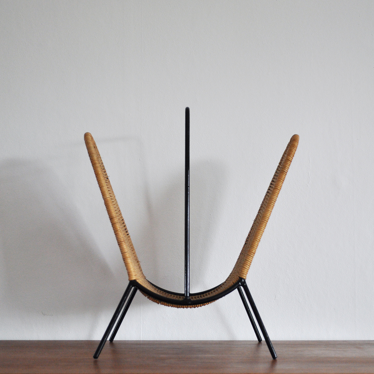 Danish Mid-Century Rattan Magazine Rack attributed to Carl Auböck, 1960s