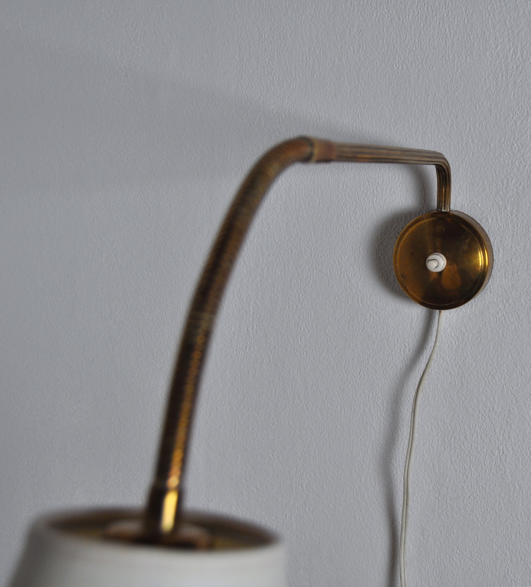 Scandinavian Modern Danish wall lamp with adjustable brass arm.