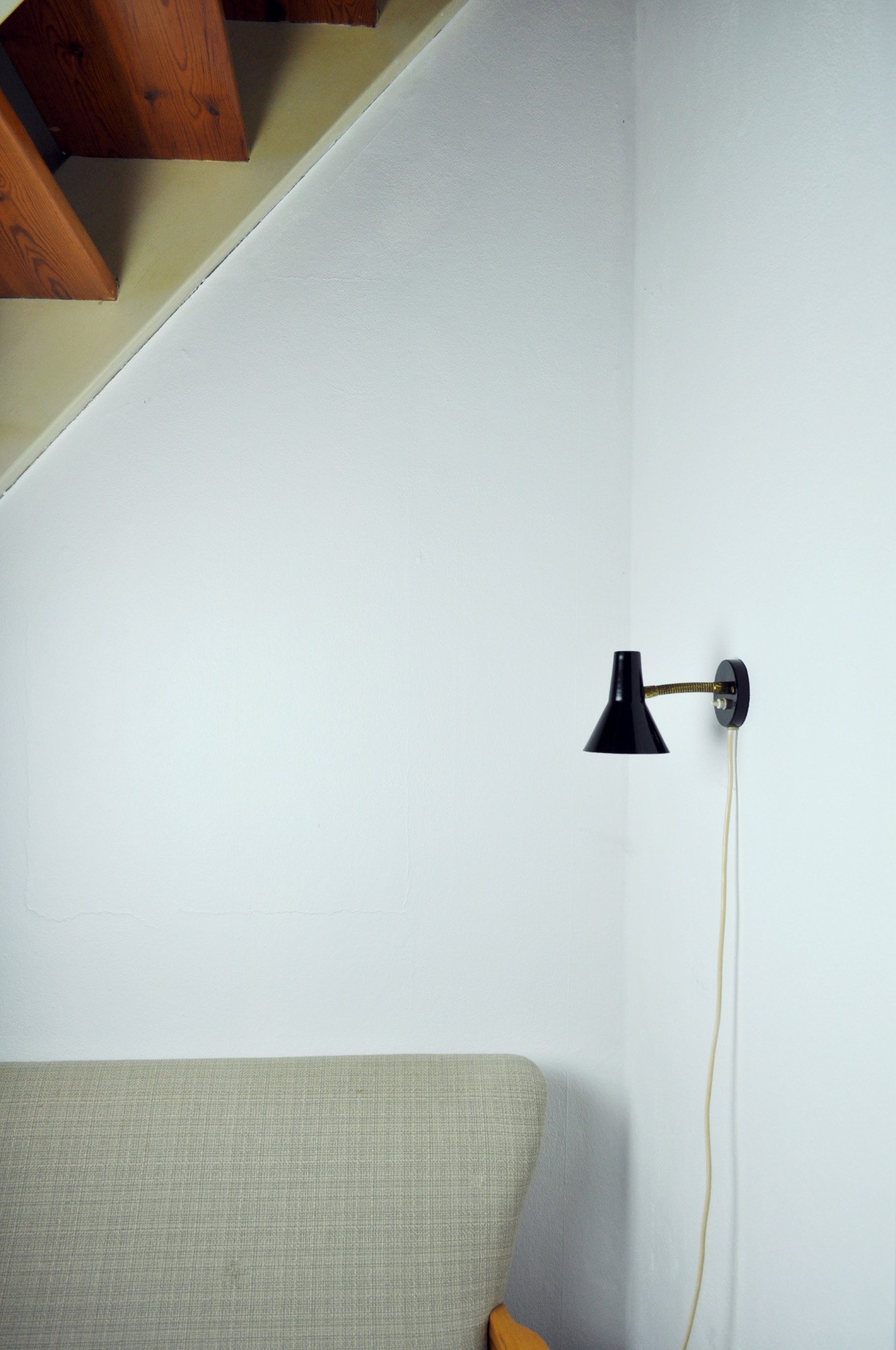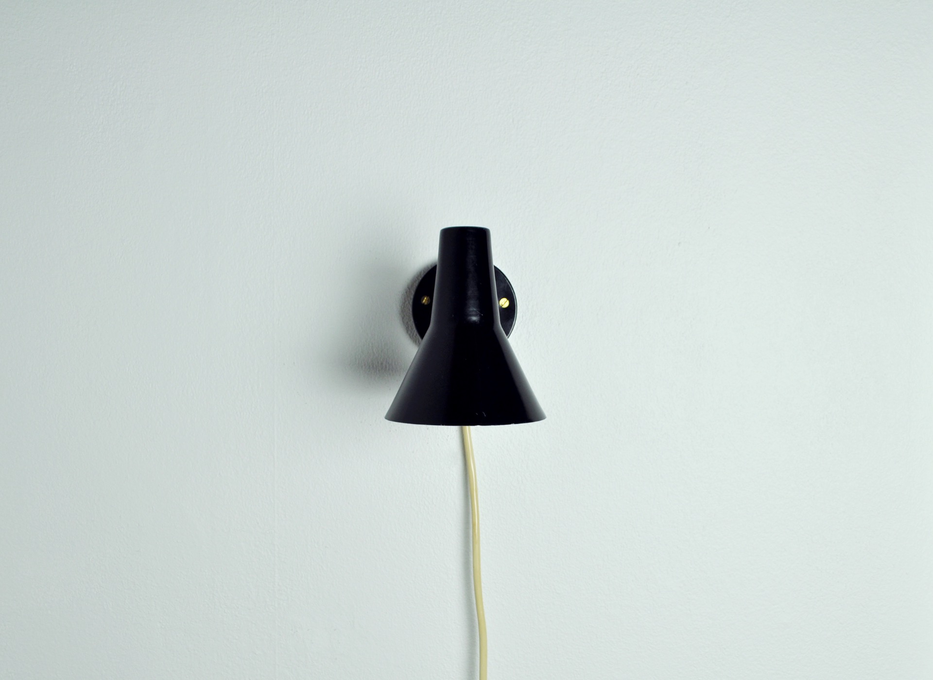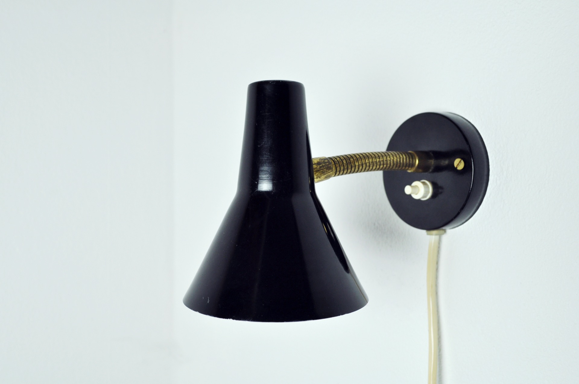 Scandinavian Modern Danish wall lamp with adjustable brass arm.