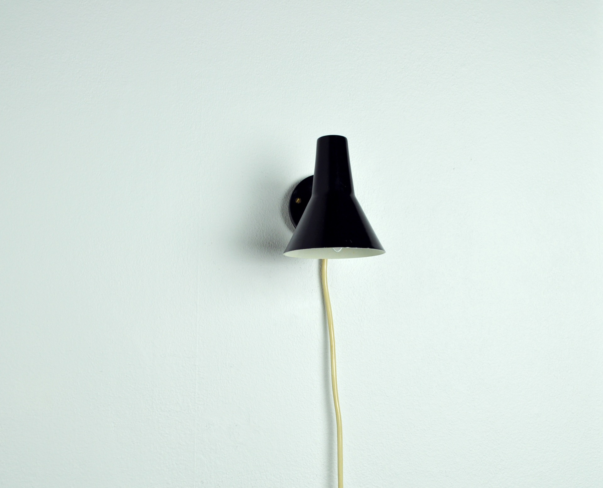 Black lacquered metal. Inner shade white.
