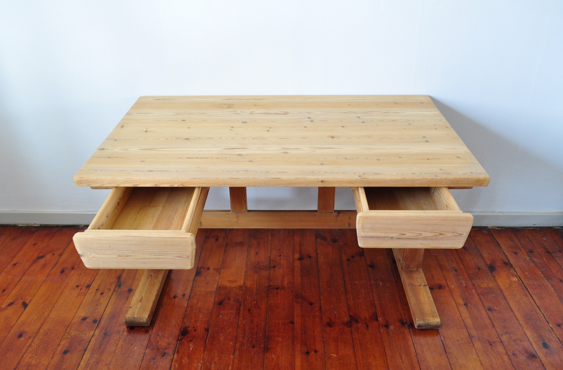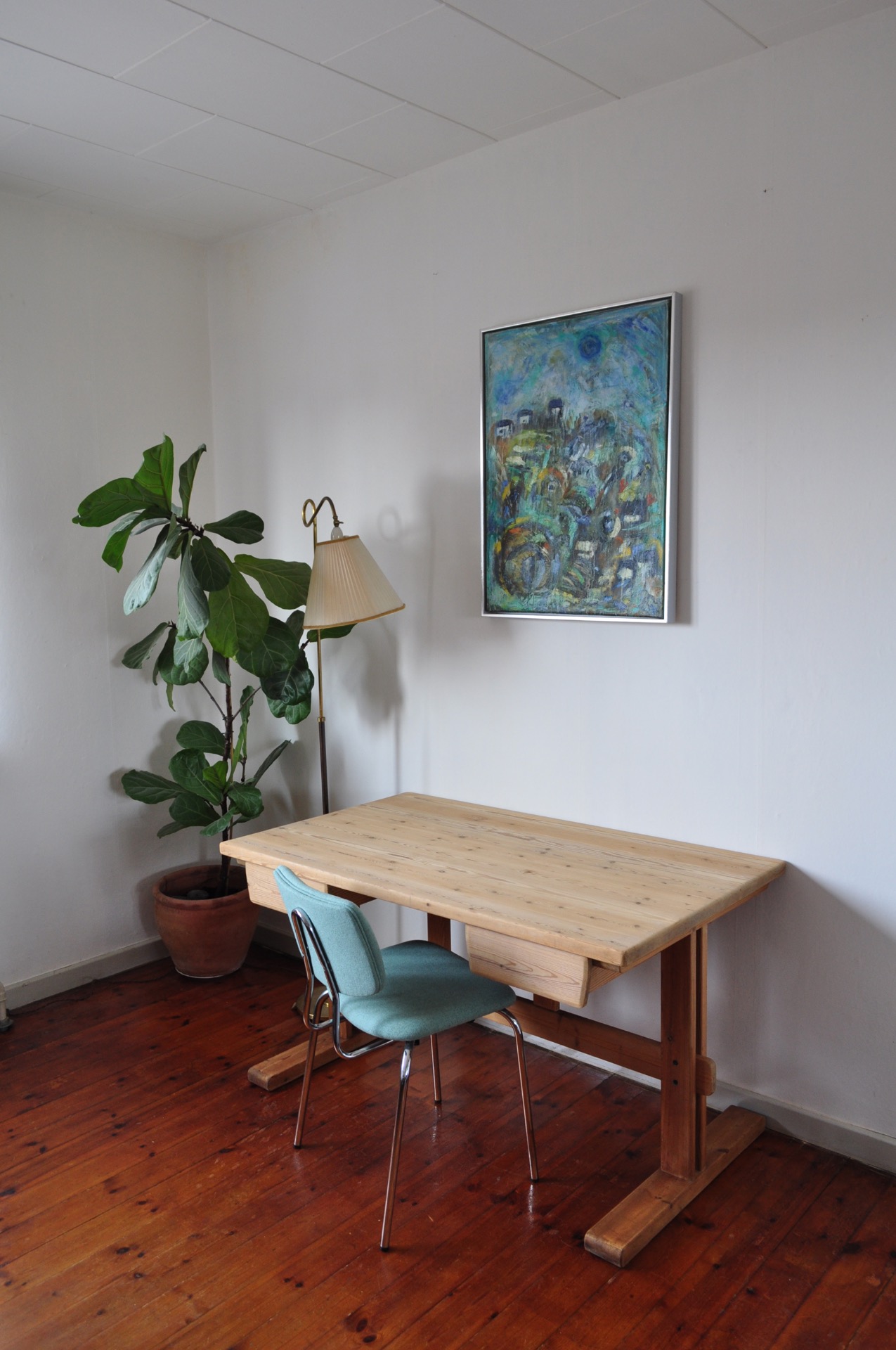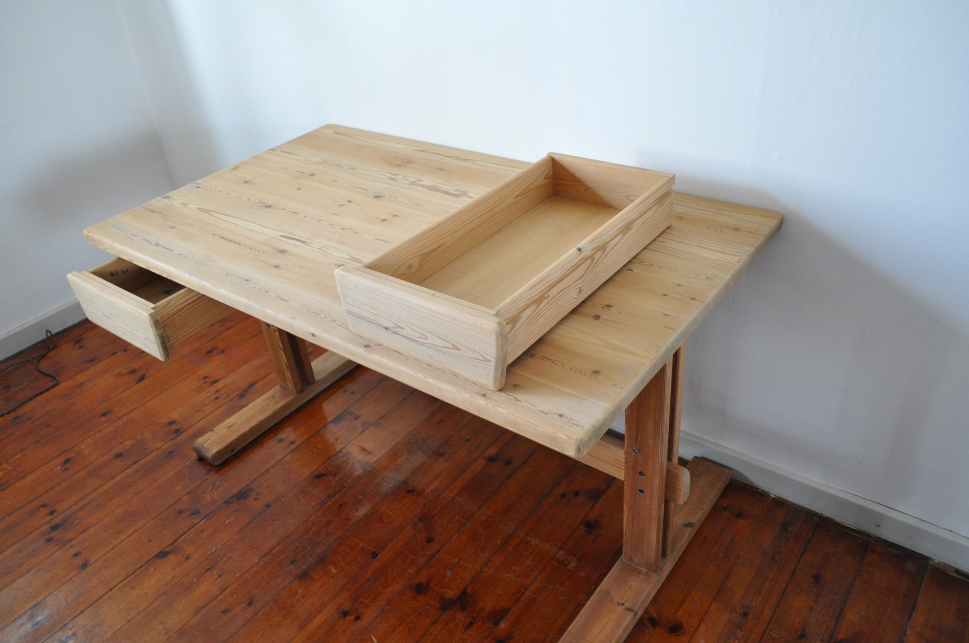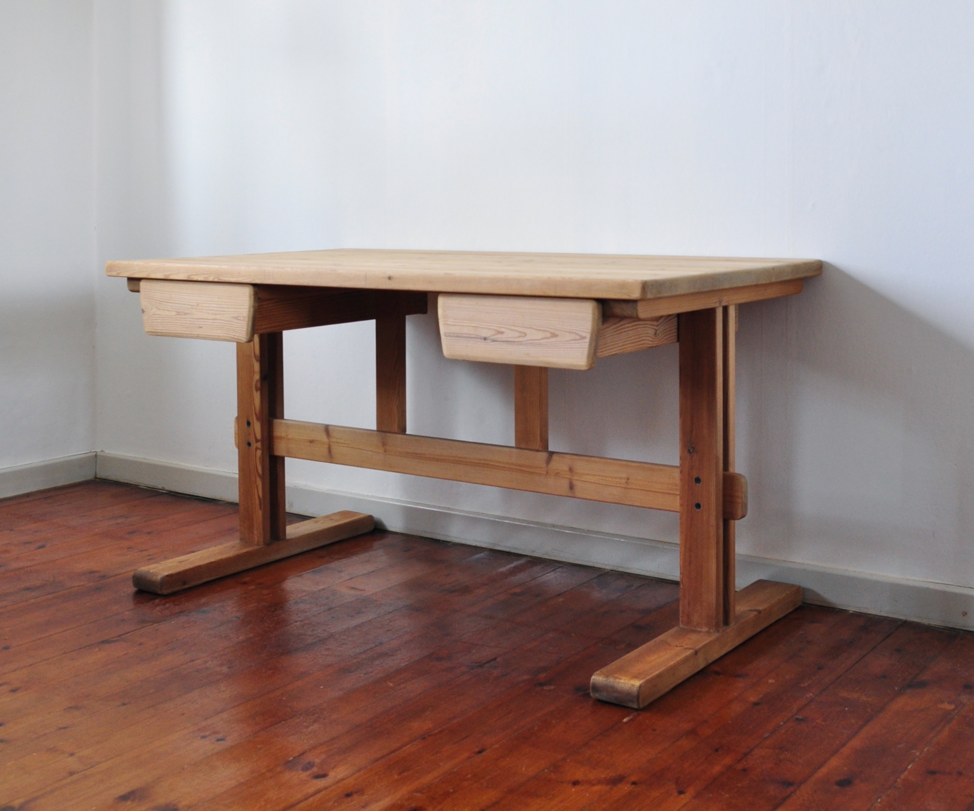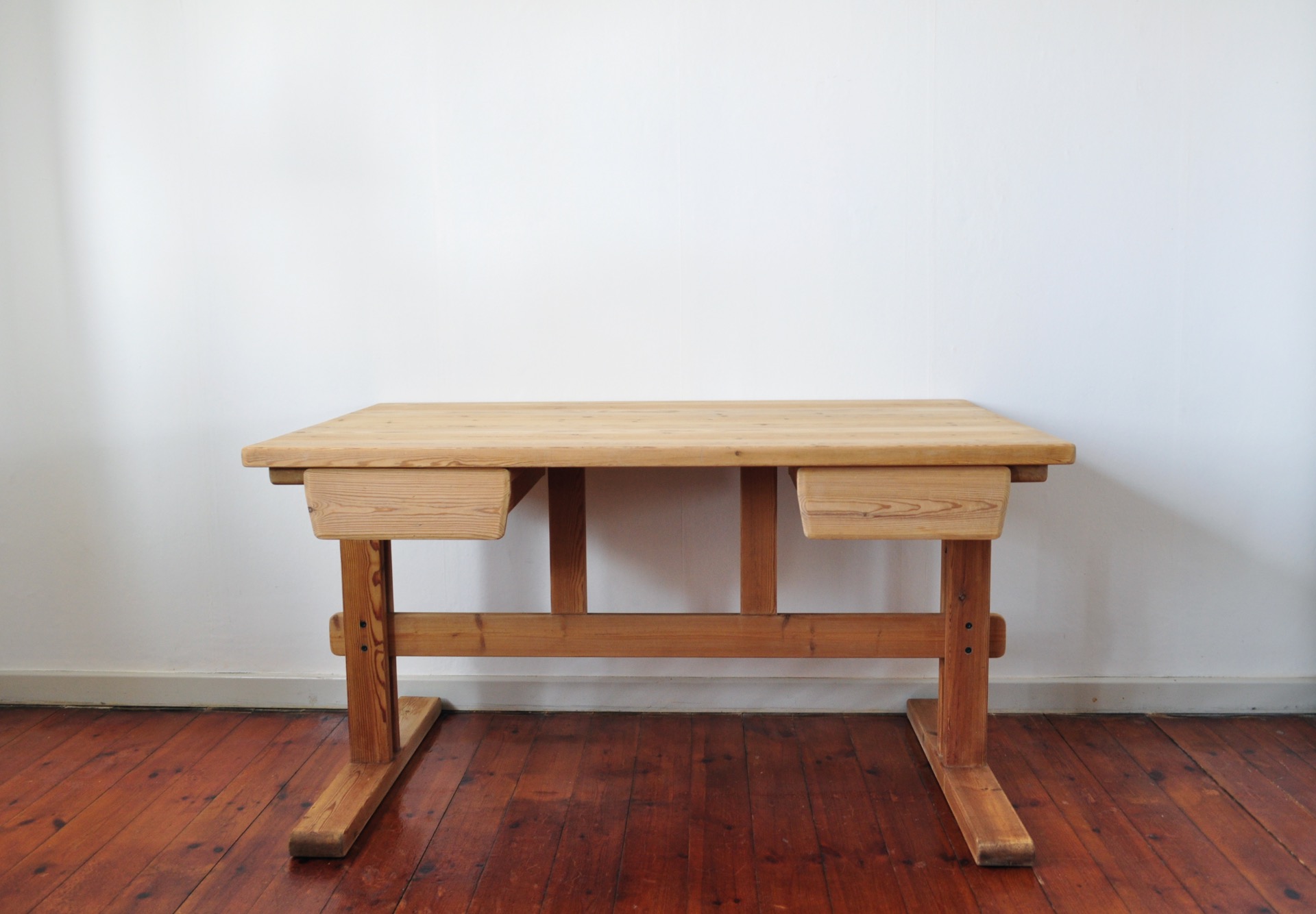 Danish desk in solid pine wood with two drawers. Fine craftsmanship.