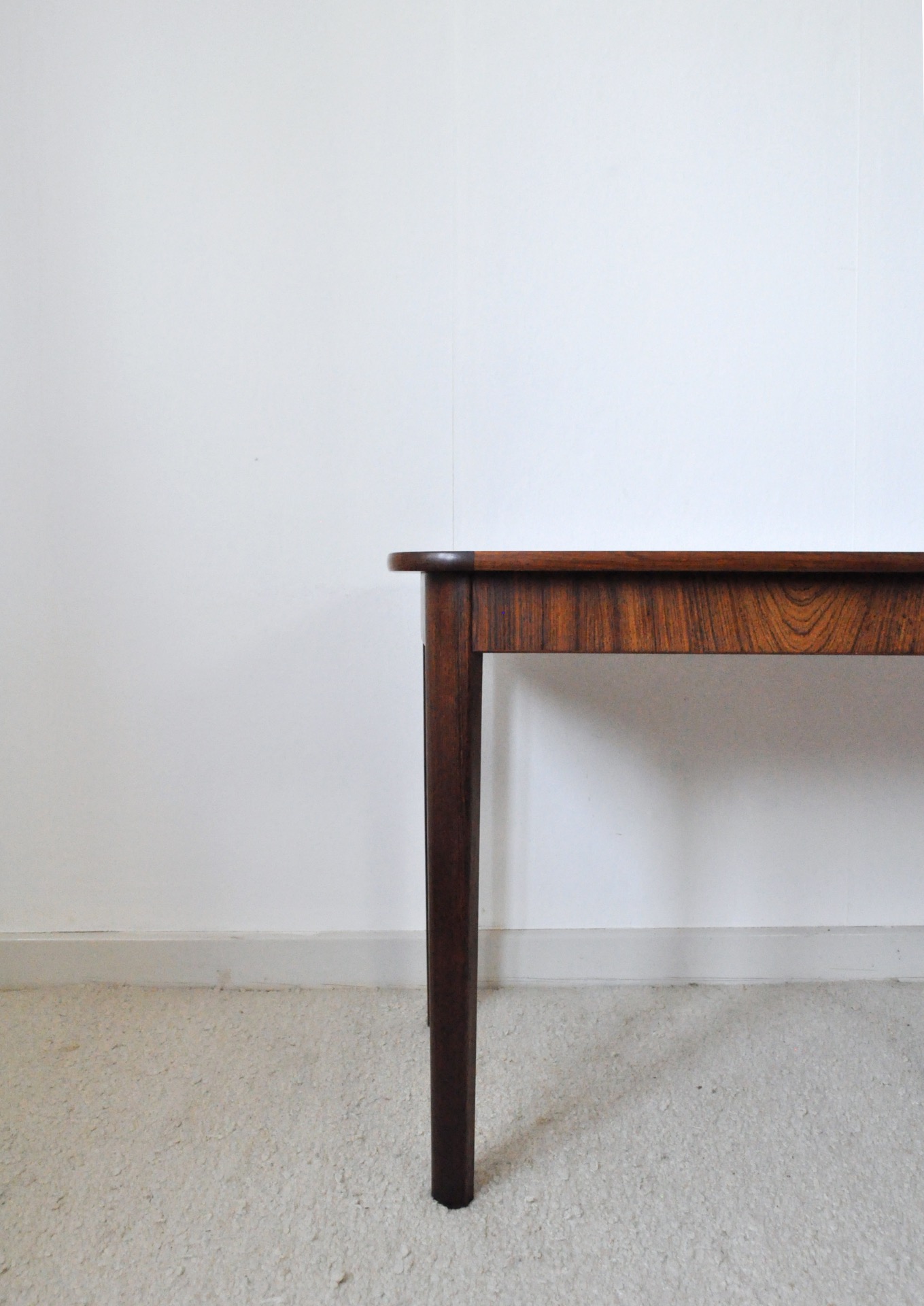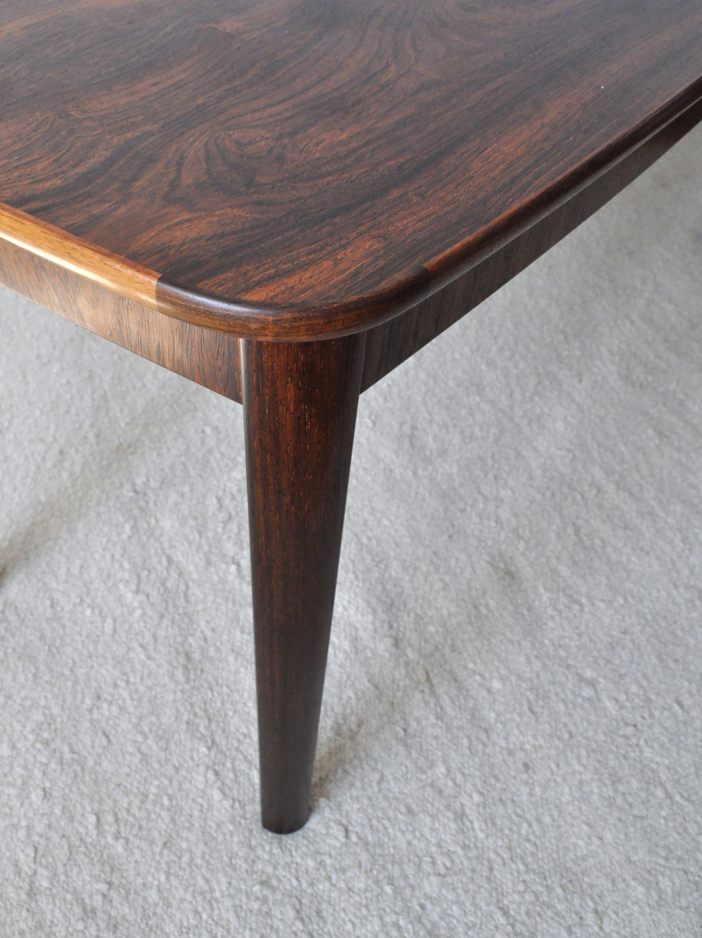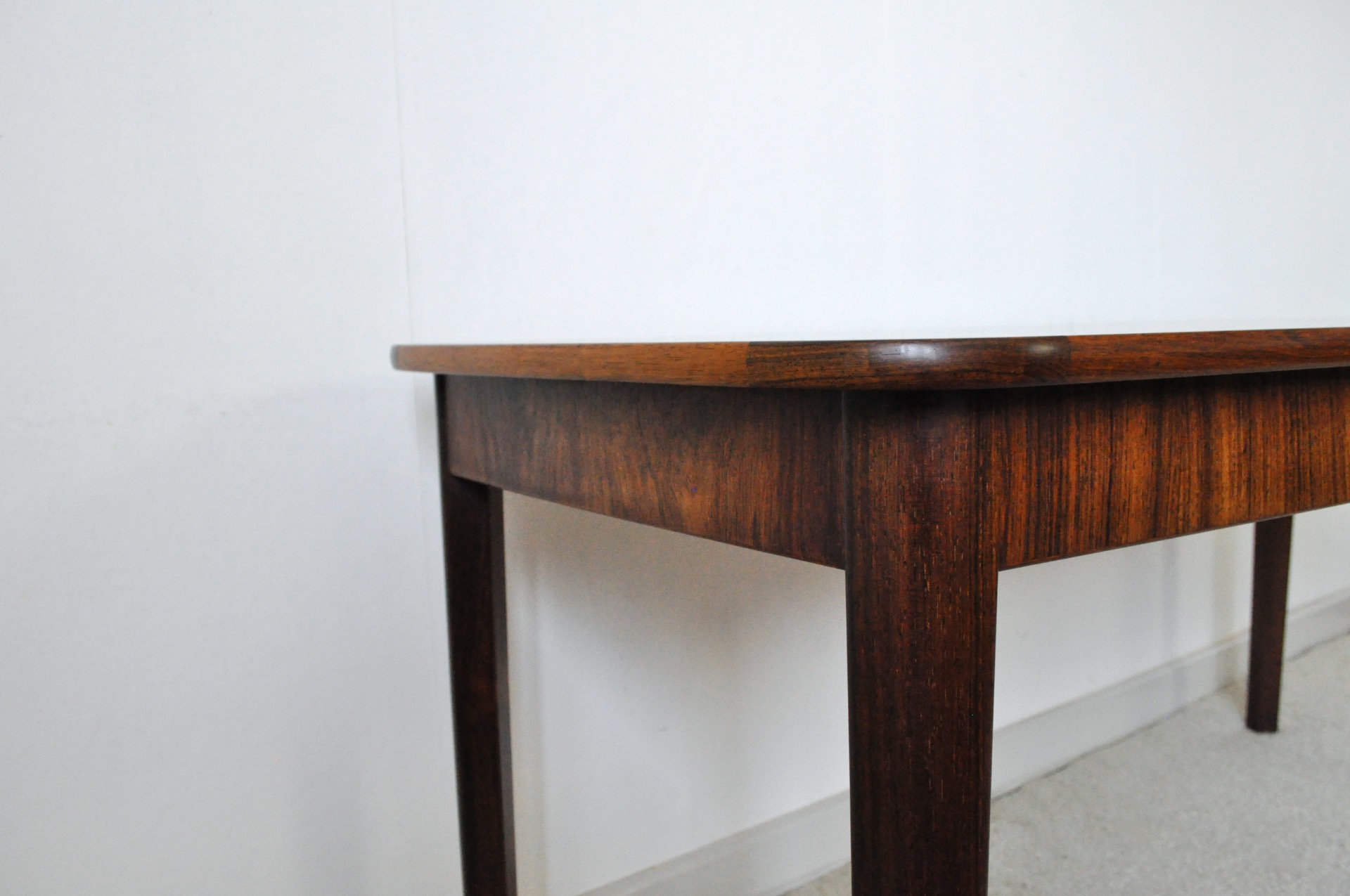 Danish Rosewood veneer and solid side table, excellent craftsmanship with beautiful details.